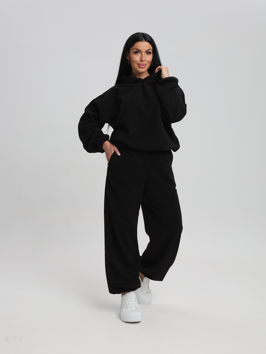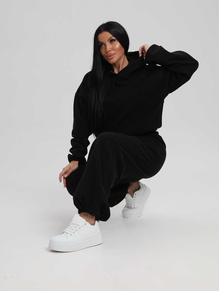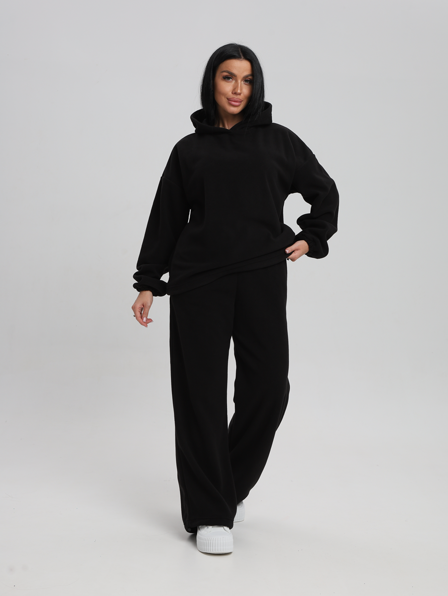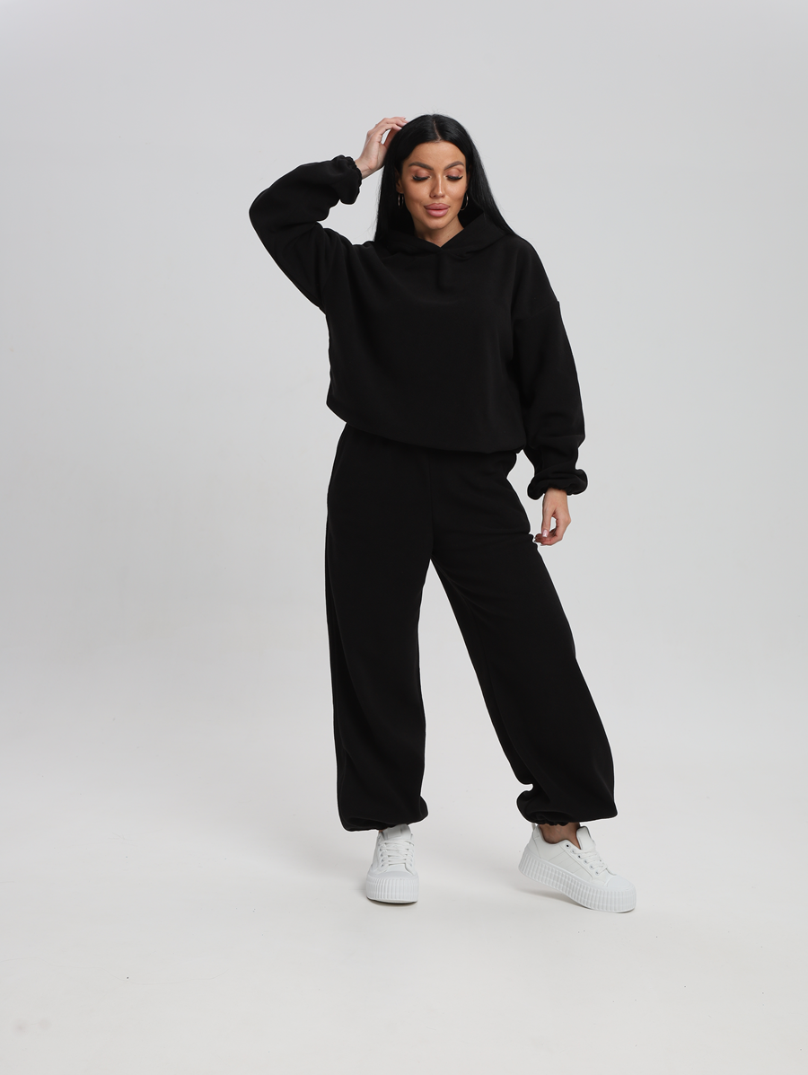 Этот костюм идеально впишется в ваш гардероб для активного отдыха и повседневных прогулок. Все элементы продукта выполнены из 100% полиэстера, что обеспечивает легкость и комфорт в носке. Материал без утеплителя и подкладки позволяет чувствовать себя свободно даже при длительном ношении. Изготовленный из флиса, он мягок на ощупь и приятен к телу, а капюшон добавляет дополнительную защиту от ветра. Модель без застежки легко надевается и снимается, что особенно удобно для будущих мам. Быстросохнущая ткань подходит для активностей на свежем воздухе. Высоко оценимая эластичность материала дарит свободу движений, сохраняя форму изделия после многочисленных стирок. Свободный крой делает его комфортным варианта для высоких женщин или обладательниц больших размеров. Никакие узоры здесь не отвлекают внимание от основного — вашего личного стиля и образа жизни. Худи женское оверсайз с капюшоном и мягкой резинкой на рукавах, капюшон с подкладкой из хлопка, по низу худи шляпная резинка с фиксатором, брюки женские с высокой посадкой на резинке прямого кроя с прорезными карманами по низу брюк шляпная резинка с фиксатором.