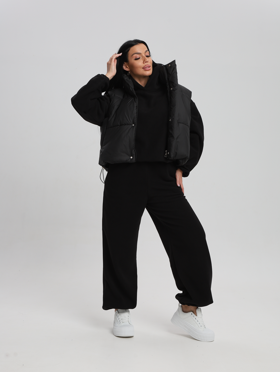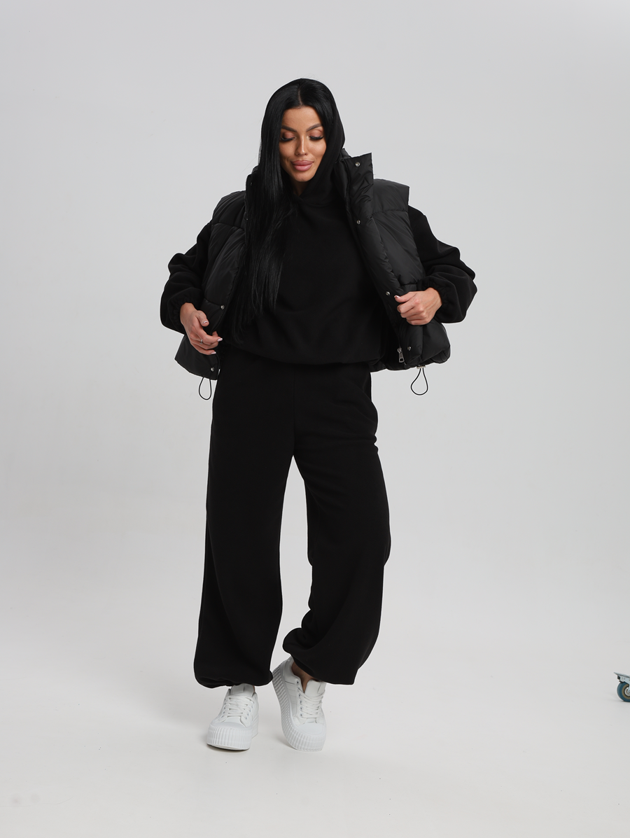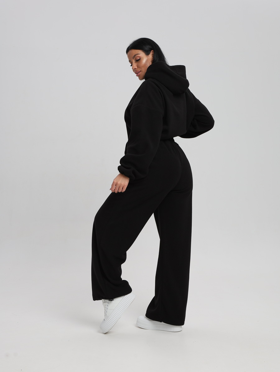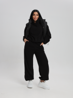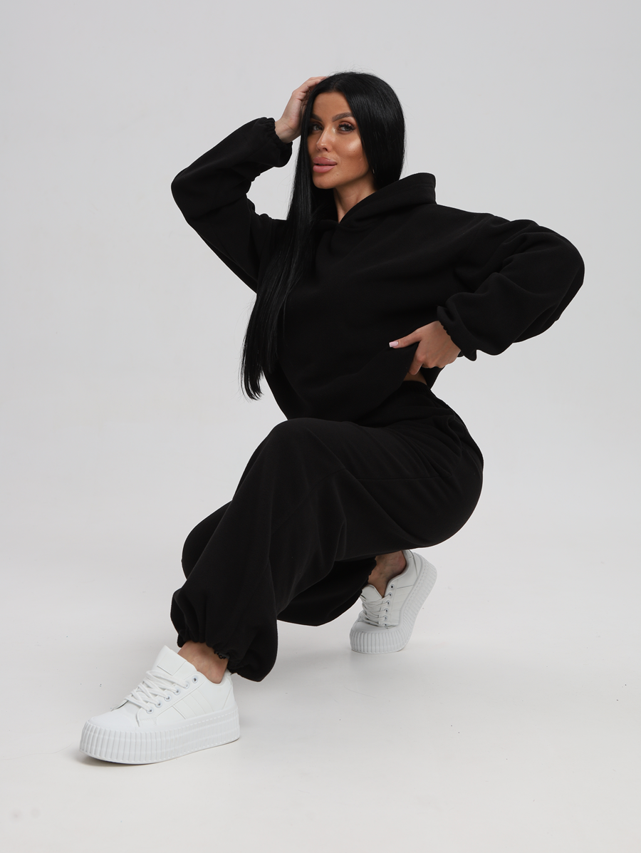 Этот костюм идеально впишется в ваш гардероб для активного отдыха и повседневных прогулок. Все элементы продукта выполнены из 100% полиэстера, что обеспечивает легкость и комфорт в носке. Материал без утеплителя и подкладки позволяет чувствовать себя свободно даже при длительном ношении. Изготовленный из флиса, он мягок на ощупь и приятен к телу, а капюшон добавляет дополнительную защиту от ветра. Модель без застежки легко надевается и снимается, что особенно удобно для будущих мам. Быстросохнущая ткань подходит для активностей на свежем воздухе. Высоко оценимая эластичность материала дарит свободу движений, сохраняя форму изделия после многочисленных стирок. Свободный крой делает его комфортным варианта для высоких женщин или обладательниц больших размеров. Никакие узоры здесь не отвлекают внимание от основного — вашего личного стиля и образа жизни. Худи женское оверсайз с капюшоном и мягкой резинкой на рукавах, капюшон с подкладкой из хлопка, по низу худи шляпная резинка с фиксатором, брюки женские с высокой посадкой на резинке прямого кроя с прорезными карманами по низу брюк шляпная резинка с фиксатором.