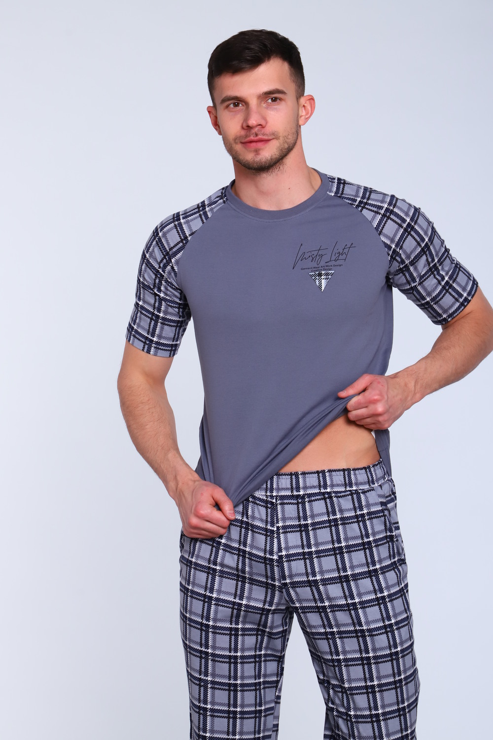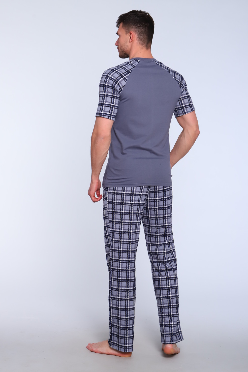 Домашний костюм мужской: футболка и штаны, отличный вариант как одежда для дома и сна. Выполнен в свободном крое, поэтому он не сковывает движения. На выбор представлена модель в больших и маленьких размерах. Футболка прямого кроя с коротким рукавом реглан и округлым вырезом, штаны с боковыми карманами. Мужская пижама с коротким рукавом - это отличный подарок для мужчины на Новый Год, 23 февраля, День Рождения. В этом костюме ваш мужчина будет чувствовать себя комфортно и уютно.