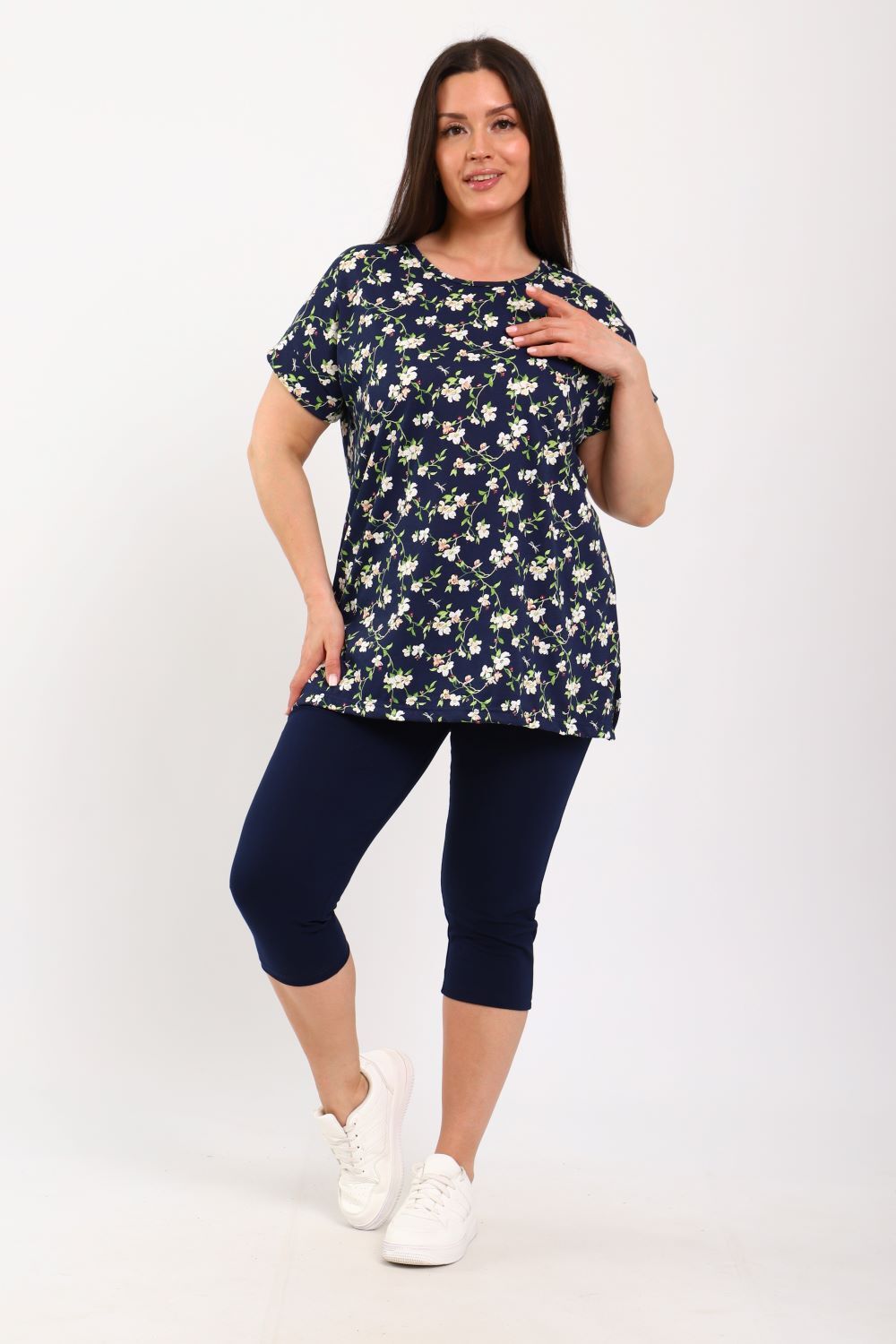 Уютный комплект с бриджами: туника из 100% хлопка. Крой прямой, разрезы по бокам, рукав короткий с манжетом. Мягкие бриджи с добавлением лайкры (95% хлопок, 5% лайкра), облегающие по ноге, на резинке. Прилегающие бриджи и свободная туника - идеальное сочетание для любого типа фигуры!