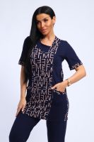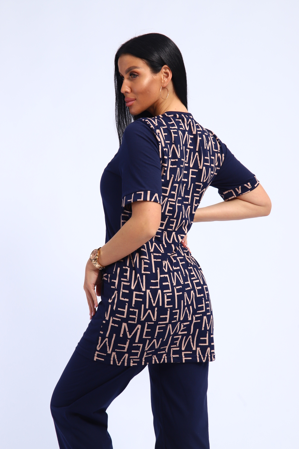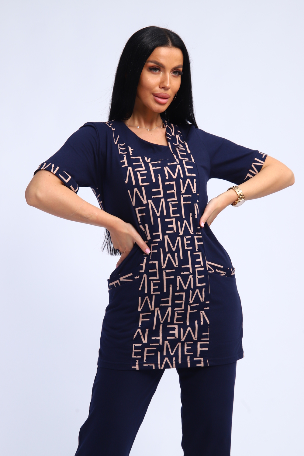 Костюм женский туника и брюки. Брюки прямого кроя. Туника полуприлегающего силуэта с карманами, рукав короткий.