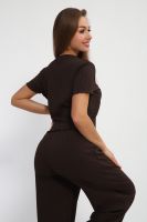 Базовая однотонная женская пижама со штанами и футболкой — идеальный стильный комплект для сна. Наши лёгкие брюки и красивая удобная футболка созданы для того, чтобы чувствовать себя комфортно и уютно. Благодаря широкой размерной сетки пижама подойдёт каждой девушке. Вискозная двойка из ткани с фактурой лапша практически не мнётся и быстро сохнет, что очень удобно. Рубчик добавляет интересный акцент, а трендовый шоколадный цвет делают этот костюм по-настоящему привлекательным.