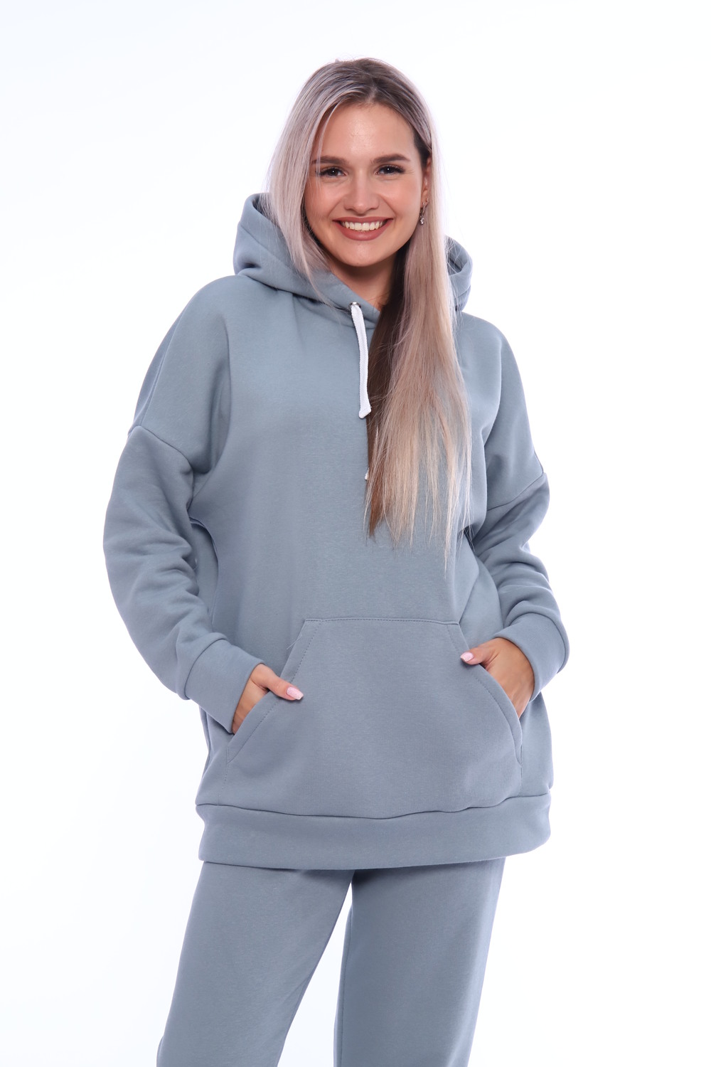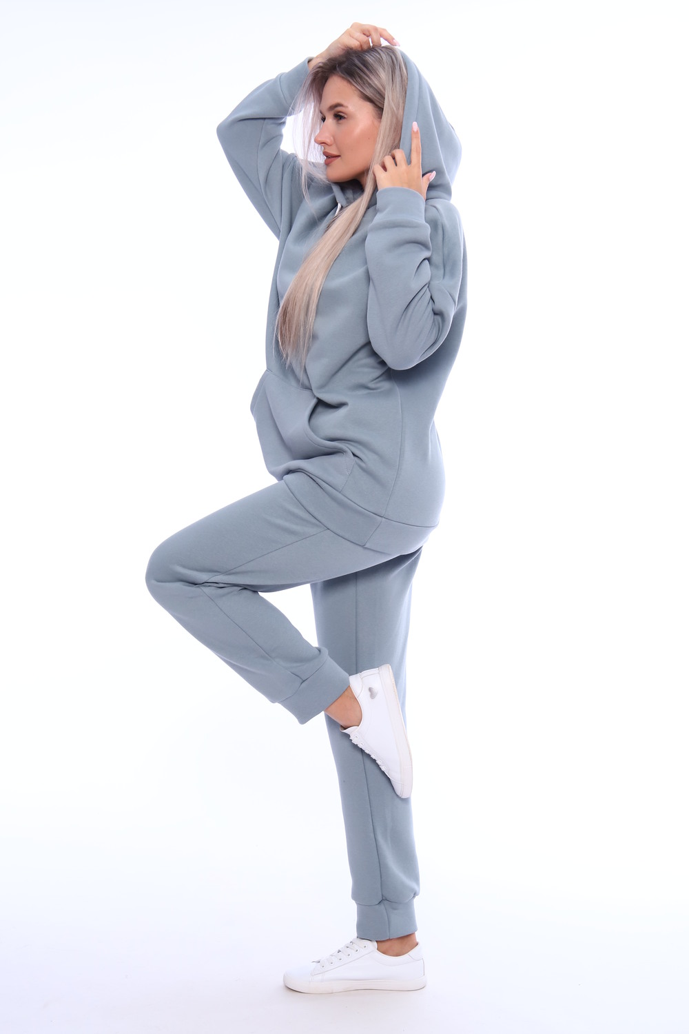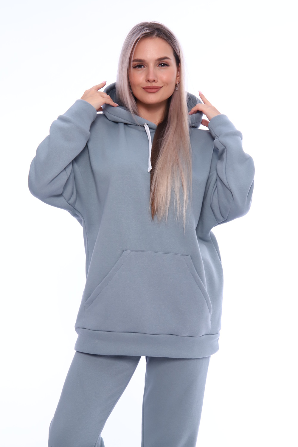 Ультрамодный костюм из качественного турецкого футера с начесом. В комплект входит толстовка и брюки. Толстовка свободного кроя с капюшоном и накладным карманом, брюки на резинке и с манжетами внизу брючин. В этом костюме вам будет необыкновенно тепло и уютно.