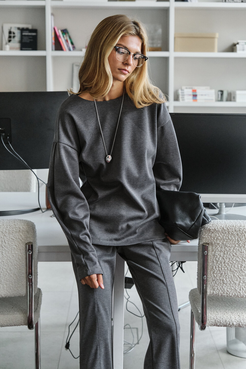 Этот женский костюм, сотканный из тепла и стиля, станет вашим верным спутником в прохладные дни. Мягкий трикотаж свитшота и брюк окутает вас негой, надежно защищая от ветра и непогоды. Преобразившись, он с легкостью впишется в строгий дресс-код корпоративных мероприятий. Подчеркнутый силуэт брюк позволит вам блистать на деловых встречах, излучая уверенность и профессионализм. Нежная кофта, словно облако, придаст образу легкости и непринужденности. Штаны на резинке, словно легкий акцент, подчеркнут вашу индивидуальность и безупречный вкус. Этот костюм станет вашим секретным оружием для вечеринок, романтических свиданий и повседневных прогулок, наполняя каждый ваш шаг уверенностью. Облегающие штаны, словно кисть художника, выгодно подчеркнут изгибы фигуры, создавая иллюзию бесконечных ног и стройного силуэта. Эта демисезонная базовая двойка – идеальный выбор для тех, кто ценит комфорт превыше всего, но не готов отказаться от элегантности. Костюм, созданный для женщин любого возраста и комплекции, станет настоящей находкой даже для миниатюрных девушек. Будьте в тренде в 2026 году! Этот костюм, выполненный в лаконичном однотонном стиле, – воплощение модных тенденций. Его универсальность открывает безграничные возможности для экспериментов и сочетаний с другими элементами гардероба. Однотонный ансамбль станет безупречным решением для учителя, элегантной школьной формой для старшеклассниц или строгим деловым комплектом для офисных будней. Трендовая кофточка оверсайз и штаны с высокой посадкой в стиле кэжуал – детали, которые легко трансформируются, позволяя создать аутентичный образ, соответствующий самым строгим требованиям офисного дресс-кода.