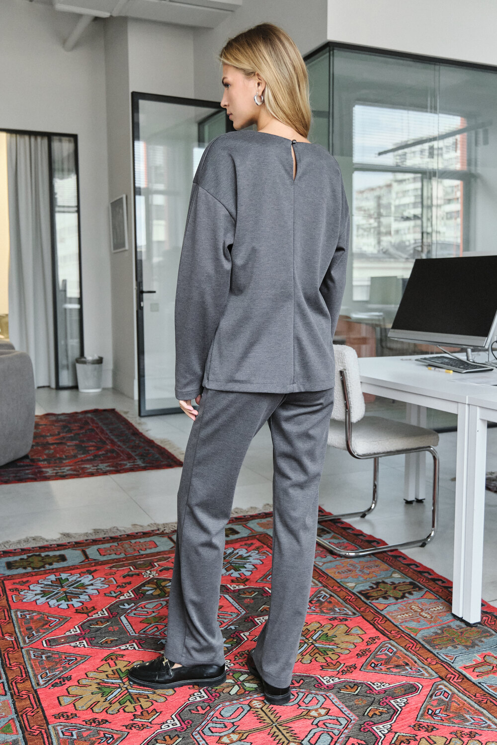 Костюм с брюками офисный [серый]