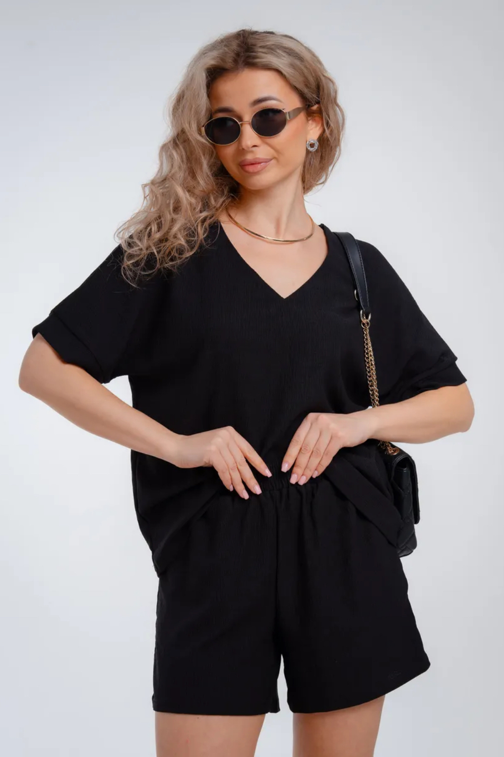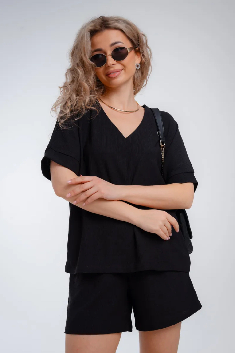 В этом сезоне мы представляем идеальное воплощение летнего шика – стильный женский костюм с шортами. Свободный крой и тончайший трикотаж перенесут вас в объятия прохладных летних вечеров. Пять причин полюбить наш костюм с шортами: 1.Ультралегкая ткань нежно окутывает тело, даря невероятное чувство комфорта и свободы. Прогулки по набережной, танцы на пляже или уютные посиделки дома – этот костюм идеален для любого случая. 2. Наша инновационная ткань обладает секретной формулой против сминания. Ваш костюм всегда будет выглядеть безупречно, даже после часов активного отдыха или длительной поездки. 3. Этот костюм – мечта для тех, кто любит воду. Ткань быстро впитывает влагу и так же быстро высыхает, позволяя вам наслаждаться летними приключениями без лишних хлопот. 4. Свободные шорты и просторная футболка с коротким рукавом создают непринужденный образ, который легко адаптировать под любой стиль. Замените футболку на блузку, чтобы получить более элегантный вид, или дополните образ спортивной обувью для непринужденной прогулки. 5. Наш женский костюм с шортами соответствует последним модным тенденциям. Будьте в тренде этим летом и создавайте яркие образы, которые не оставят окружающих равнодушными. Идеальный выбор для очаровательных леди: этот костюм идеально подходит для женщин любого возраста, фигуры и стиля. От прогулок до танцев – костюм с шортами обеспечит максимальный комфорт и свободу движений. Этот костюм станет незаменимой частью летнего гардероба современных подростков. Подходит для беременных дам. Мягкий трикотаж и свободный крой подарят будущим мамам исключительное удобство. Подарите себе элегантность и комфорт этим летом с нашим костюмом с шортами. Тонкий трикотаж, несминаемая ткань и стильный крой сделают этот костюм вашим любимым спутником для любых летних мероприятий. Доступный в широком диапазоне цветов и размеров, включая большие размеры, наш женский костюм с шортами станет идеальным решением для создания вашего уникального летнего образа.
