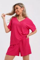 В этом сезоне мы представляем идеальное воплощение летнего шика – стильный женский костюм с шортами. Свободный крой и тончайший трикотаж перенесут вас в объятия прохладных летних вечеров. Пять причин полюбить наш костюм с шортами: 1.Ультралегкая ткань нежно окутывает тело, даря невероятное чувство комфорта и свободы. Прогулки по набережной, танцы на пляже или уютные посиделки дома – этот костюм идеален для любого случая. 2. Наша инновационная ткань обладает секретной формулой против сминания. Ваш костюм всегда будет выглядеть безупречно, даже после часов активного отдыха или длительной поездки. 3. Этот костюм – мечта для тех, кто любит воду. Ткань быстро впитывает влагу и так же быстро высыхает, позволяя вам наслаждаться летними приключениями без лишних хлопот. 4. Свободные шорты и просторная футболка с коротким рукавом создают непринужденный образ, который легко адаптировать под любой стиль. Замените футболку на блузку, чтобы получить более элегантный вид, или дополните образ спортивной обувью для непринужденной прогулки. 5. Наш женский костюм с шортами соответствует последним модным тенденциям. Будьте в тренде этим летом и создавайте яркие образы, которые не оставят окружающих равнодушными. Идеальный выбор для очаровательных леди: этот костюм идеально подходит для женщин любого возраста, фигуры и стиля. От прогулок до танцев – костюм с шортами обеспечит максимальный комфорт и свободу движений. Этот костюм станет незаменимой частью летнего гардероба современных подростков. Подходит для беременных дам. Мягкий трикотаж и свободный крой подарят будущим мамам исключительное удобство. Подарите себе элегантность и комфорт этим летом с нашим костюмом с шортами. Тонкий трикотаж, несминаемая ткань и стильный крой сделают этот костюм вашим любимым спутником для любых летних мероприятий. Доступный в широком диапазоне цветов и размеров, включая большие размеры, наш женский костюм с шортами станет идеальным решением для создания вашего уникального летнего образа.