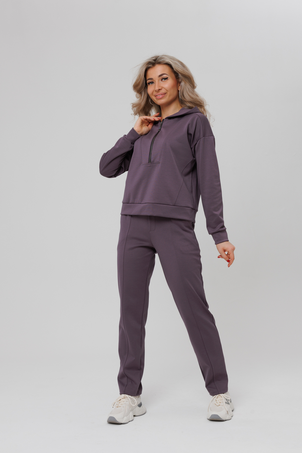 Спортивный круглогодичный костюм от российского производителя бренда женской одежды! Костюм состоит из кофты на молнии до центра груди без карманов с капюшоном и брюк на резинке с карманами с отрезным бочком. По фасаду кофты выполнены рельефные швы, рукав спущенный полной длины, манжеты выполнены из основной ткани. Брюки по заднему фасаду изделия имеют два псевдокармана. Классический спортивный комплект идеален для спорта, отпуска, будет незаменим в поездках на отдыхе или командировке. Универсальность модели позволяет носить костюм как в теплые весенний и летний сезоны, так и в холодное время года сезонов осень зима. Базовая модель на каждый день подойдет как женщинам невысокого и среднего роста, так и высоким девушкам. Каждый элемент комплекта можно носить вместе или раздельно, что позволит создавать стильные и модные образы. В трендовой новинке будете чувствовать себя комфортно и уютно. Спортивный костюм станет отличным подарком на день рождение или праздник. Элегантная модель поможет создать эффектный, но при этом утонченный стиль. Новинка подчеркнет все достоинства и поможет скрыть недостатки фигуры благодаря универсальному, свободному фасону. Модель доступна в больших размерах плюс сайз - 50, 52 и 54, будет шикарно смотреться в любом возрасте, подойдет для полных девушек и беременных женщин.