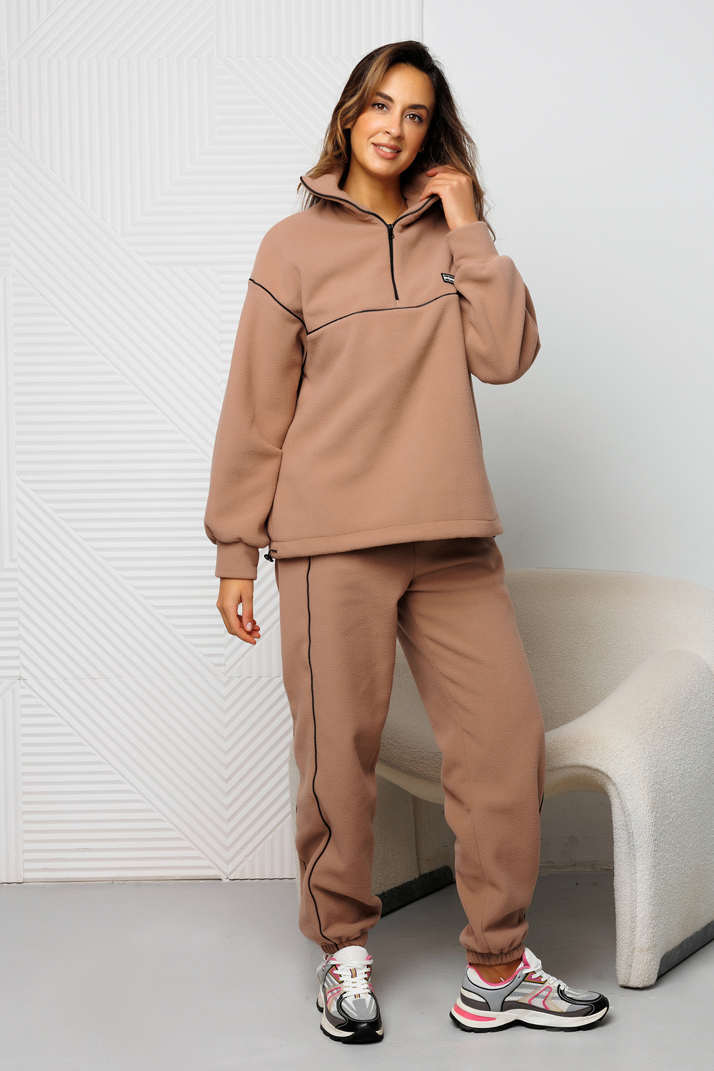 Костюм спортивный флисовый двойка с кантом Raposa - это идеальный выбор для тех, кто ценит комфорт и стиль. Этот теплый костюм, выполненный из качественного трикотажного материала с начесом, станет незаменимым спутником на осень - зиму. Благодаря своей универсальности и легкости, костюм подходит как для активного отдыха, так и для повседневной носки. Худи зипка с воротником стойкой на молнии и длинными рукавами, а также джоггеры с высокой посадкой и кулиской внизу, обеспечивают максимальный комфорт и свободу движений для беременных будущих мам и полных женщин больших размеров плюс сайз до 62 и 64 размера. Брюки на резинке удобно надевать и снимать, они снабжены удобными прорезными карманами для хранения мелочей. Оверсайз крой кофта чебурашка создает стильный и современный образ, а мягкий флис приятен к телу. Демисезонный анорак и треники станут незаменимыми в холодное время года. Костюм осенний - зимний доступен в нескольких базовых цветах, что позволяет легко подобрать его под любой гардероб. Благодаря своей практичности и трендовому дизайну 2026. Этот костюм брючный с воротником поло станет отличным повседневным выбором для девочки подростка, а также для тех, кто предпочитает унисекс стиль. Он идеально подойдет для занятий спортом и фитнесом, путешествий, прогулок на свежем воздухе, а также для домашнего отдыха. Утепленные штаны трико на флисе и мастерку зип худи в стиле спорт шик можно надевать под горнолыжный костюм или в школу на физкультуру.