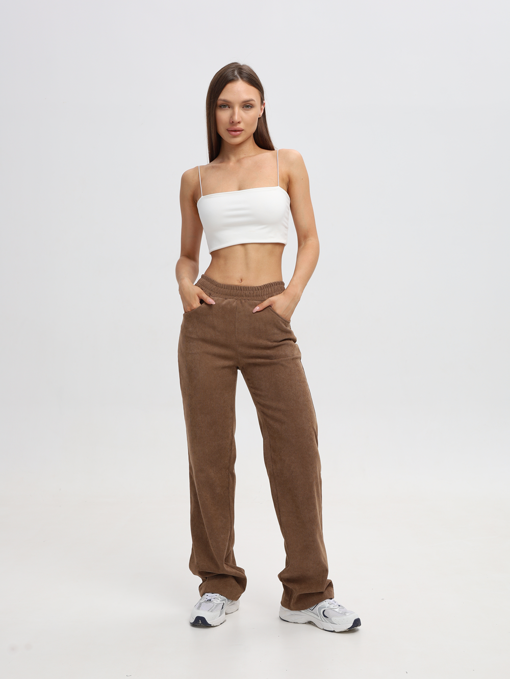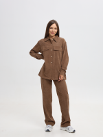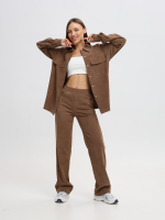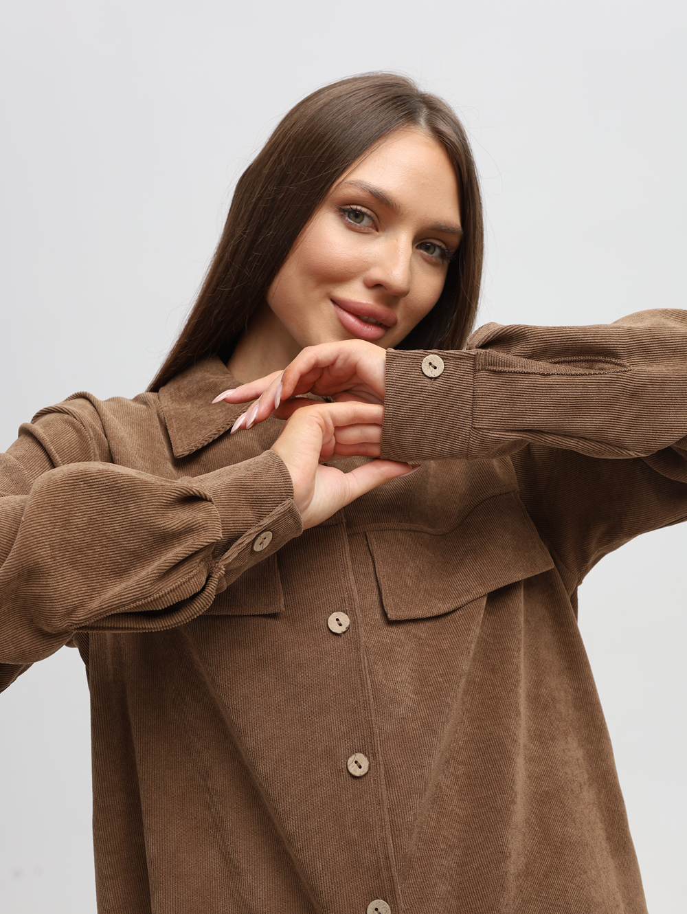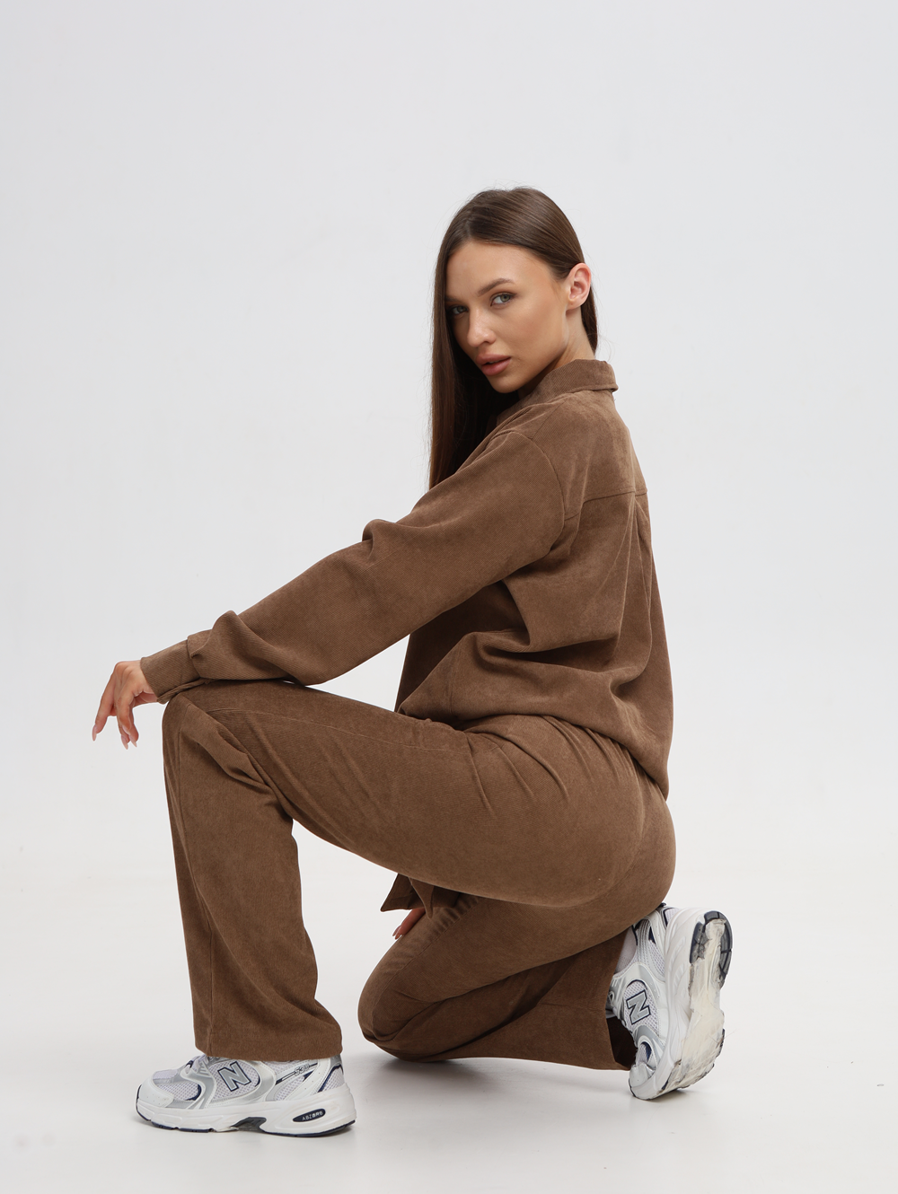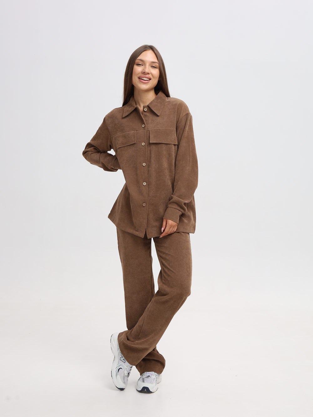 Спортивный женский костюм выполнен из мягкого вельветового материала, который придает ему модный и элегантный вид. Костюм для женщин состоит из рубашки оверсайз и брюк прямого кроя, создающих гармоничный и современный образ. Однотонный оттенок делает его универсальным для разных случаев — от повседневных прогулок до офисного или делового стиля. Рубашка свободного фасона с длинными рукавами украшена классическим воротником и застегивается на пуговицы. Вельвет обладает приятной текстурой, которая сохраняет комфорт даже при длительном ношении. Брюки имеют удобные карманы, прямой силуэт, что делает их подходящими для девушек и женщин разных возрастов. Эластичный пояс обеспечивает удобную посадку, а продуманная длина визуально вытягивает силуэт. Удобная и трендовая одежда в современном стиле, которая дополнит базовые и спортивные образы или молодежный лук в стиле casual (кэжуал). Нарядный костюм отлично подойдет как для осенних прохладных дней, так и для создания стильных летних образов. Женский костюм-двойка отличается универсальностью благодаря сочетанию комфорта и модного дизайна. Он может использоваться как спортивный наряд для активного отдыха или домашний вариант для уюта в холодное время года. Актуальный oversize крой подчеркивает современные тенденции в мире моды.