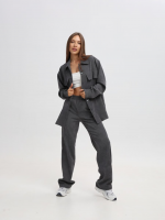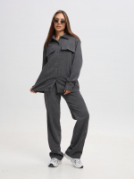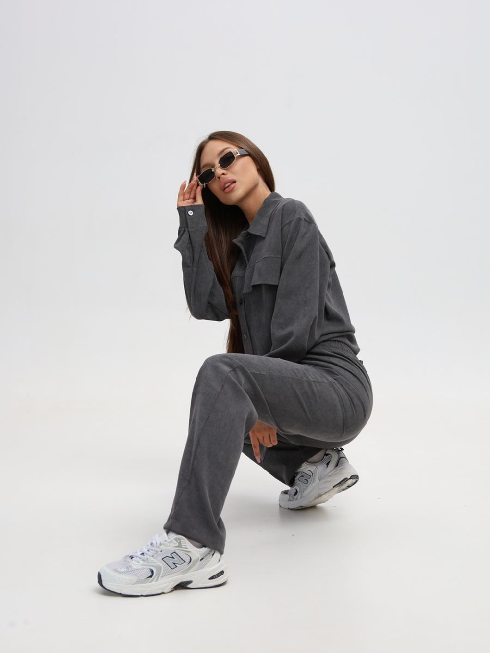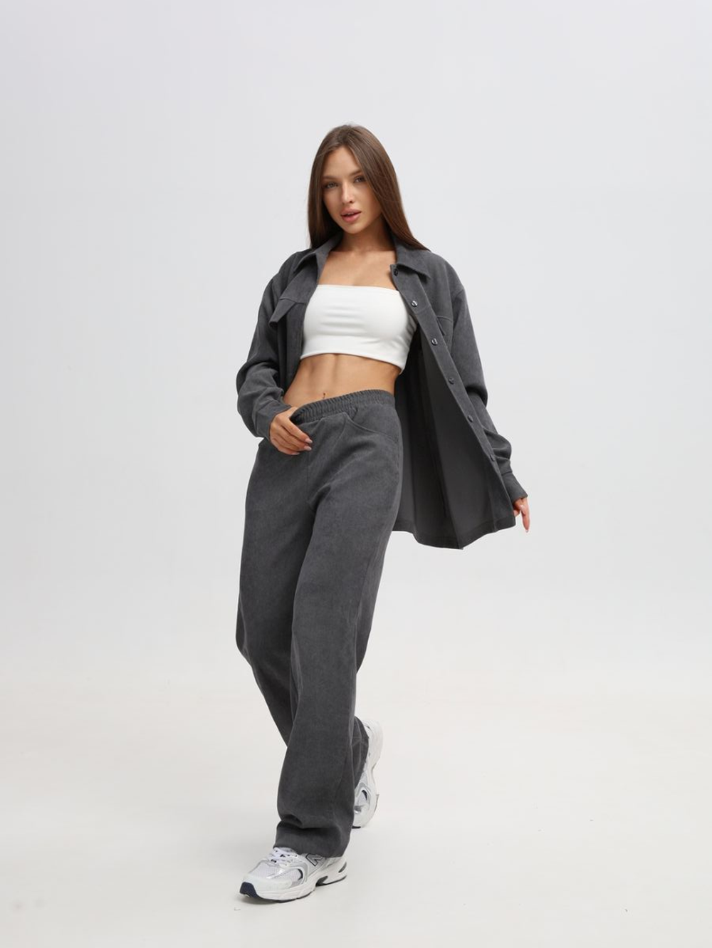 Спортивный женский костюм выполнен из мягкого вельветового материала, который придает ему модный и элегантный вид. Костюм для женщин состоит из рубашки оверсайз и брюк прямого кроя, создающих гармоничный и современный образ. Однотонный оттенок делает его универсальным для разных случаев — от повседневных прогулок до офисного или делового стиля. Рубашка свободного фасона с длинными рукавами украшена классическим воротником и застегивается на пуговицы. Вельвет обладает приятной текстурой, которая сохраняет комфорт даже при длительном ношении. Брюки имеют удобные карманы, прямой силуэт, что делает их подходящими для девушек и женщин разных возрастов. Эластичный пояс обеспечивает удобную посадку, а продуманная длина визуально вытягивает силуэт. Удобная и трендовая одежда в современном стиле, которая дополнит базовые и спортивные образы или молодежный лук в стиле casual (кэжуал). Нарядный костюм отлично подойдет как для осенних прохладных дней, так и для создания стильных летних образов. Женский костюм-двойка отличается универсальностью благодаря сочетанию комфорта и модного дизайна. Он может использоваться как спортивный наряд для активного отдыха или домашний вариант для уюта в холодное время года. Актуальный oversize крой подчеркивает современные тенденции в мире моды.
