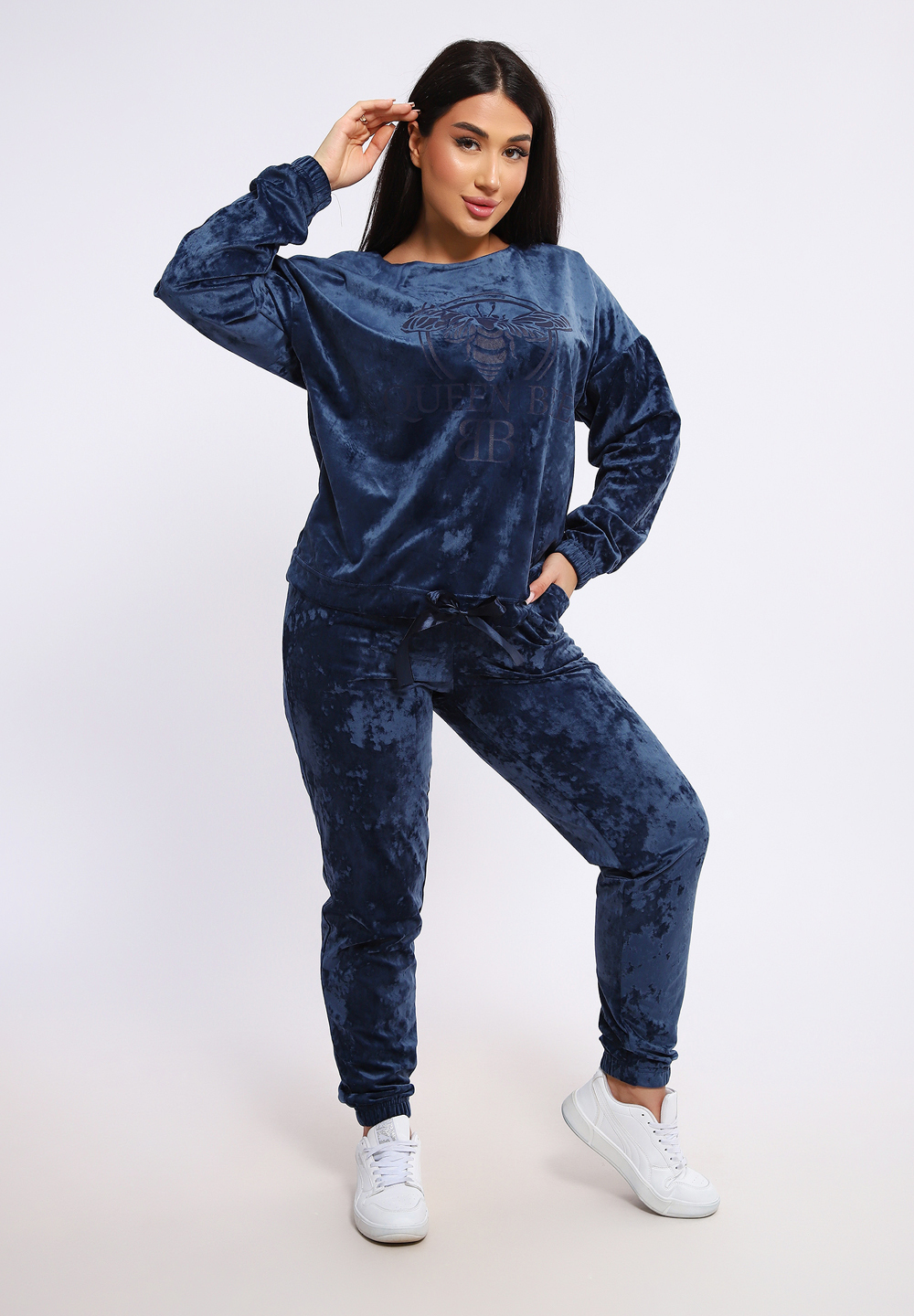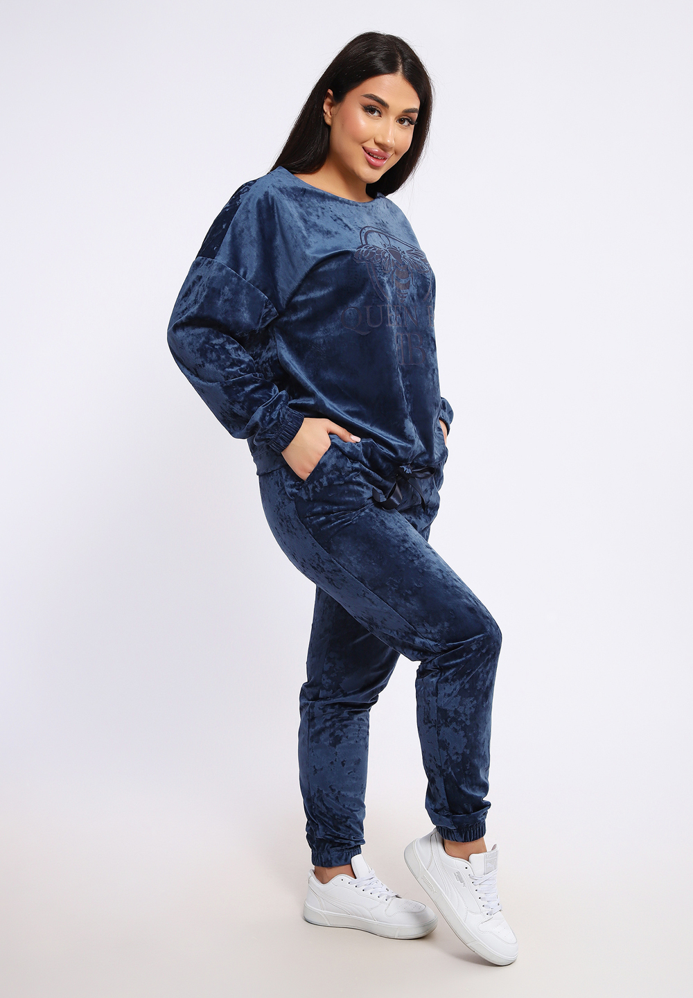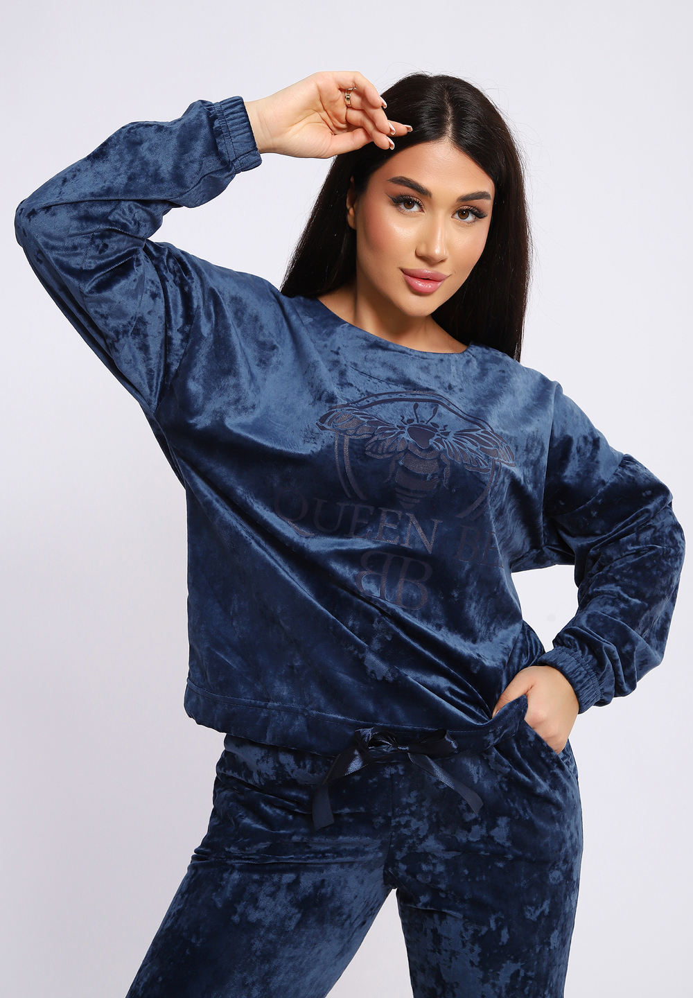 Стильный костюм с брюками из мягкого и приятного на ощупь велюра 100% полиэстер. Удобный и современный дизайн дополнен ярким принтом на груди, который придает образу индивидуальность и оригинальность. Идеальный выбор для тех, кто ценит комфорт и стиль в повседневной или casual-обстановке.
