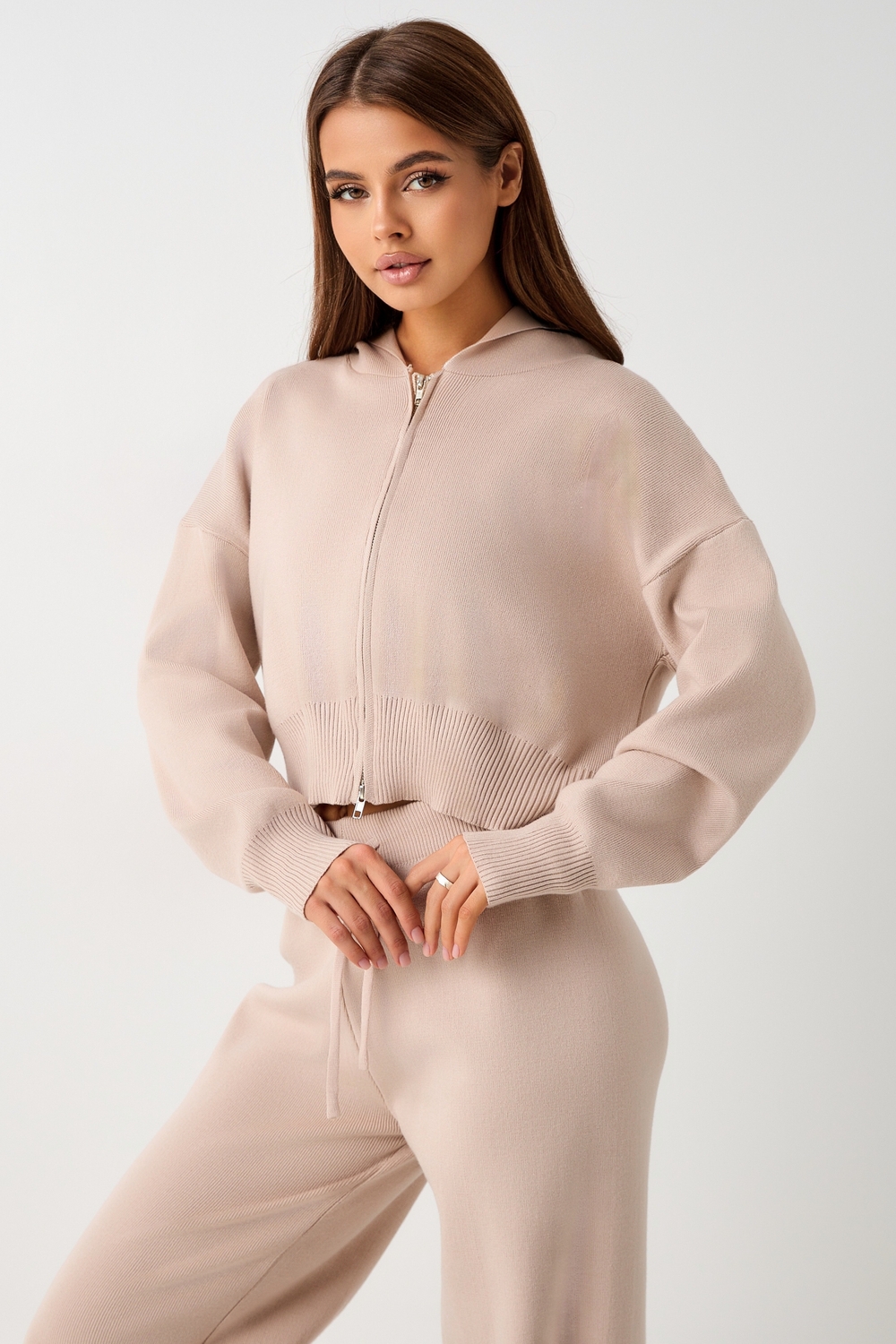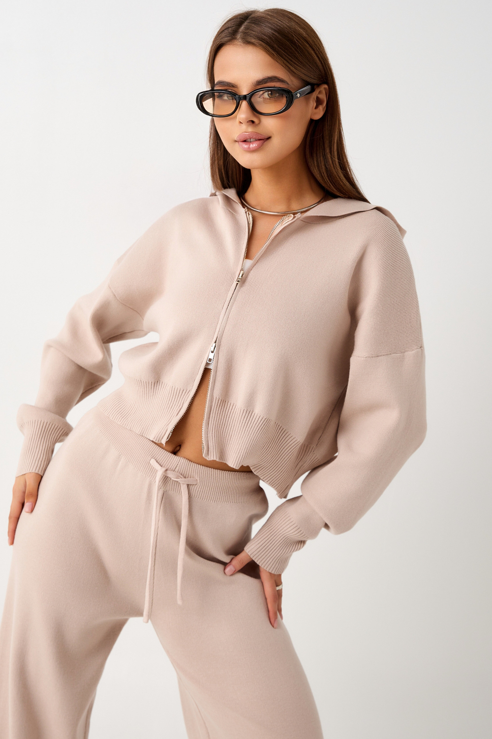 Вязаный костюм станет незаменимой основой женского гардероба для прохладной погоды, комфортным способом утепления. Он сшит из мягкой, приятной к телу пряжи с шерстяными волокнами, которая надолго сохраняет насыщенность цвета и свою форму, выдерживая интенсивное ношение и частые стирки. Стильный дизайнерский комплект отличается продуманным дизайном: кофточка - оверсайз со спущенным плечом, V-образным вырезом горловины и отложным воротником обеспечивает комфорт, а брюки - спортивки с широким поясом - резинкой, длинными штанинами с манжетами и удобными карманами подчеркивают силуэт, не сковывая движений. Универсальность классической пастельной палитры и лаконичного дизайна позволяет легко включать комплект в коллекцию вещей для осенне - весеннего демисезонного и зимнего периода. Он идеально сочетается с однотонными вариантами обуви и нарядными праздничными аксессуарами для создания элегантного и собранного образа. Трендовый костюмный ансамбль выбирают для повседневной городской активности и для более расслабленного домашнего формата времяпрепровождения. Он дарит ощущение уюта и стиля, сохраняя комфортную температуру тела в холодный день и вечернее время с ранней осени до поздней весны. Популярный у покупателей набор, с кашемиром в составе, из двух предметов одежды отлично подойдет для прогулок и неформальных офисных образов. Модный трикотажный костюм - двойка с джоггерами станет приятным приобретением для женщины или девушки высокого, или невысокого роста, подойдет для женственного Family look в кэжуал, спортшик или у2к стилях. Подростки могут носить такой комплект в молодежном дизайне вместо спортивной формы в школе, университете или колледже на уроке физкультуры. Это практичное приобретение для себя и полезный подарок для близких на любое торжество, в том числе день рождения. В линейке бренда представлены модели в различных фасонах, в том числе с худи - зипкой, которая застегивается на молнию, с капюшоном.
