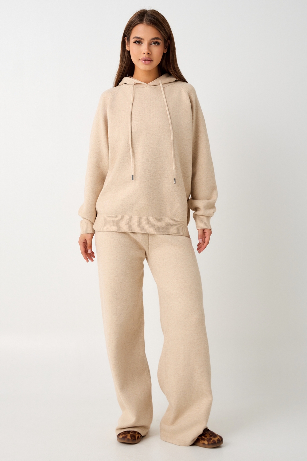 Вязаный костюм станет незаменимой основой женского гардероба для прохладной погоды, комфортным способом утепления. Он сшит из мягкой, приятной к телу пряжи с шерстяными волокнами, которая надолго сохраняет насыщенность цвета и свою форму, выдерживая интенсивное ношение и частые стирки. Стильный дизайнерский комплект отличается продуманным дизайном. Брюки - спортивки с широким поясом - резинкой, длинными штанинами, подчеркивают силуэт, не сковывая движений. Универсальность классической пастельной палитры и лаконичного дизайна позволяет легко включать комплект в коллекцию вещей для осенне - весеннего демисезонного и зимнего периода. Он идеально сочетается с однотонными вариантами обуви и нарядными праздничными аксессуарами для создания элегантного и собранного образа. Трендовый костюмный ансамбль выбирают для повседневной городской активности и для более расслабленного домашнего формата времяпрепровождения. Он дарит ощущение уюта и стиля, сохраняя комфортную температуру тела в холодный день и вечернее время с ранней осени до поздней весны. Популярный у покупателей набор, с кашемиром в составе, из двух предметов одежды отлично подойдет для прогулок и неформальных офисных образов. Модный трикотажный костюм - двойка станет приятным приобретением для женщины или девушки высокого, или невысокого роста, подойдет для женственного Family look в кэжуал, спортшик или у2к (y2k) стилях. Подростки могут носить такой комплект в молодежном дизайне вместо спортивной формы в школе, университете или колледже на уроке физкультуры. Это практичное приобретение для себя и полезный подарок для близких на любое торжество, в том числе день рождения. В линейке бренда представлены модели в различных фасонах, в том числе с худи - зипкой, с капюшоном.