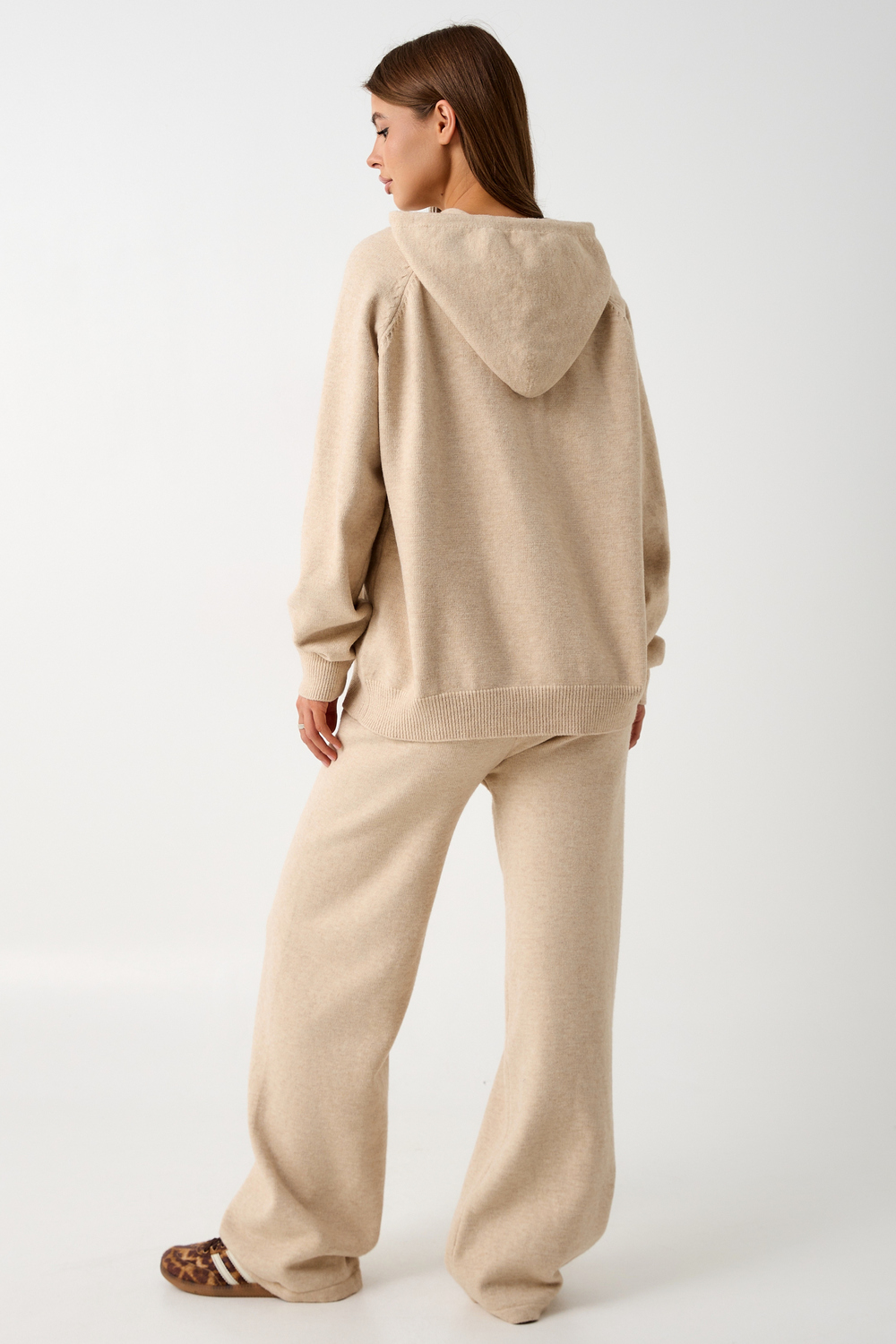Вязаный костюм станет незаменимой основой женского гардероба для прохладной погоды, комфортным способом утепления. Он сшит из мягкой, приятной к телу пряжи с шерстяными волокнами, которая надолго сохраняет насыщенность цвета и свою форму, выдерживая интенсивное ношение и частые стирки. Стильный дизайнерский комплект отличается продуманным дизайном. Брюки - спортивки с широким поясом - резинкой, длинными штанинами, подчеркивают силуэт, не сковывая движений. Универсальность классической пастельной палитры и лаконичного дизайна позволяет легко включать комплект в коллекцию вещей для осенне - весеннего демисезонного и зимнего периода. Он идеально сочетается с однотонными вариантами обуви и нарядными праздничными аксессуарами для создания элегантного и собранного образа. Трендовый костюмный ансамбль выбирают для повседневной городской активности и для более расслабленного домашнего формата времяпрепровождения. Он дарит ощущение уюта и стиля, сохраняя комфортную температуру тела в холодный день и вечернее время с ранней осени до поздней весны. Популярный у покупателей набор, с кашемиром в составе, из двух предметов одежды отлично подойдет для прогулок и неформальных офисных образов. Модный трикотажный костюм - двойка станет приятным приобретением для женщины или девушки высокого, или невысокого роста, подойдет для женственного Family look в кэжуал, спортшик или у2к (y2k) стилях. Подростки могут носить такой комплект в молодежном дизайне вместо спортивной формы в школе, университете или колледже на уроке физкультуры. Это практичное приобретение для себя и полезный подарок для близких на любое торжество, в том числе день рождения. В линейке бренда представлены модели в различных фасонах, в том числе с худи - зипкой, с капюшоном.