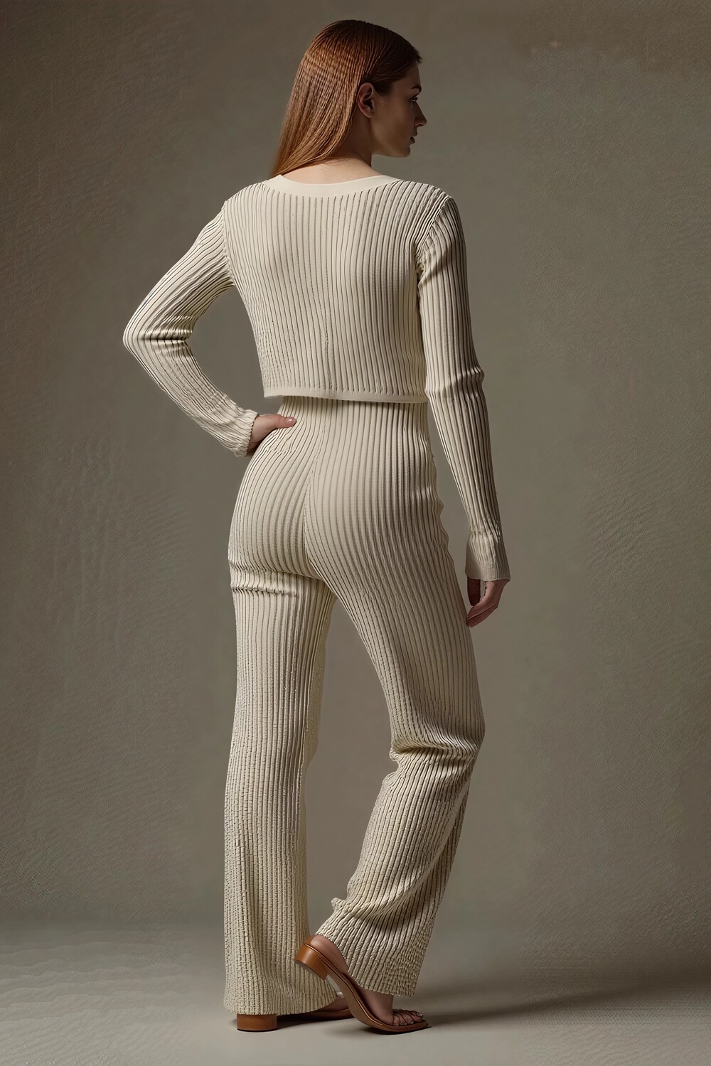Вязаный костюм станет незаменимой основой женского гардероба для прохладной погоды, комфортным способом утепления. Он сшит из мягкой, приятной к телу пряжи с выразительной рифленой фактурой «в полоску». Вертикальные рельефные линии, проходящие сверху вниз по всему костюму, визуально вытягивают силуэт, делая его более стройным и изящным. Такая вязка придает ткани особую мягкость и объем. Стильный дизайнерский комплект отличается продуманным дизайном: кофточка с V-образным вырезом горловины на пуговицах обеспечивает комфорт, а брюки - спортивки с высоким поясом - резинкой, длинными штанинами подчеркивают силуэт, не сковывая движений. Универсальность классической пастельной палитры и лаконичного дизайна позволяет легко включать комплект в коллекцию вещей для осенне - весеннего демисезонного и зимнего периода. Он идеально сочетается с однотонными вариантами обуви и нарядными праздничными аксессуарами для создания элегантного и собранного образа. Трендовый костюмный ансамбль выбирают для повседневной городской активности и для более расслабленного домашнего формата времяпрепровождения. Он дарит ощущение уюта и стиля, сохраняя комфортную температуру тела в холодный день и вечернее время с ранней осени до поздней весны. Популярный у покупателей набор, из двух предметов одежды отлично подойдет для прогулок и неформальных офисных образов. Модный трикотажный костюм - двойка станет приятным приобретением для женщины или девушки высокого или невысокого роста, подойдет для женственного Family look в кэжуал, спортшик или у2к стилях. Подростки могут носить такой комплект в молодежном дизайне вместо спортивной формы в школе, университете или колледже. Это практичное приобретение для себя и полезный подарок для близких на любое торжество, в том числе день рождения. В линейке бренда представлены модели в различных фасонах, в том числе с худи - зипкой, которая застегивается на молнию, с капюшоном.