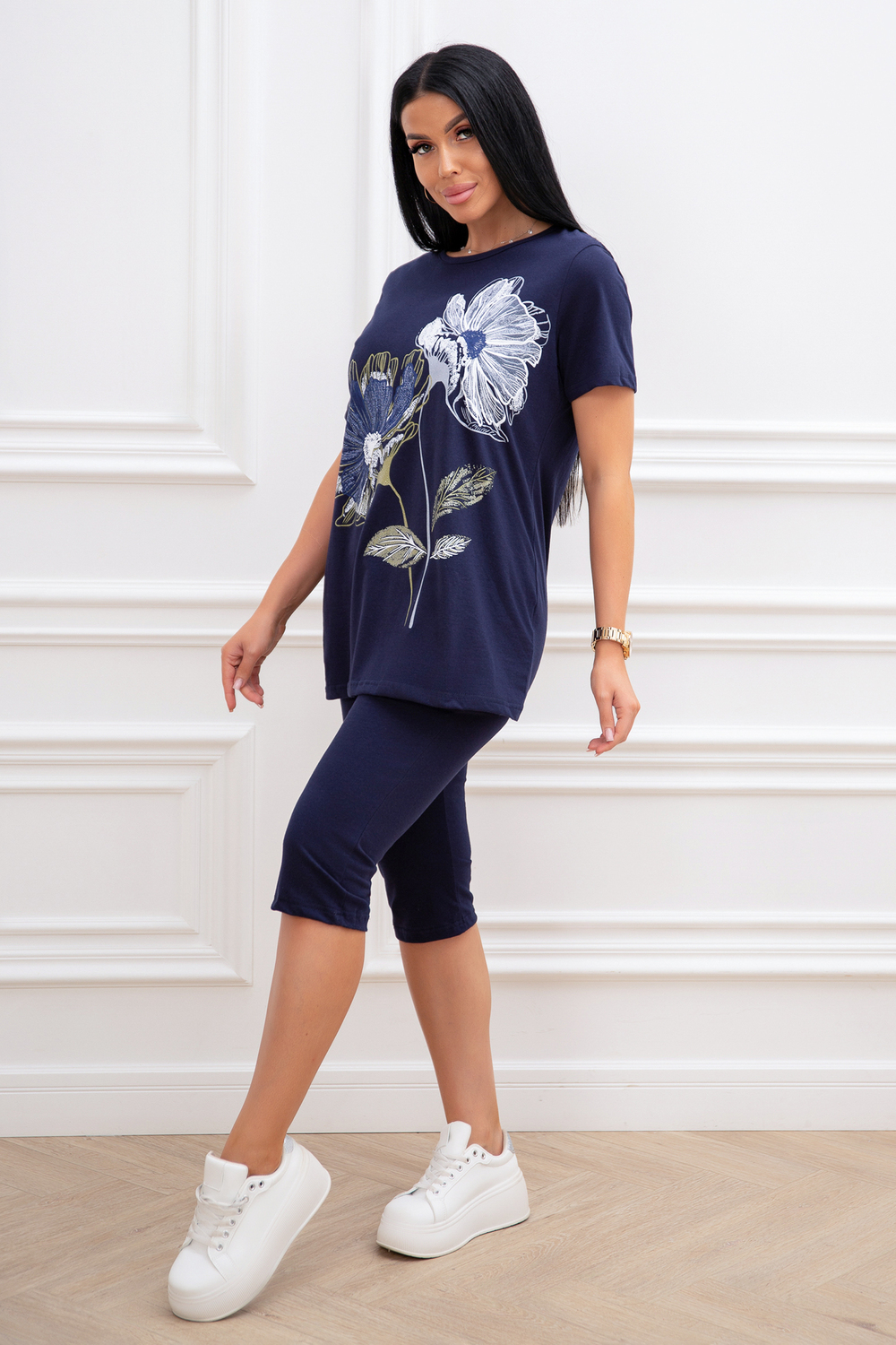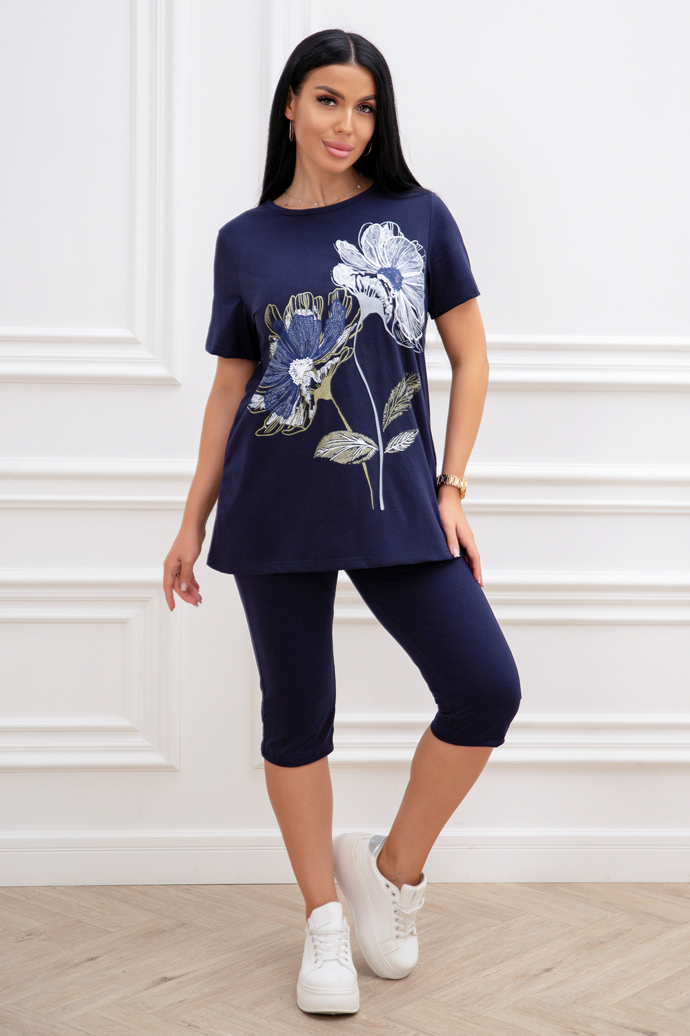 Костюм женский футболка и бриджи. Футболка с коротким рукавом, бриджи с карманами. На полочке принт