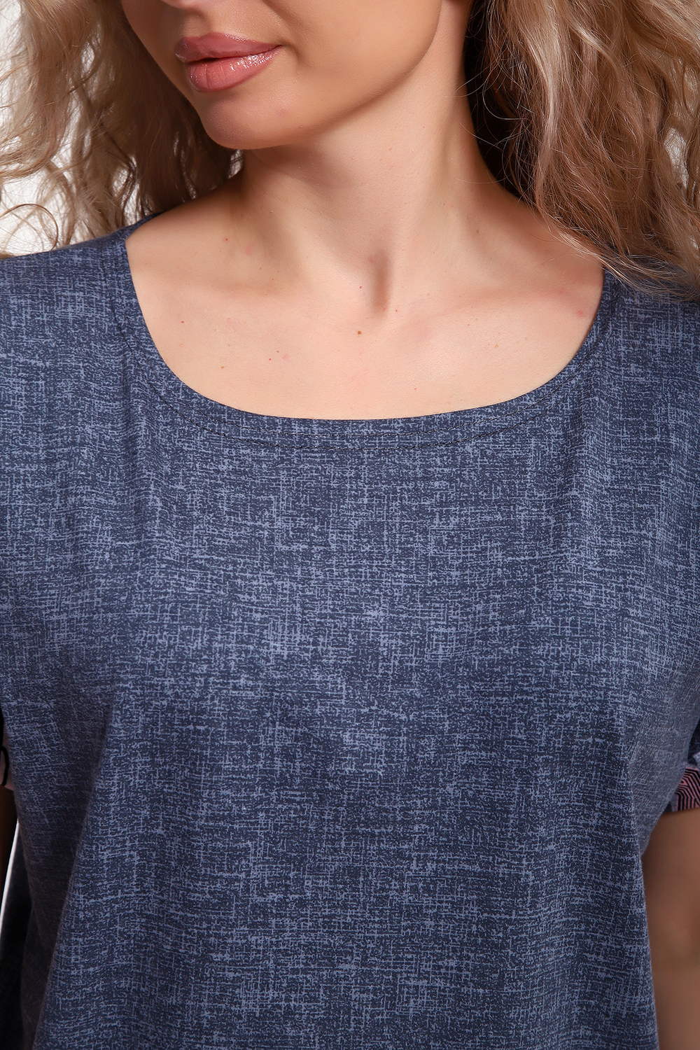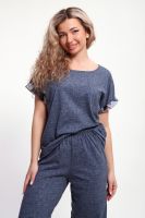 Костюм с брюками выполнен из хлопкового трикотажного полотна, мягкий на ощупь и приятный к телу. Футболка с цельнокроеным рукавом свободно облегает фигуру, скрывая недостатки, создавая изящный силуэт при любых параметрах фигуры. Брюки со средней высотой посадки на притачной эластичной тесьме по талии. Пижамный костюм с брюками с легкостью применим в качестве домашней одежды.