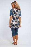Женский костюм выполнен из мягкого хлопка, поэтому в нем комфортно в любое время года. Такой трикотажный костюм легко использовать как повседневный наряд для дома. Фасон продуман до мелочей: удобный крой туники с карманами и коротким рукавом отлично подходит как летний вариант, а в прохладное время костюм можно носить как демисезонный. Для полных женщин костюм станет удачным решением: эластичный материал хорошо садится на фигуру и не сковывает движений, долго сохраняет аккуратный вид, не вытягивается и остаётся привлекательным даже при длительном использовании. Благодаря мягкой ткани и свободному крою в нем удобно отдыхать дома