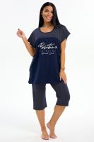 Представляем вашему вниманию шикарный спортивный домашний костюм женский больших размеров, который станет незаменимым элементом вашего гардероба. Этот комплект идеально подходит для комфортного времяпрепровождения дома, прогулок или занятий спортом. Костюм включает в себя стильную футболку и бриджи, выполненные из высококачественного материала, который гарантирует отличную воздухопроницаемость и приятные тактильные ощущения. Будьте уверены, что в этом комплекте вам будет удобно и тепло в любое время года. Он отлично сидит на фигуре и подчеркивает её достоинства, что особенно актуально для подходящей одежды больших размеров. Пижама с бриджами обеспечивает свободу движений, позволяя вам заниматься йогой, фитнесом или просто расслабляться на диване. Спортивный стиль костюма в сочетании с модными элементами поможет вам выглядеть стильно и современно даже в домашней обстановке. Футболка имеет удобный крой и не стесняет движений, что делает её отличным выбором для активного отдыха.