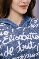 Костюм состоит из туники и шорт. Туника прямая, свободная, с резинкой по талии, с ушками на капюшоне, с разрезами в нижней части боковых швов. Рукав короткий. Шорты прямые, на поясе, с накладными карманами спереди. Вдоль боковых швов расположены молнии.