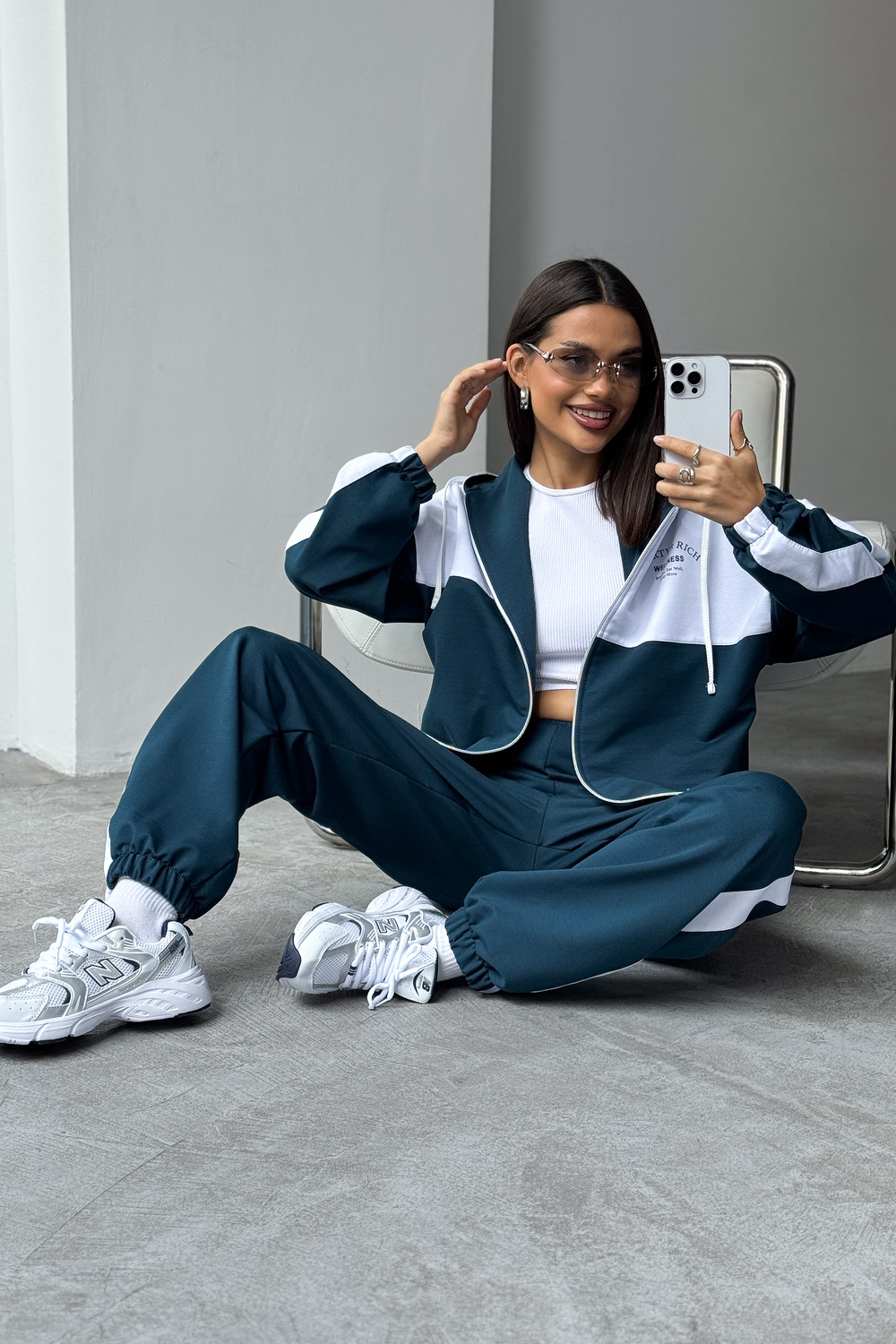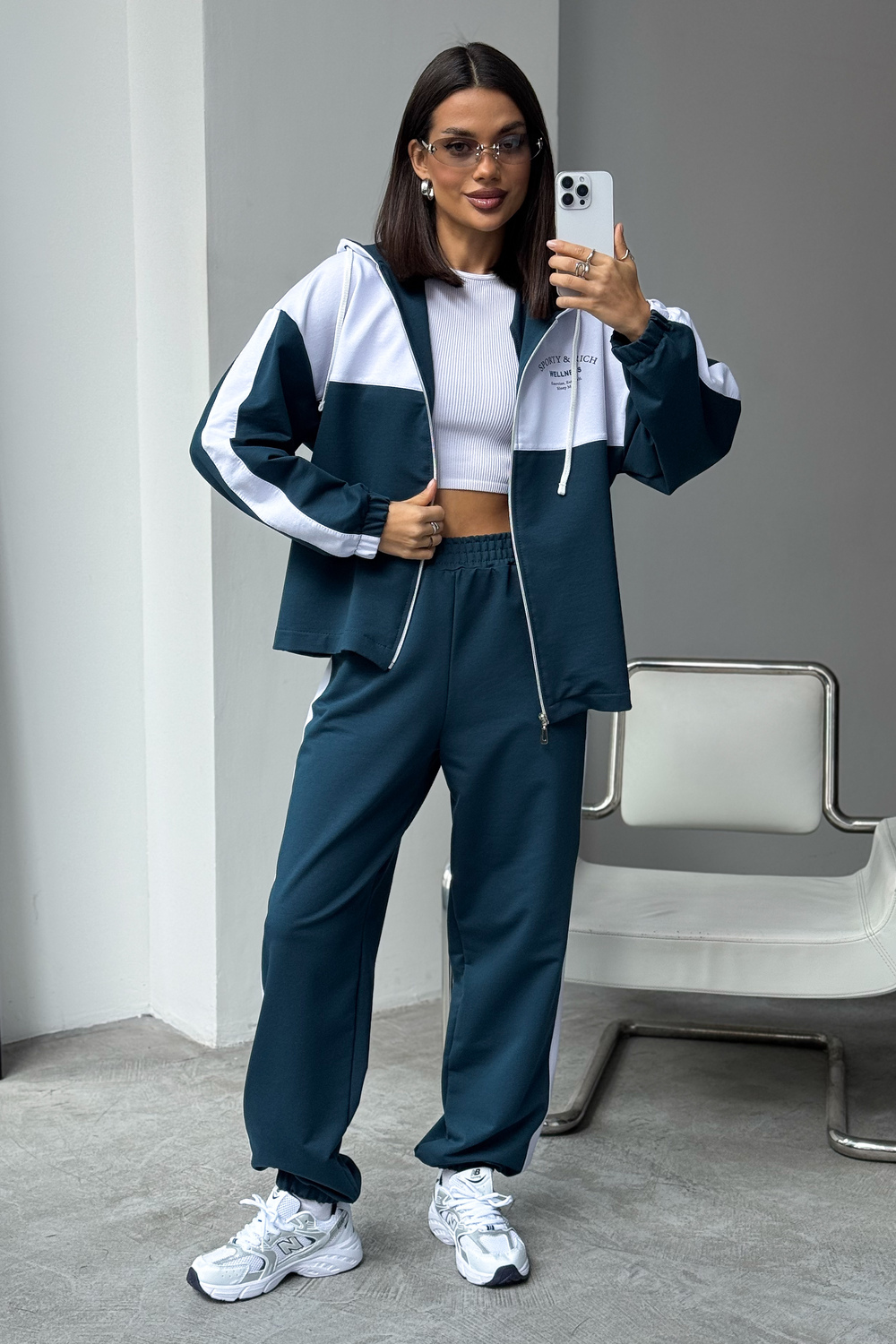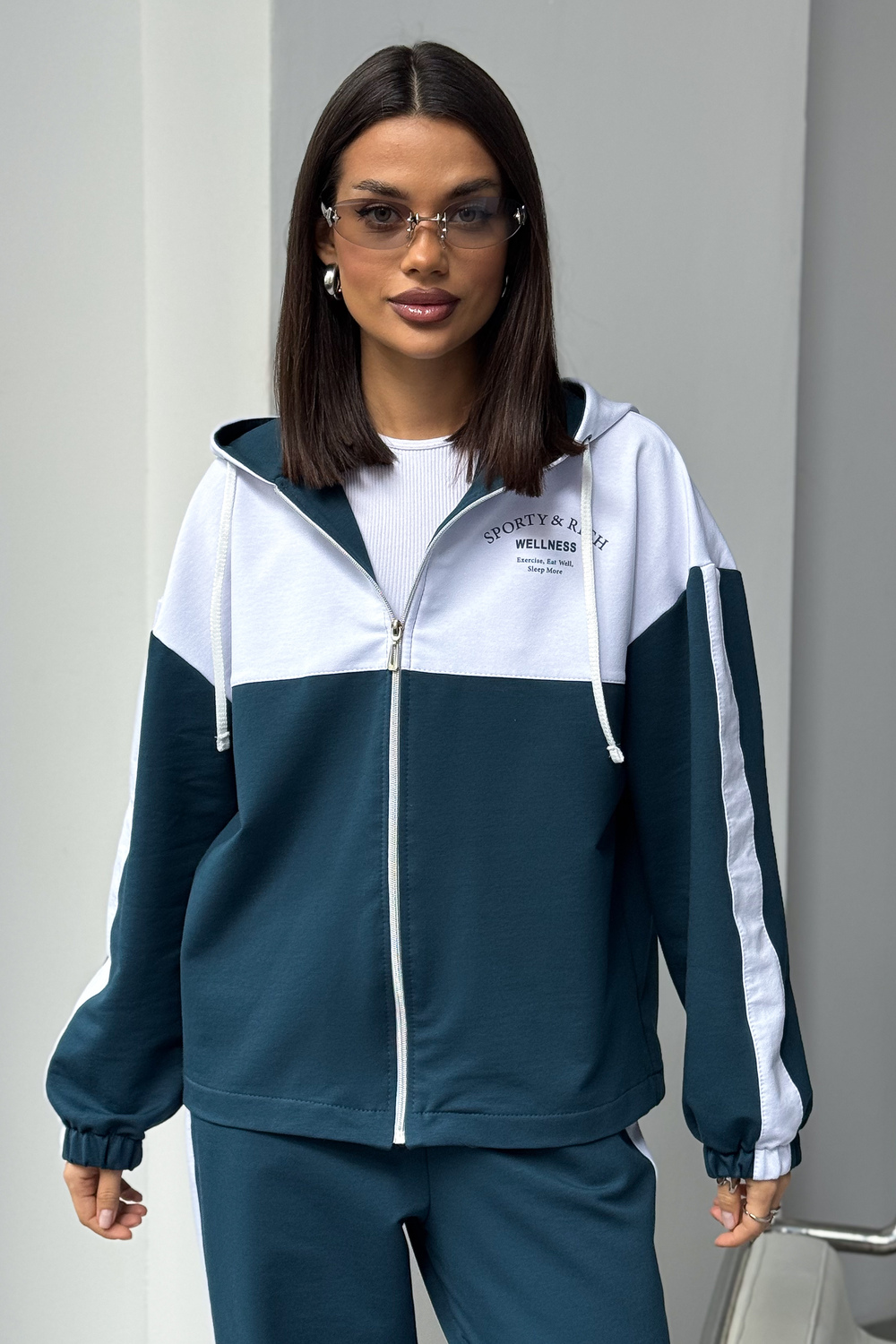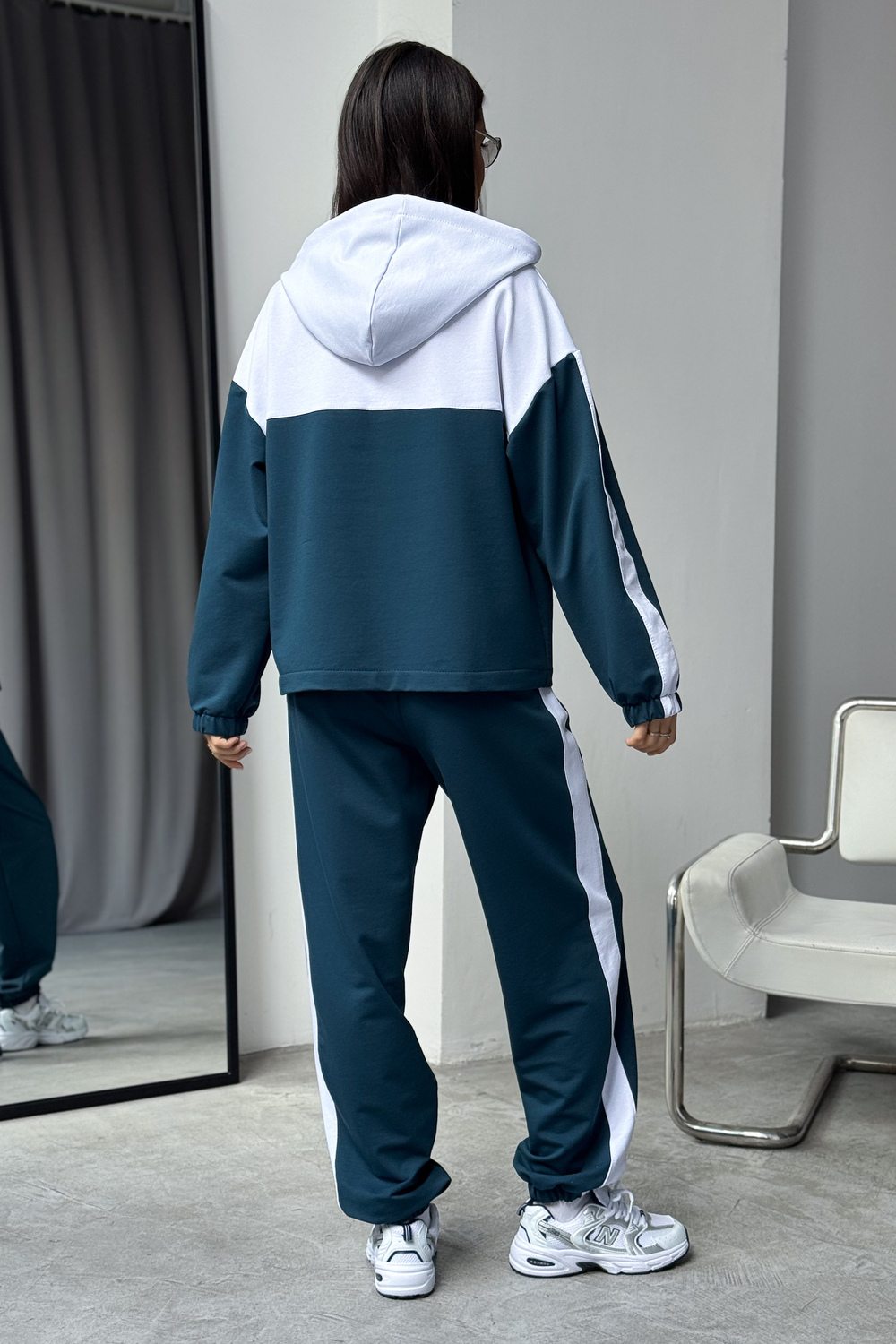 Женский спортивный костюм из трикотажа — идеальный выбор для тренировок, активных прогулок, дома или спортзала. Двойка состоит из худи на молнии с капюшоном и практичными брюками. Изделие выполнено из мягкого хлопка, что обеспечивает легкий и комфортный уход за вещью и удобство на каждый день.