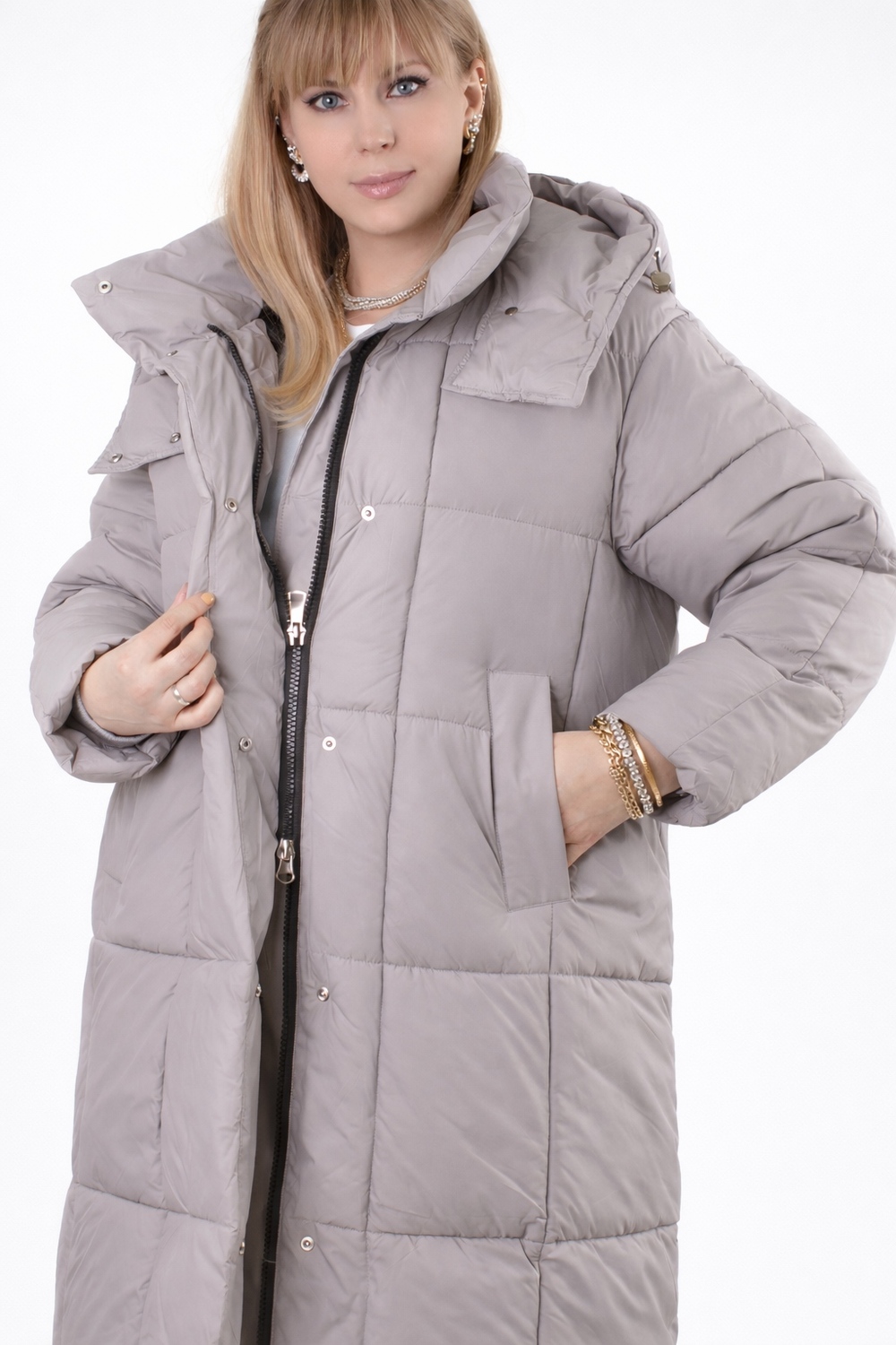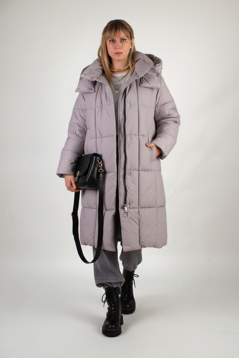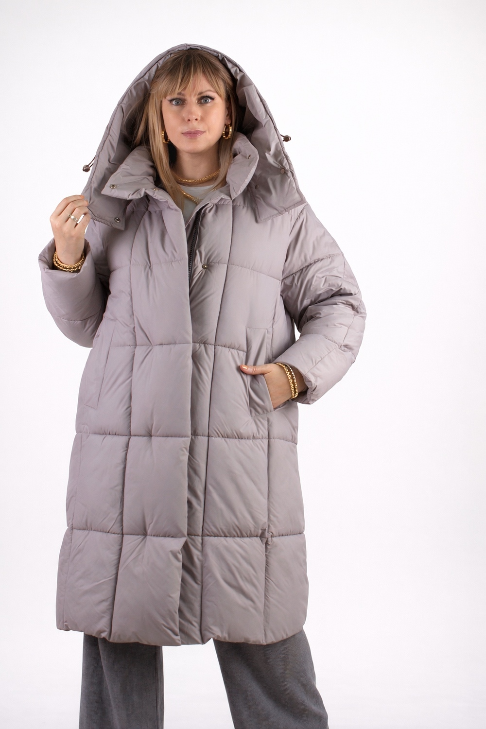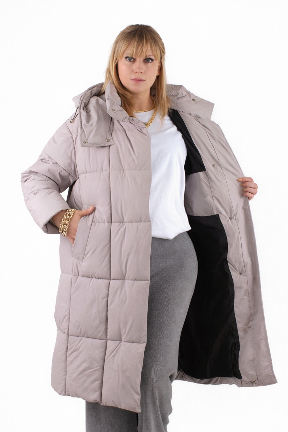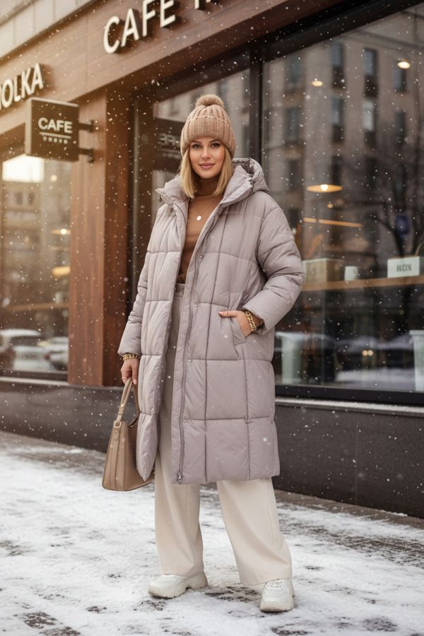 Стильная зимняя куртка оверсайз арт. 28137 — надежный выбор для тех, кто ценит комфорт, тепло и современный городской стиль. Модель выполнена в актуальном свободном крое оверсайз с удлинённой длиной, что обеспечивает дополнительную защиту от холода и ветра в зимний и демисезонный периоды. Куртка застегивается на двустороннюю молнию, которая позволяет легко регулировать вентиляцию и свободу движений — особенно удобно при посадке в авто или общественный транспорт. Утеплённая планка на кнопках придает изделию аккуратный вид и служит дополнительной защитой от зимних ветров. Основой куртки служит специальная курточная ткань, обладающая эффектом отталкивания грязи, шерсти домашних животных и волос, что облегчает уход за ней. Куртка представлена в четырех стильных цветах — эти оттенки легко впишутся в любой гардероб. Важнейшая особенность — качественный утеплитель файбер. Он равномерно распределён благодаря простеганной крупными квадратами конструкции, что исключает скапливание наполнителя в отдельных местах и сохраняет постоянное тепло по всей поверхности. Такая строчка гарантирует комфорт и защиту от холода без потери легкости и объема. Внутренний чёрный фирменный подклад износостоек и выглядит стильно. Функциональность куртки усилена двумя боковыми карманами на кнопках и удобным внутренним карманом для хранения мелочей. На рукавах трикотажные манжеты надёжно защищают от проникновения прохлады и ветра, сохраняя тепло внутри. Особое внимание уделено капюшону: он глубокий, тёплый, с воротником-стойкой и удобными фиксаторами, благодаря чему надежно защищает голову и шею при неблагоприятных погодных условиях. Качество пошива и фурнитуры на высоком уровне — все детали тщательно продуманы для комфортного ношения и долговечности изделия. Куртка оверсайз арт. 28137 — это выгодное сочетание современного дизайна, продуманной функциональности и надежной защиты от холода и ветра. Отличный выбор для активной городской жизни в зимний сезон или межсезонье. На модели так же представлено: Женская туника арт. 1991
