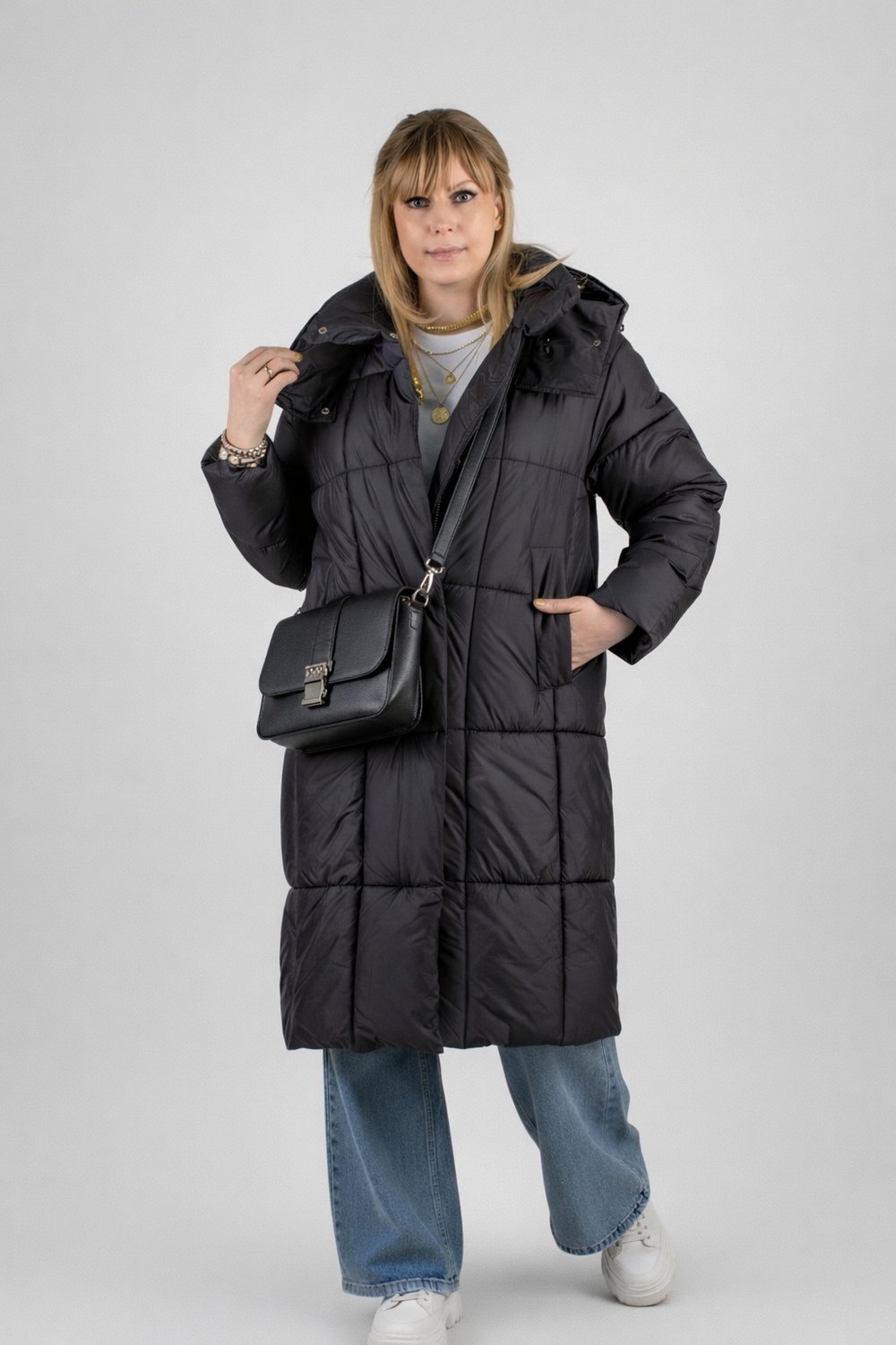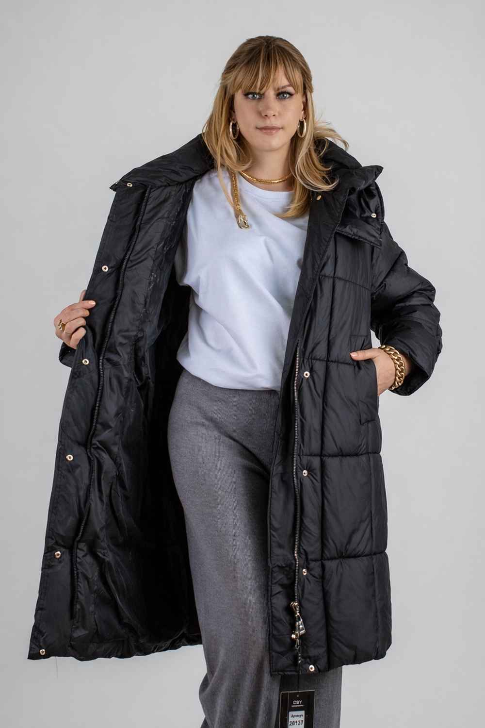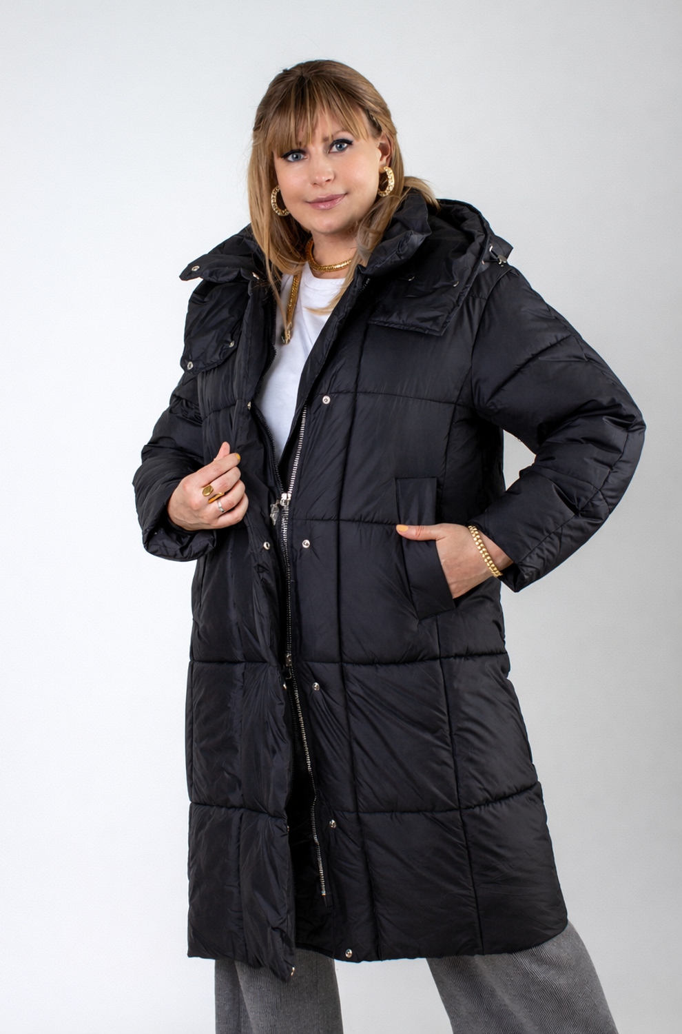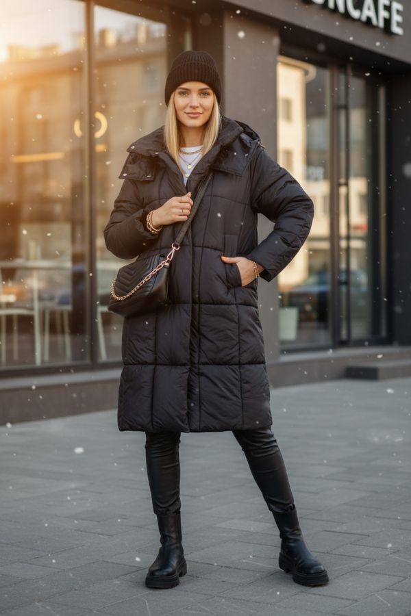 Стильная зимняя куртка оверсайз арт. 28137 — надежный выбор для тех, кто ценит комфорт, тепло и современный городской стиль. Модель выполнена в актуальном свободном крое оверсайз с удлинённой длиной, что обеспечивает дополнительную защиту от холода и ветра в зимний и демисезонный периоды. Куртка застегивается на двустороннюю молнию, которая позволяет легко регулировать вентиляцию и свободу движений — особенно удобно при посадке в авто или общественный транспорт. Утеплённая планка на кнопках придает изделию аккуратный вид и служит дополнительной защитой от зимних ветров. Основой куртки служит специальная курточная ткань, обладающая эффектом отталкивания грязи, шерсти домашних животных и волос, что облегчает уход за ней. Куртка представлена в четырех стильных цветах — эти оттенки легко впишутся в любой гардероб. Важнейшая особенность — качественный утеплитель файбер. Он равномерно распределён благодаря простеганной крупными квадратами конструкции, что исключает скапливание наполнителя в отдельных местах и сохраняет постоянное тепло по всей поверхности. Такая строчка гарантирует комфорт и защиту от холода без потери легкости и объема. Внутренний чёрный фирменный подклад износостоек и выглядит стильно. Функциональность куртки усилена двумя боковыми карманами на кнопках и удобным внутренним карманом для хранения мелочей. На рукавах трикотажные манжеты надёжно защищают от проникновения прохлады и ветра, сохраняя тепло внутри. Особое внимание уделено капюшону: он глубокий, тёплый, с воротником-стойкой и удобными фиксаторами, благодаря чему надежно защищает голову и шею при неблагоприятных погодных условиях. Качество пошива и фурнитуры на высоком уровне — все детали тщательно продуманы для комфортного ношения и долговечности изделия. Куртка оверсайз арт. 28137 — это выгодное сочетание современного дизайна, продуманной функциональности и надежной защиты от холода и ветра. Отличный выбор для активной городской жизни в зимний сезон или межсезонье. На модели так же представлено: Женская туника арт. 1991
