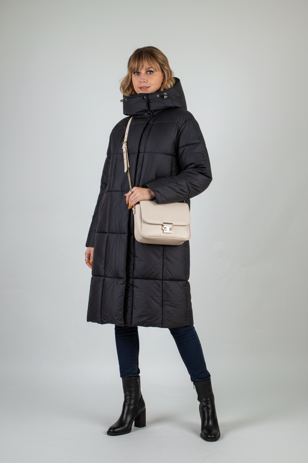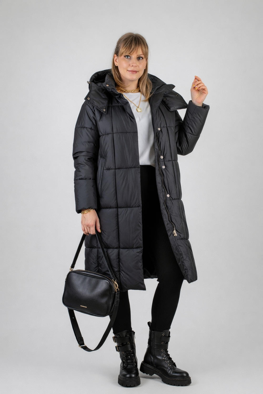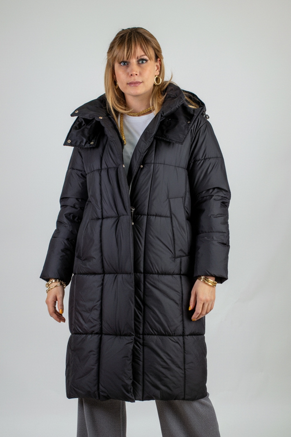 Стильная зимняя куртка оверсайз арт. 28137 — надежный выбор для тех, кто ценит комфорт, тепло и современный городской стиль. Модель выполнена в актуальном свободном крое оверсайз с удлинённой длиной, что обеспечивает дополнительную защиту от холода и ветра в зимний и демисезонный периоды. Куртка застегивается на двустороннюю молнию, которая позволяет легко регулировать вентиляцию и свободу движений — особенно удобно при посадке в авто или общественный транспорт. Утеплённая планка на кнопках придает изделию аккуратный вид и служит дополнительной защитой от зимних ветров. Основой куртки служит специальная курточная ткань, обладающая эффектом отталкивания грязи, шерсти домашних животных и волос, что облегчает уход за ней. Куртка представлена в четырех стильных цветах — эти оттенки легко впишутся в любой гардероб. Важнейшая особенность — качественный утеплитель файбер. Он равномерно распределён благодаря простеганной крупными квадратами конструкции, что исключает скапливание наполнителя в отдельных местах и сохраняет постоянное тепло по всей поверхности. Такая строчка гарантирует комфорт и защиту от холода без потери легкости и объема. Внутренний чёрный фирменный подклад износостоек и выглядит стильно. Функциональность куртки усилена двумя боковыми карманами на кнопках и удобным внутренним карманом для хранения мелочей. На рукавах трикотажные манжеты надёжно защищают от проникновения прохлады и ветра, сохраняя тепло внутри. Особое внимание уделено капюшону: он глубокий, тёплый, с воротником-стойкой и удобными фиксаторами, благодаря чему надежно защищает голову и шею при неблагоприятных погодных условиях. Качество пошива и фурнитуры на высоком уровне — все детали тщательно продуманы для комфортного ношения и долговечности изделия. Куртка оверсайз арт. 28137 — это выгодное сочетание современного дизайна, продуманной функциональности и надежной защиты от холода и ветра. Отличный выбор для активной городской жизни в зимний сезон или межсезонье. На модели так же представлено: Женская туника арт. 1991