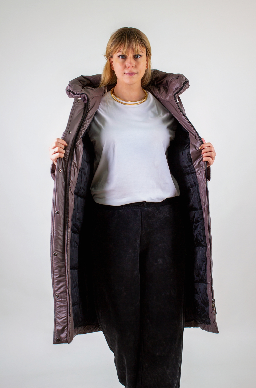 Зимняя куртка удлиненная с верблюжьей шерстью арт. 217 — идеальный выбор для тех, кто ценит сочетание элегантного стиля, исключительного комфорта и надёжной защиты от морозов, оставаясь при этом легкой. Длина изделия 103 см обеспечивает дополнительное тепло в области бедер и поясницы, прикрывает колени, что особенно важно в суровые зимние дни. Стёганая актуальной строчкой придаёт куртке современный вид и гарантирует равномерное распределение утеплителя по всей площади изделия, исключая риск образования холодных зон. В качестве наполнителя используется верблюжья шерсть — один из самых тёплых и дышащих материалов, известный своей способностью сохранять тепло даже при экстремально низких температурах до -30 °С. Толстый слой верблюжьей шерсти мягко обволакивает тело, регулирует оптимальный микроклимат, предотвращая перегрев и обеспечивая комфорт на целый день - при этом куртка остается легкой и удобной для повседневного ношения. Удобный капюшон с высоким воротником стойкой на завязках помогает защититься от порывов ветра и снежных осадков. Двухзамковая молния позволяет оперативно регулировать степень открытости куртки: внизу — для удобства при ходьбе и посадке в автомобиль, вверху — для плотного прилегания горловины. Специальная планка на кнопках надёжно защищает от продувания по линии застёжки. Практичные боковые карманы на кнопке прекрасно вписываются в общий дизайн и помогают сохранить руки в тепле, а также дают возможность хранить мелкие принадлежности: мобильный телефон, ключи или перчатки. Все детали — от фурнитуры до строчек — тщательно продуманы и выполнены на профессиональном оборудовании из износостойких материалов: коричневые кнопки и молния гармонируют с тёплым оттенком ткани, создавая стильный образ. Куртка прекрасно сочетается как с повседневным гардеробом, так и с деловыми комплектами: её коричневый цвет удачно дополнит образ в оттенках camel, хаки, чёрного или сдержанных серых тонов. Благодаря вдумчивому дизайну и высокому качеству пошива эта модель прослужит не один сезон, сохраняет презентабельный вид и устойчивость к выцветанию. Выбирая зимнюю куртку арт. 217, вы получаете: • Комфорт и тепло до -30 °С благодаря верблюжьей шерсти • Элегантный образ и практичность классической простёжки • Удлинённый крой (103 см) для дополнительной защиты от холода • Удобство использования: капюшон с воротником-стойкой, двухзамковая молния, планка на кнопках • Два функциональных боковых кармана на надёжных кнопках • Высококачественный пошив и фурнитура, прочность и долговечность • Модный универсальный цвет — тёплый коричневый, который гармонично впишется в любой гардероб Подарите себе тепло и уют в самых морозных условиях с этой роскошной удлинённой курткой из верблюжьей шерсти.