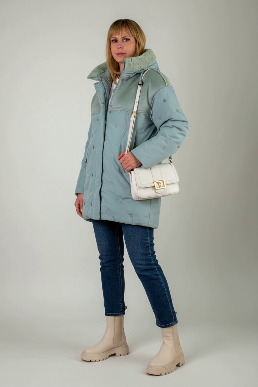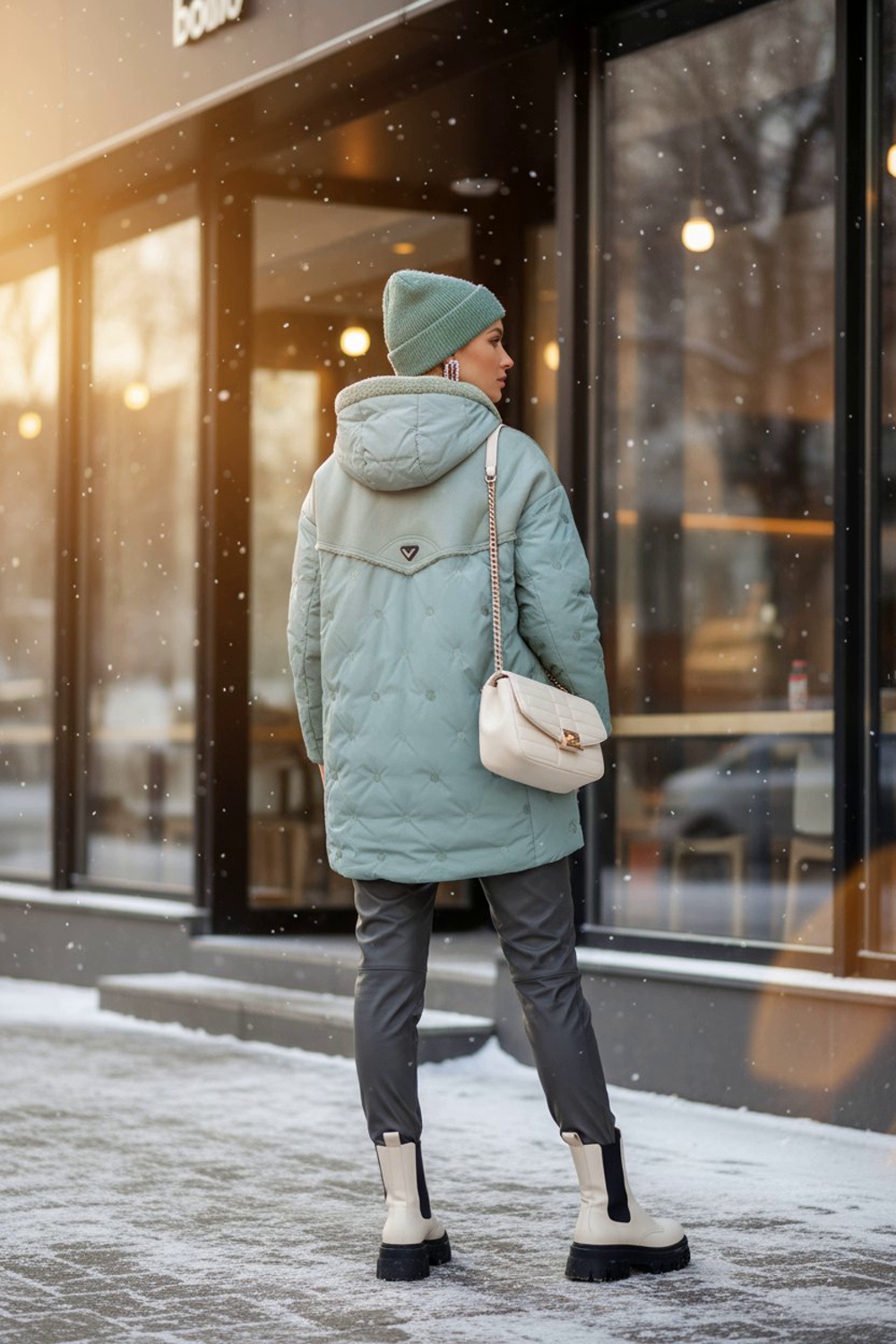 Элегантная и сверх тёплая зимняя куртка-дубленка арт.318 – идеальный выбор для суровых морозов. Модель средней длины (87 см) сочетает в себе комфорт, стиль и непревзойдённое качество исполнения. Основные преимущества: • Наполнитель из верблюжьей шерсти: лёгкий и при этом невероятно тёплый. Шерсть равномерно простёгана внутри изделия, что исключает смещение наполнителя и обеспечивает однородность теплового комфорта. • Крой средней длины (87 см) отлично защищает от ветра и холода, позволяя сохранить свободу движений. • Капюшон со стойкой-воротником на фиксаторах украшен двусторонней меховой опушкой «барашек» в цвет изделия – исключительное сочетание уютной фактуры и актуального дизайна. • Модная кокетка из утеплённой экозамши супер приятной на ощупь, отделана мехом в тон куртки. Вместо привычной строчки – современная ультрасовременная вышивка, придающая изделию роскошный вид. • Надёжная двойная молния с тёплой планкой на кнопках защищает от продувания. Функциональные детали: – Два вместительных боковых кармана на кнопках для согрева рук и хранения мелочей. – Тайный внутренний карман для документов или смартфона. – Высококачественные фурнитура и строчка, которые гарантируют долговечность и эстетику. – Влаго- и грязеотталкивающая пропитка ткани сохраняет безупречный вид при любых погодных испытаниях. Цветовое разнообразие: – Основной акцент – нежная светлая сирень: утончённый пастельный оттенок, который выгодно подчеркивает красоту женского силуэта и создаёт романтическое настроение. – Также в ассортименте: светло-бежевый, бирюзовый и пыльный синий – классические и одновременно смелые решения для любого образа. Зимняя куртка-дубленка арт.318 – это превосходная комбинация функциональности, стиля и высоких технологий, которая сделает ваши морозные дни по-настоящему тёплыми и комфортными. Не упустите шанс обновить гардероб качественным пуховиком-дубленкой, в которой вы будете выглядеть безупречно и чувствовать себя уютно даже при экстремальных температурах.