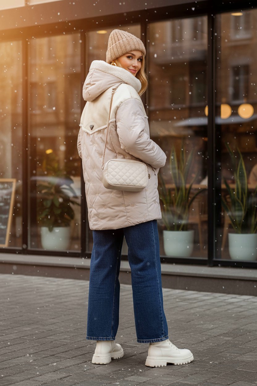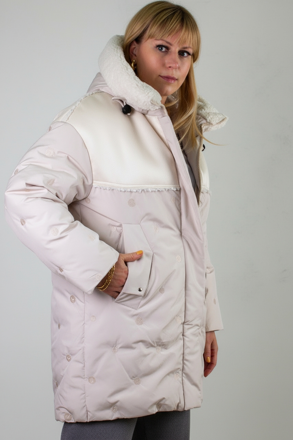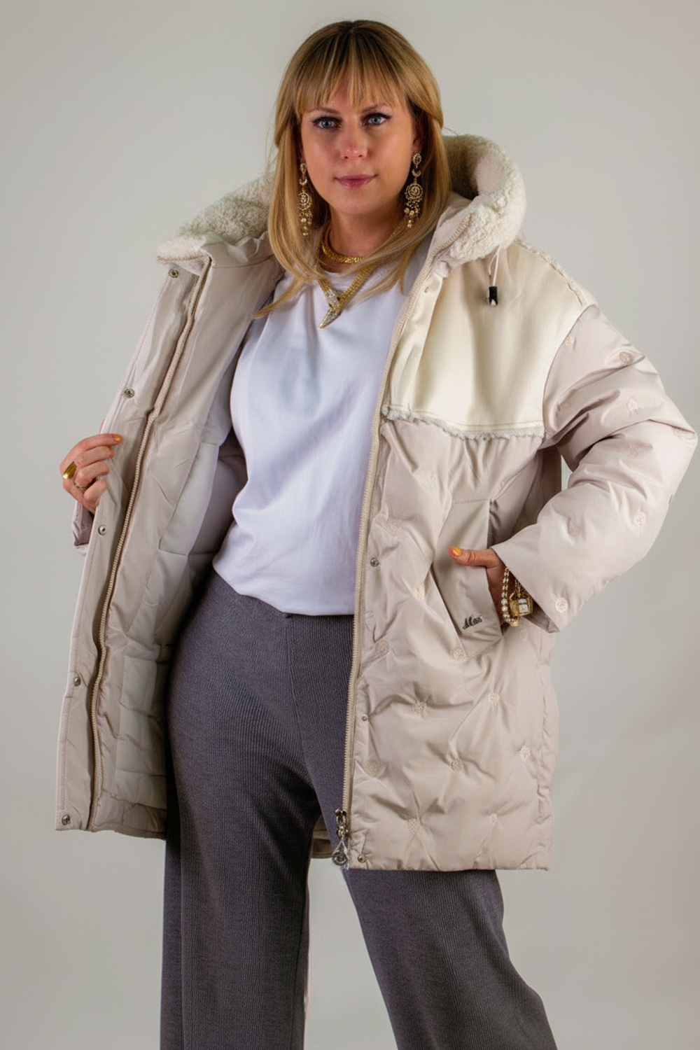Элегантная и сверх тёплая зимняя куртка-дубленка арт.318 – идеальный выбор для суровых морозов. Модель средней длины (87 см) сочетает в себе комфорт, стиль и непревзойдённое качество исполнения. Основные преимущества: • Наполнитель из верблюжьей шерсти: лёгкий и при этом невероятно тёплый. Шерсть равномерно простёгана внутри изделия, что исключает смещение наполнителя и обеспечивает однородность теплового комфорта. • Крой средней длины (87 см) отлично защищает от ветра и холода, позволяя сохранить свободу движений. • Капюшон со стойкой-воротником на фиксаторах украшен двусторонней меховой опушкой «барашек» в цвет изделия – исключительное сочетание уютной фактуры и актуального дизайна. • Модная кокетка из утеплённой экозамши супер приятной на ощупь, отделана мехом в тон куртки. Вместо привычной строчки – современная ультрасовременная вышивка, придающая изделию роскошный вид. • Надёжная двойная молния с тёплой планкой на кнопках защищает от продувания. Функциональные детали: – Два вместительных боковых кармана на кнопках для согрева рук и хранения мелочей. – Тайный внутренний карман для документов или смартфона. – Высококачественные фурнитура и строчка, которые гарантируют долговечность и эстетику. – Влаго- и грязеотталкивающая пропитка ткани сохраняет безупречный вид при любых погодных испытаниях. Цветовое разнообразие: – Основной акцент – нежная светлая сирень: утончённый пастельный оттенок, который выгодно подчеркивает красоту женского силуэта и создаёт романтическое настроение. – Также в ассортименте: светло-бежевый, бирюзовый и пыльный синий – классические и одновременно смелые решения для любого образа. Зимняя куртка-дубленка арт.318 – это превосходная комбинация функциональности, стиля и высоких технологий, которая сделает ваши морозные дни по-настоящему тёплыми и комфортными. Не упустите шанс обновить гардероб качественным пуховиком-дубленкой, в которой вы будете выглядеть безупречно и чувствовать себя уютно даже при экстремальных температурах.