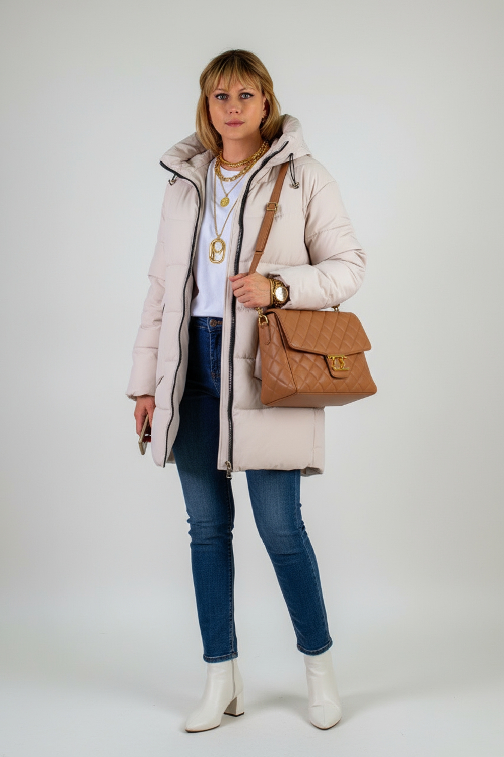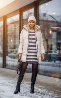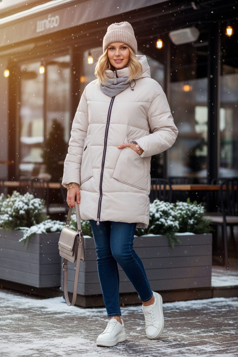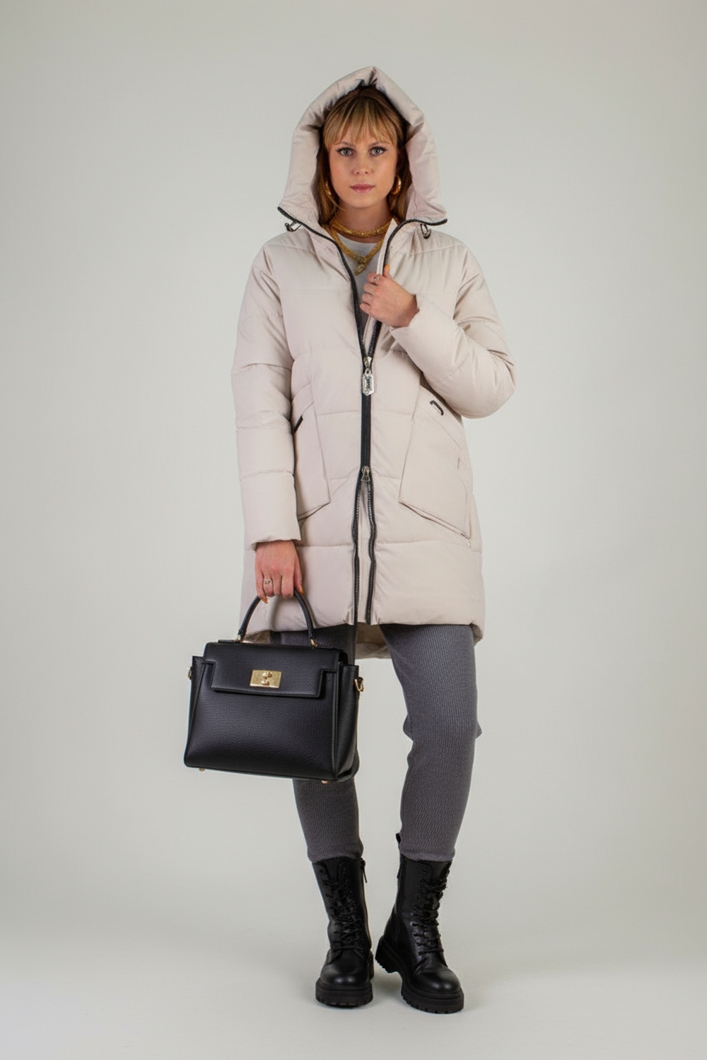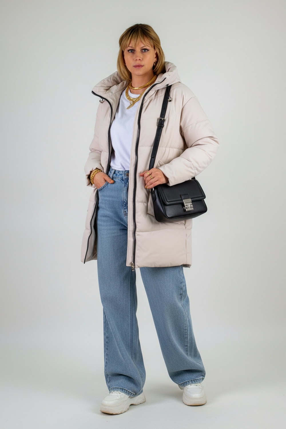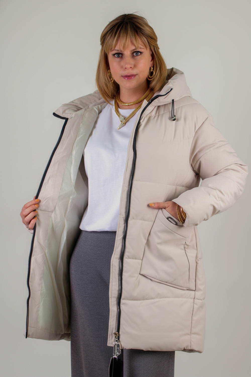 Зимняя куртка больших размеров арт. 2832 – оптимальное сочетание актуального дизайна, продуманного функционала и комфорта в холодное время года. Эта модель создана специально для женщин, ценящих свободу движений и стильный внешний вид. Особенности куртки: • Застёжка-молния с внутренней ветрозащитной планкой – защищает от ветра и снега, а двусторонний бегунок позволяет регулировать посадку при движении и в автомобиле. • Равномерно распределённый утеплитель «файбер» и простёганная (не ультрастеп) конструкция исключают образование холодных зон и сохраняют объёмный теплоэффект на протяжении всего сезона. • Два накладных кармана с декоративными клапанами скрывают за собой два боковых тайных кармана – удобное решение для хранения смартфона, ключей и мелочей. • Трикотажные манжеты на рукавах плотно прилегают к запястью, не дают холодному воздуху проникать внутрь. • Глубокий капюшон с фиксаторами и высокий воротник-стойка обеспечивают дополнительную защиту от ветра и снега. • Внутренний карман на молнии – для безопасного хранения документов и денег. Материал и качество: – Верх из плотной матовой ткани, легко очищается от грязи, пыли и шерсти домашних животных. – Наполнитель «файбер» – лёгкий и тёплый утеплитель, сохраняет форму и не скатывается. – Безупречный пошив, прочная фурнитура прослужат не один сезон. Цветовые решения – универсальный светло-бежевый и практичный серый. Удлинённая линия силуэта визуально вытягивает фигуру и надёжно защищает бедра от холода. Модель подходит для зимнего и «евро-зима» сезонов: вы не почувствуете ни капли дискомфорта при температуре до –25 °C при правильном базовом слое одежды. Куртка арт. 2832 – это стильный базовый элемент гардероба, который легко сочетать с джинсами, брюками и юбками. Будьте уверены: в ней вы будете выглядеть элегантно и чувствовать себя максимально тепло и уютно в любых условиях! На модели так же представлено: Женская туника арт. 1991
