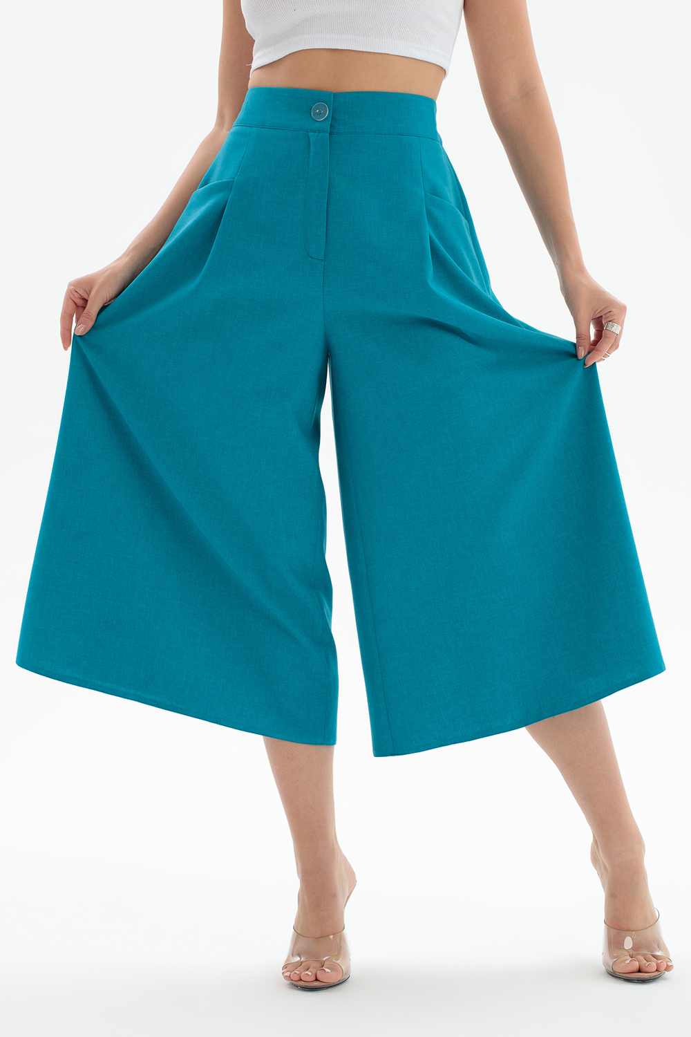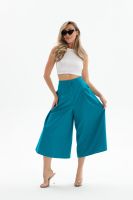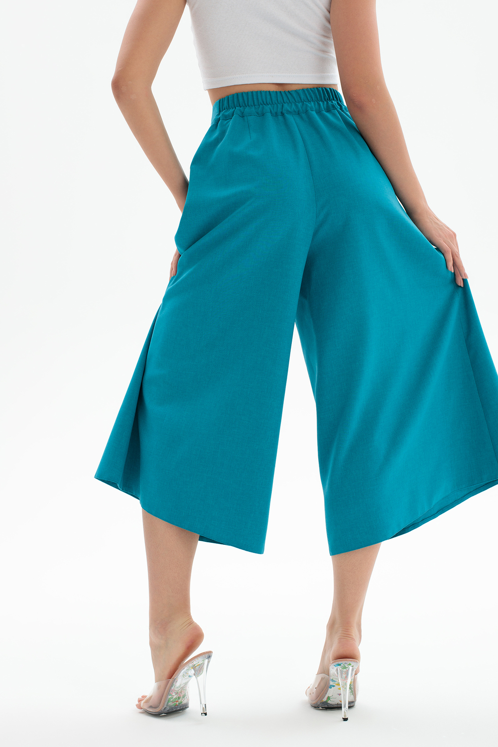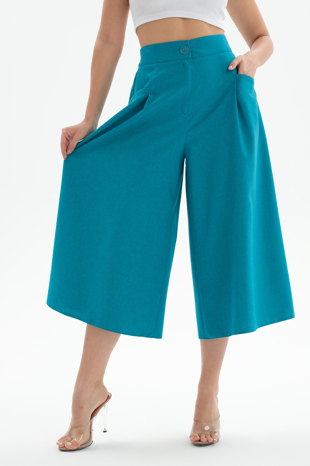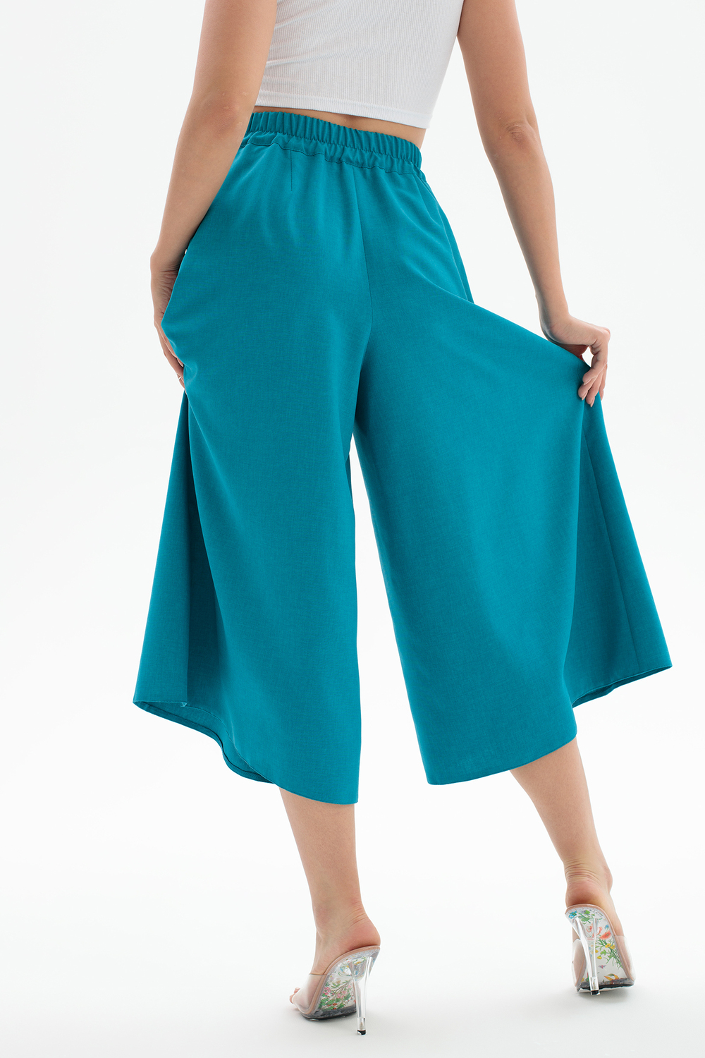 Укороченные широкие брюки - кюлоты с карманами и резинкой на талии подойдут женщинам любой комплекции и возраста. Комбинируя с различным верхом и обувью можно кардинально менять образ от строгого делового до расслаблено неформального.