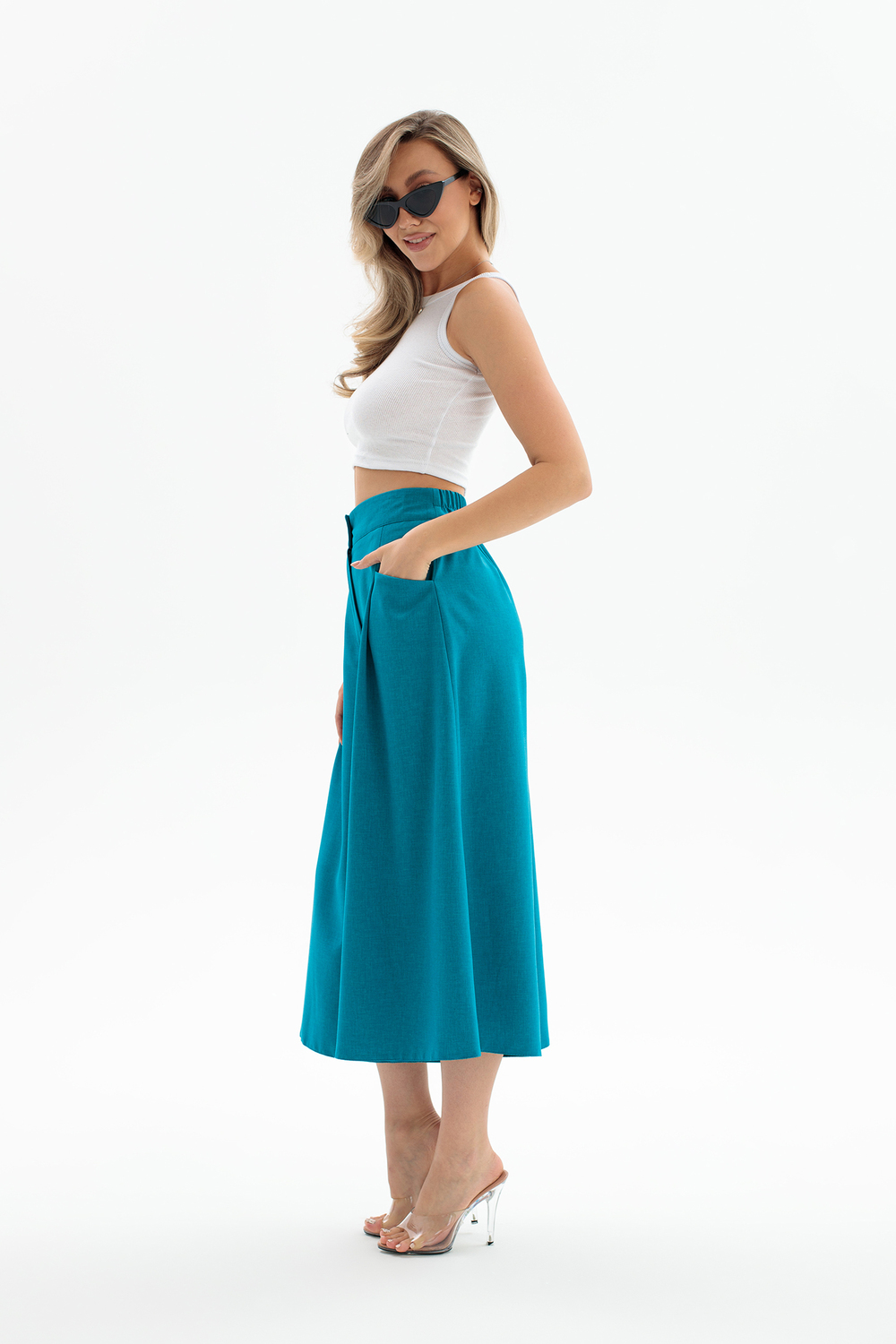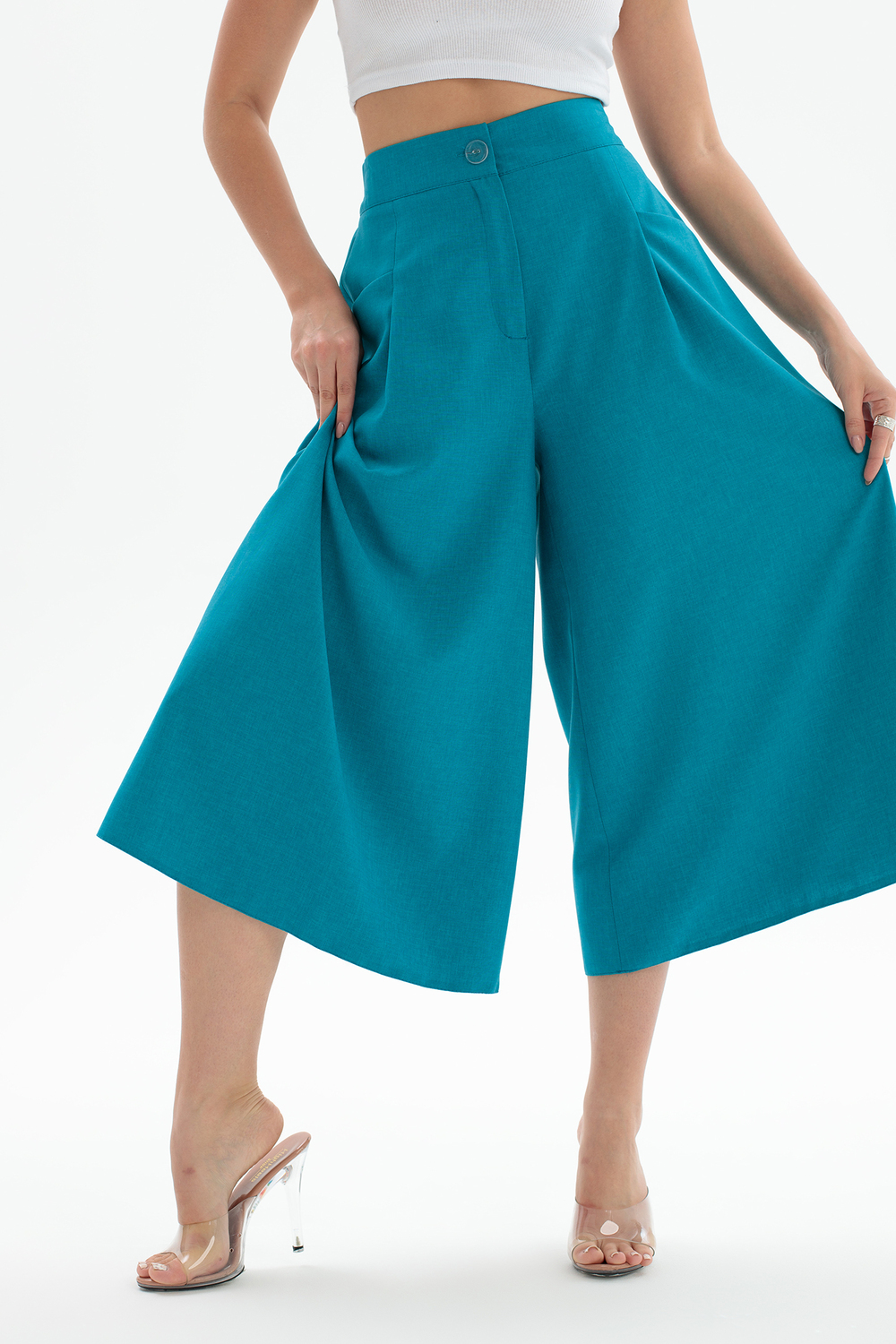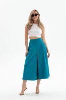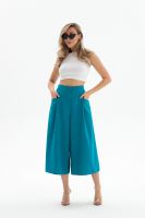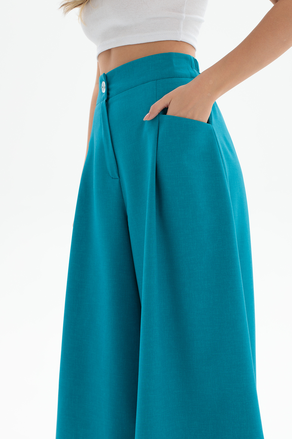 Укороченные широкие брюки - кюлоты с карманами и резинкой на талии подойдут женщинам любой комплекции и возраста. Комбинируя с различным верхом и обувью можно кардинально менять образ от строгого делового до расслаблено неформального.