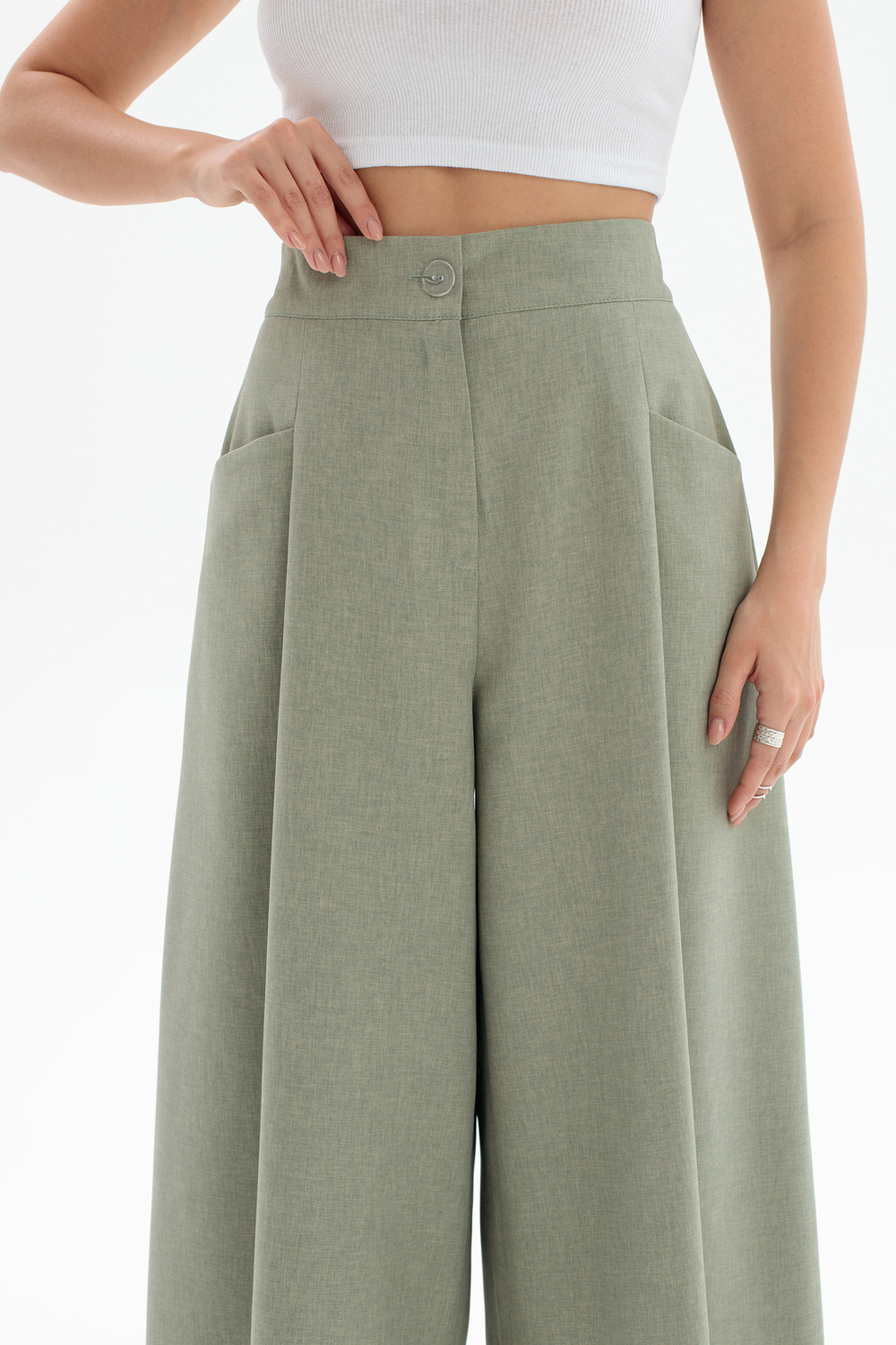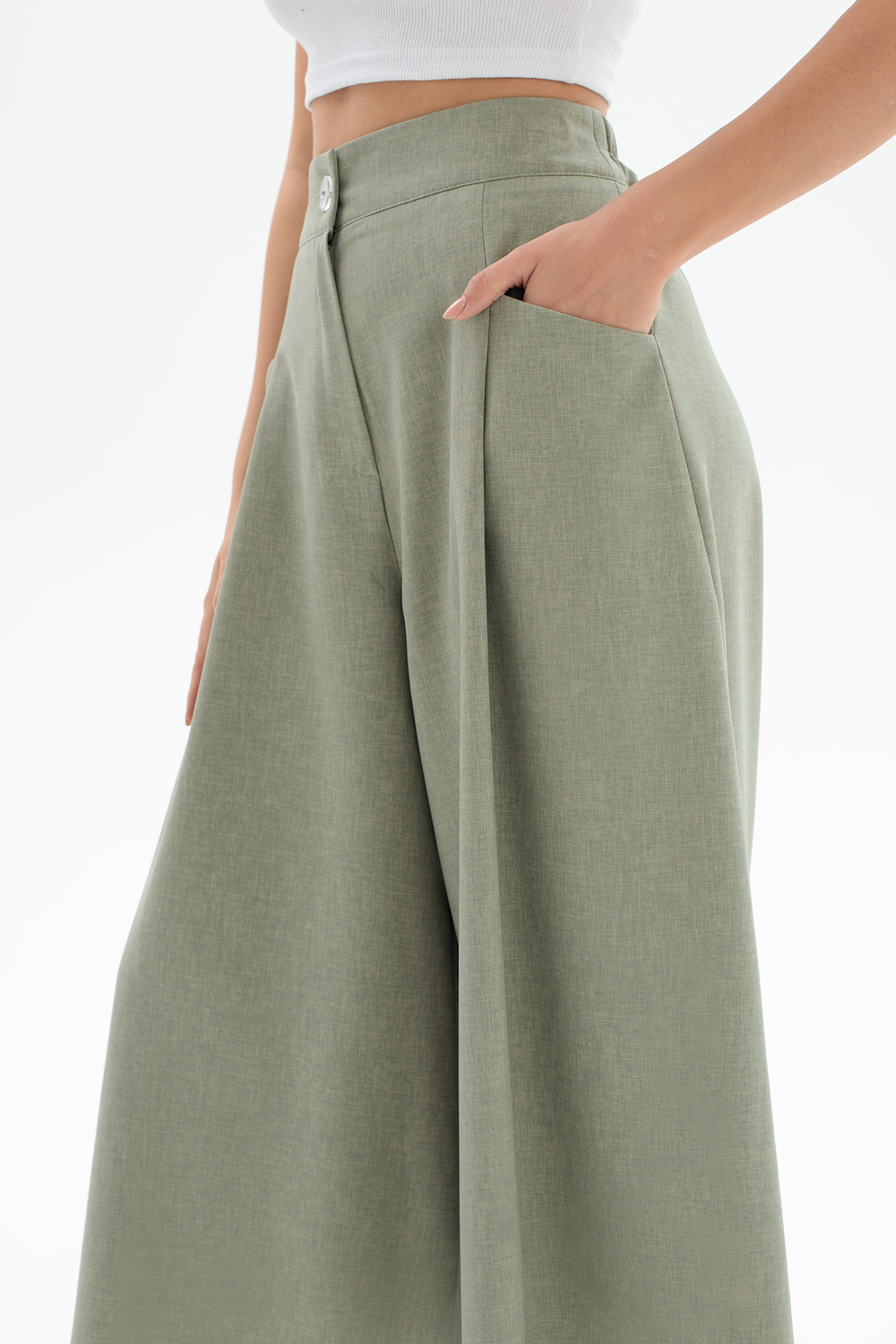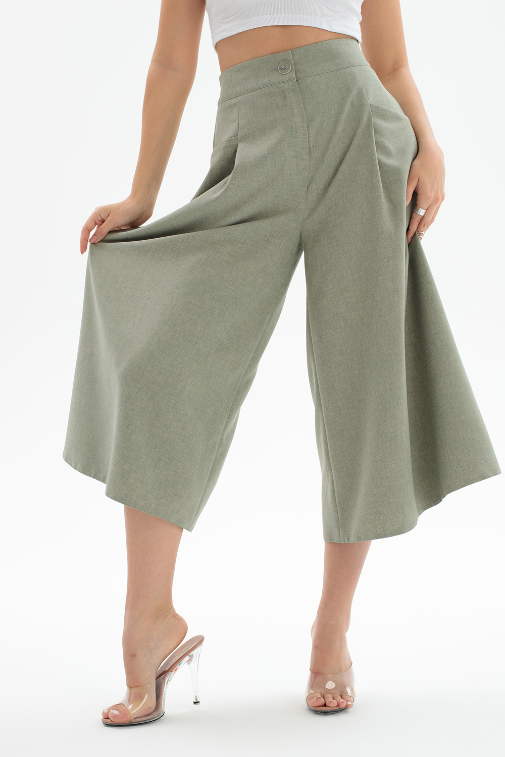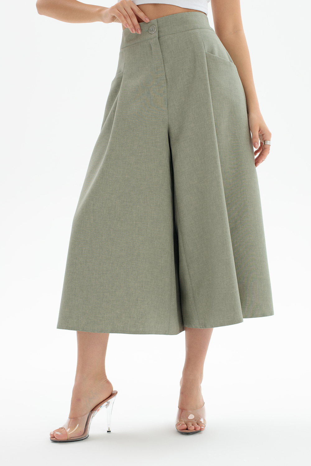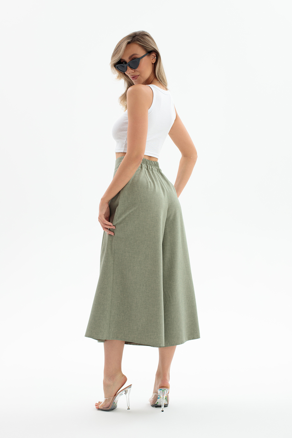 Укороченные широкие брюки - кюлоты с карманами и резинкой на талии подойдут женщинам любой комплекции и возраста. Комбинируя с различным верхом и обувью можно кардинально менять образ от строгого делового до расслаблено неформального.