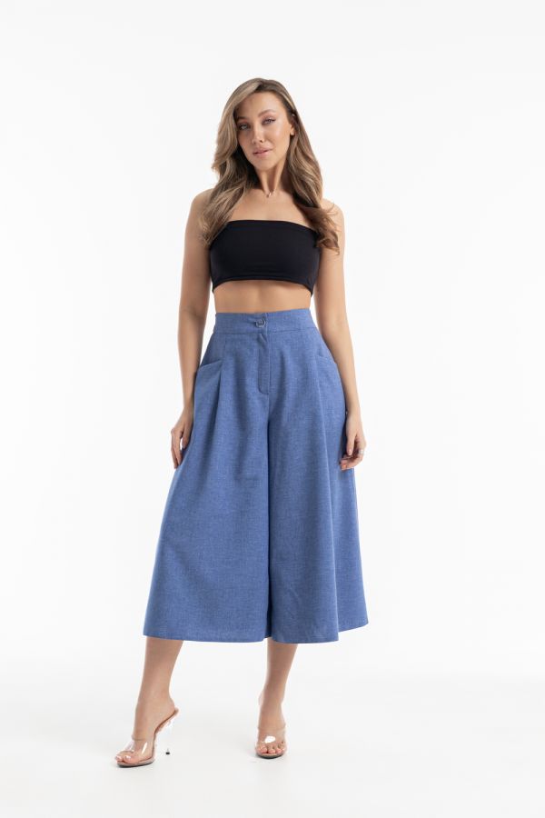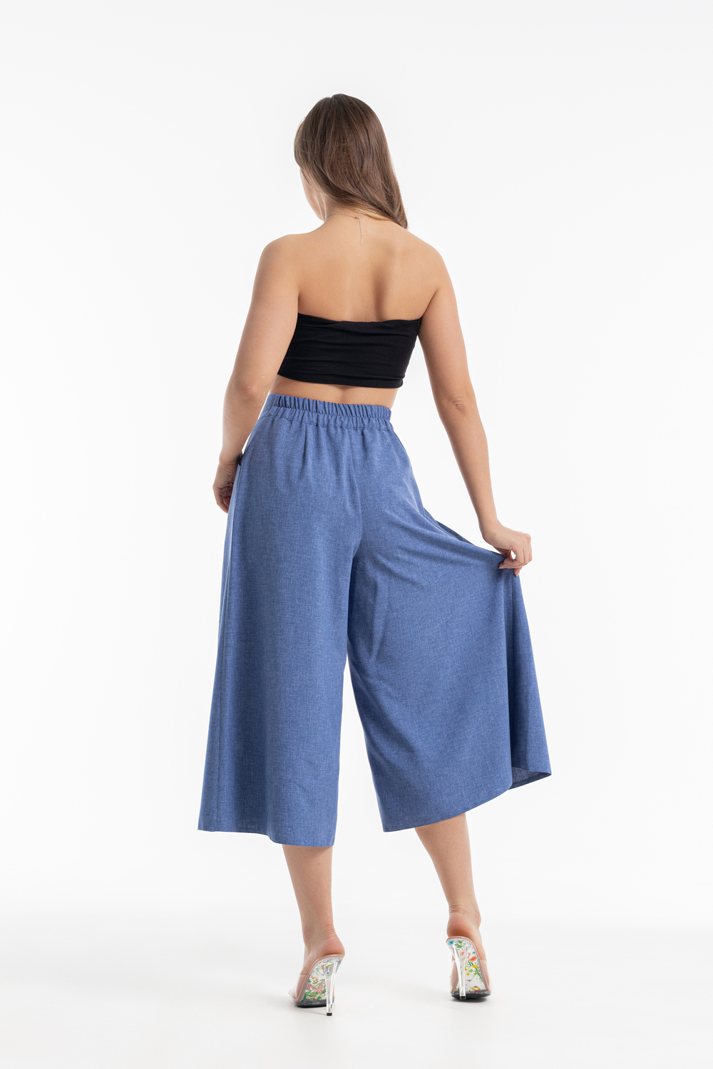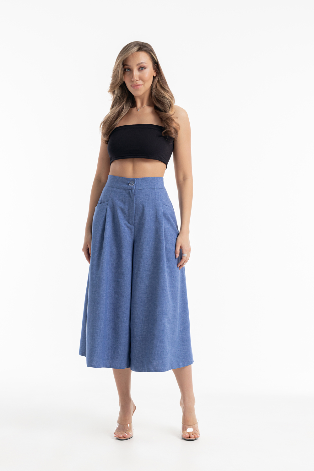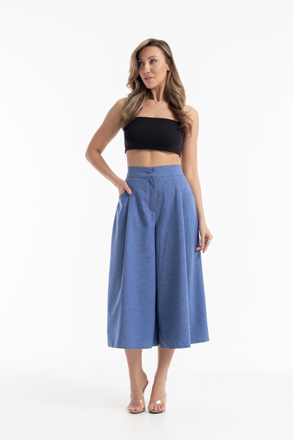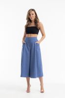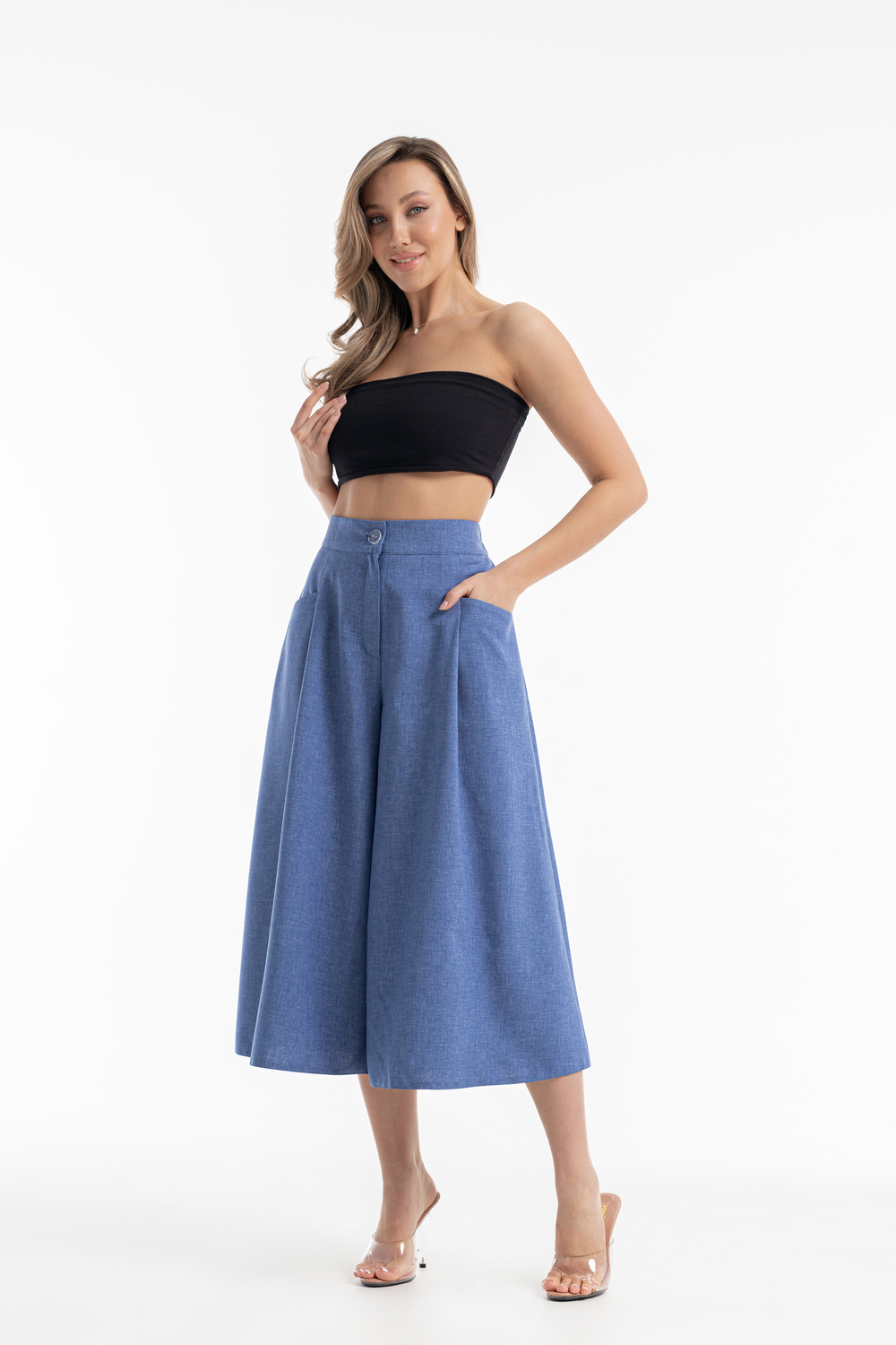 Укороченные широкие брюки - кюлоты с карманами и резинкой на талии подойдут женщинам любой комплекции и возраста. Комбинируя с различным верхом и обувью можно кардинально менять образ от строгого делового до расслаблено неформального.