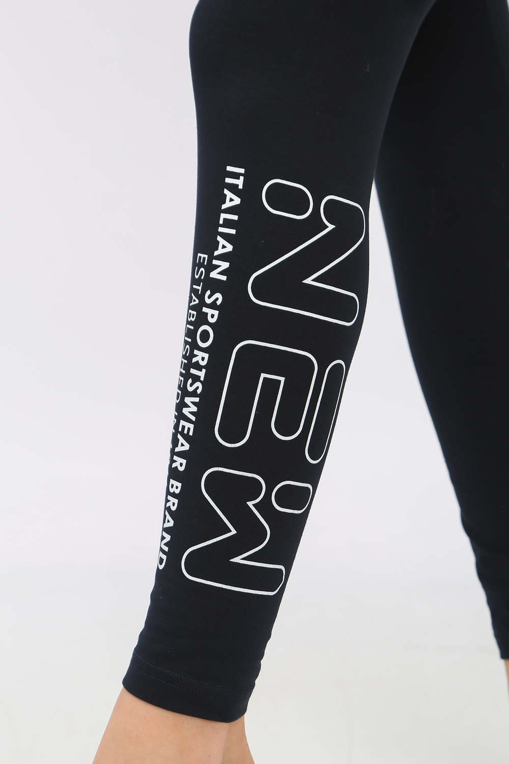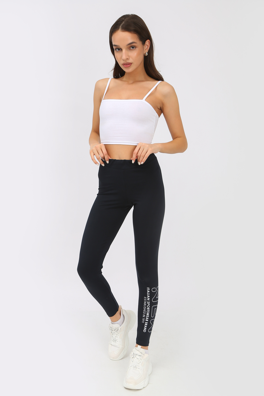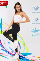 Модные женские лосины из кулирки с лайкрой. Украшены по одному боку наклейкой, нанесенной при высокой температуре. Подойдут для прогулок и для занятий спортом.
