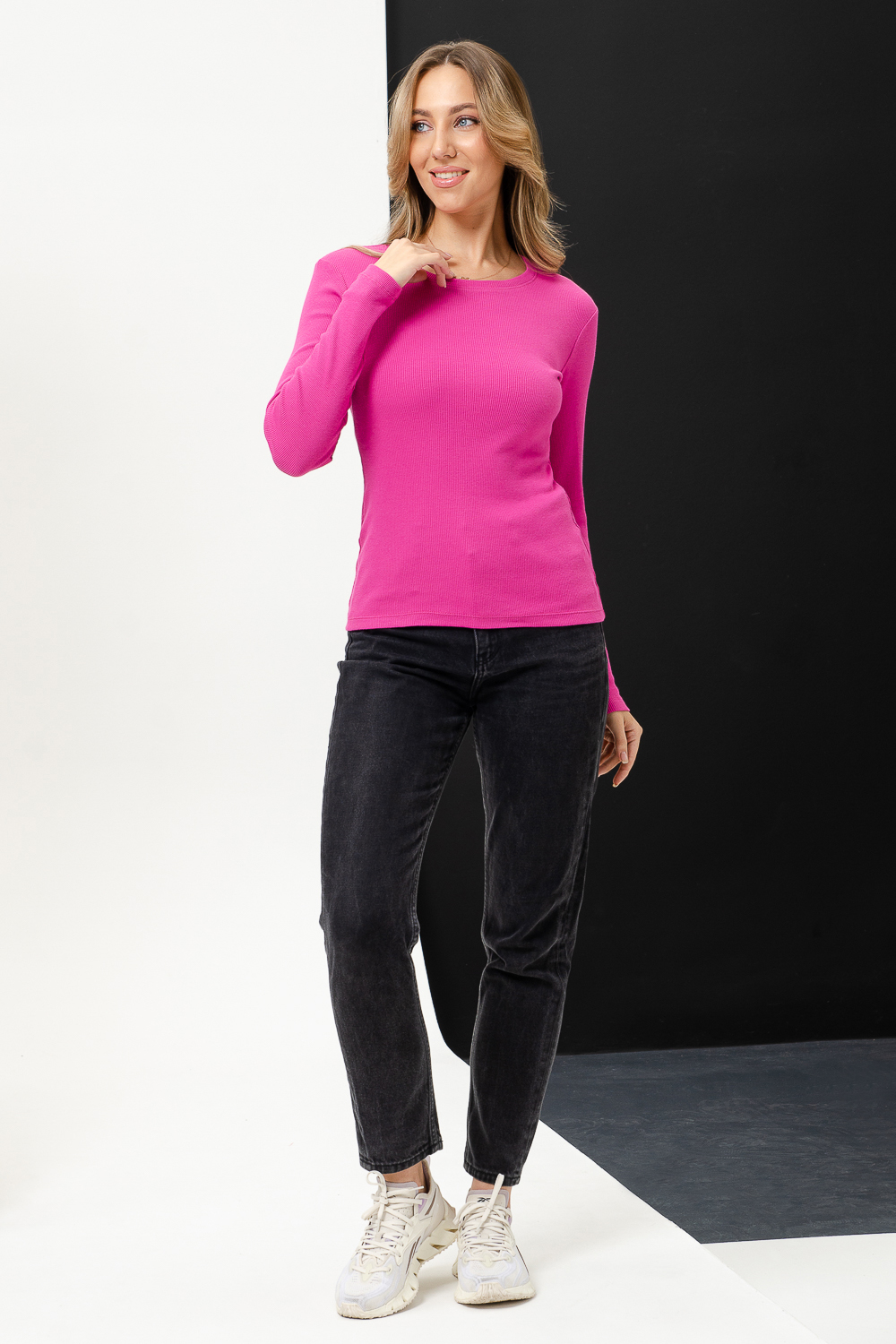 Лонгслив женский приталенный из кашкорсе. Ворот круглый, обработан обтачкой, рукава и низ изделия подогнуты на плоскошовной машине. Легкий в уходе. Идеальный вариант для повседневной носки. Замеры произведены за минусом облегания. Ткань имеет эластановые нити и замеры могут немного отличаться.