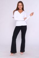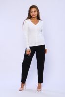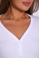 Лонгслив женский приталенный из кашкорсе с декоративными пуговицами (лонгслив не расстёгивается). Ворот V-образный, обработан окантовкой, переходящей вниз вдоль изделия, рукава и низ изделия подогнуты на плоскошовной машине. Легкий в уходе. Идеальный вариант для повседневной носки. Замеры произведены за минусом облегания. Ткань имеет эластановые нити и замеры могут немного отличаться.