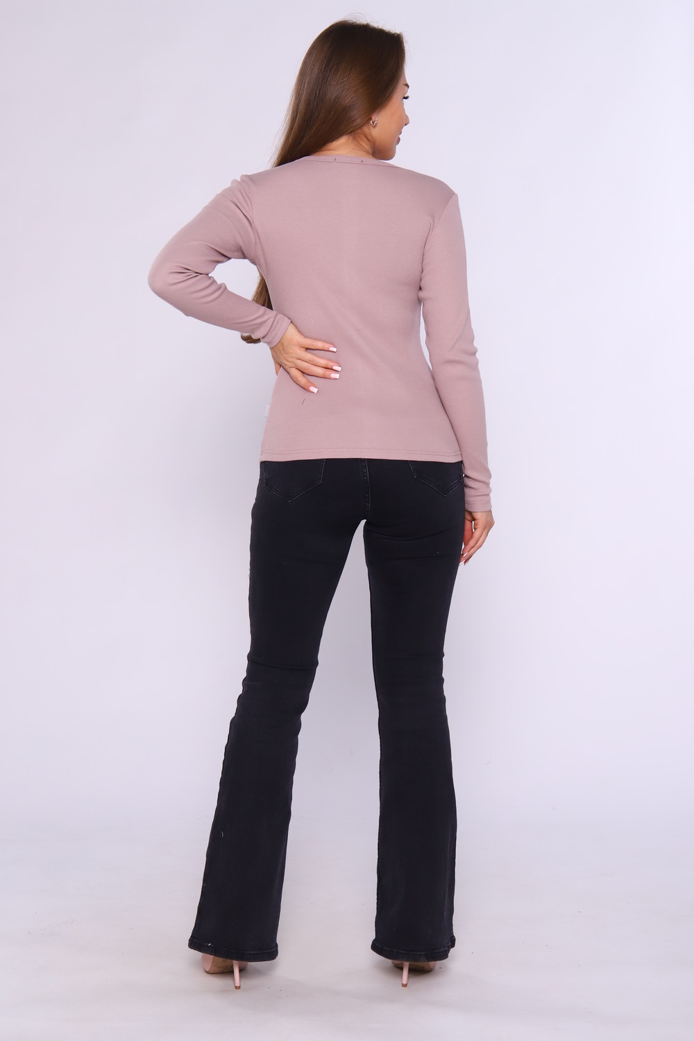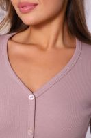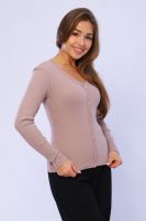 Лонгслив женский приталенный из кашкорсе с декоративными пуговицами (лонгслив не расстёгивается). Ворот V-образный, обработан окантовкой, переходящей вниз вдоль изделия, рукава и низ изделия подогнуты на плоскошовной машине. Легкий в уходе. Идеальный вариант для повседневной носки. Замеры произведены за минусом облегания. Ткань имеет эластановые нити и замеры могут немного отличаться.