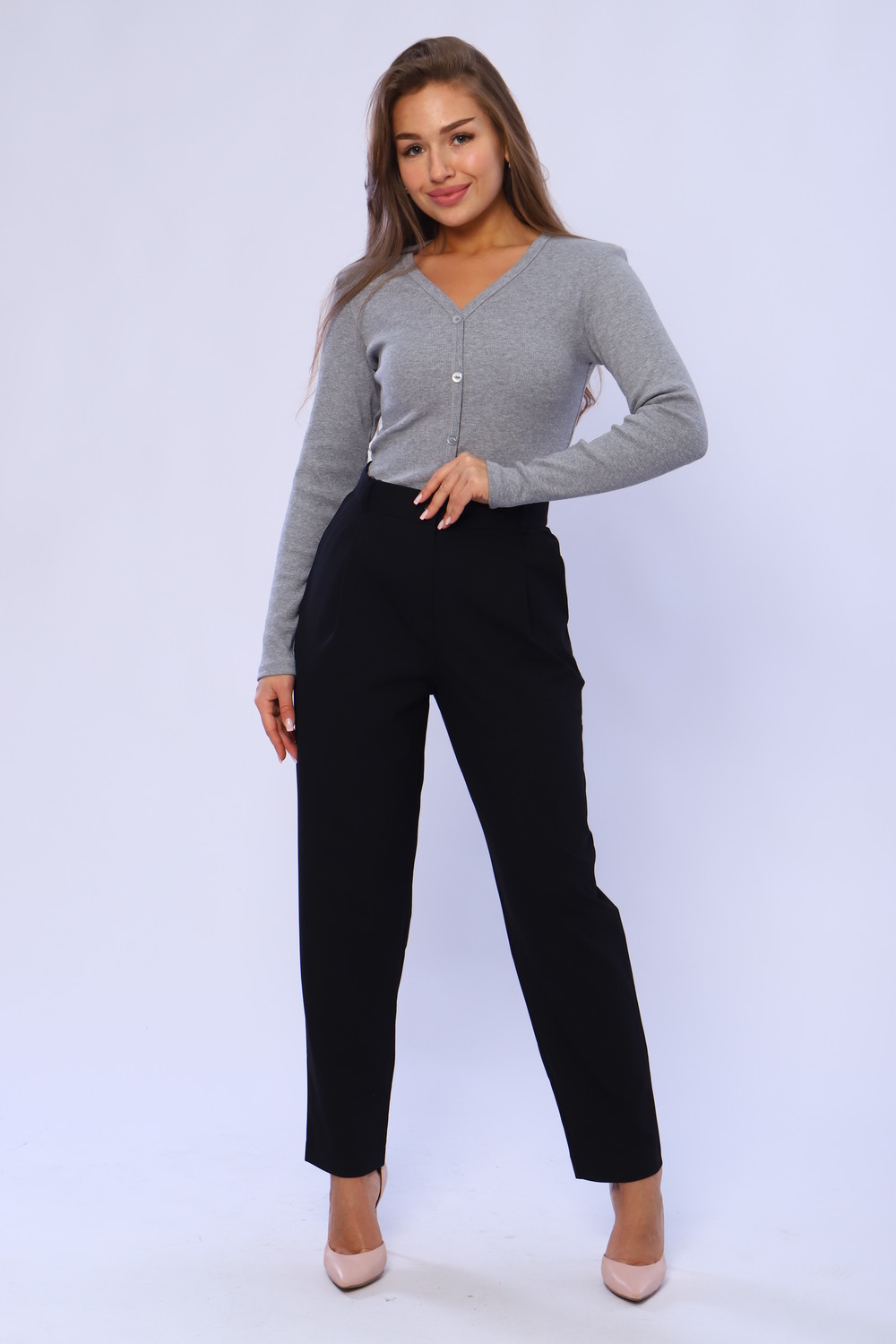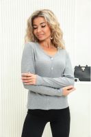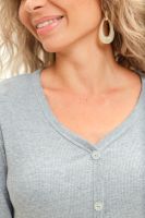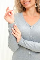 Лонгслив женский приталенный из кашкорсе с декоративными пуговицами (лонгслив не расстёгивается). Ворот V-образный, обработан окантовкой, переходящей вниз вдоль изделия, рукава и низ изделия подогнуты на плоскошовной машине. Легкий в уходе. Идеальный вариант для повседневной носки. Замеры произведены за минусом облегания. Ткань имеет эластановые нити и замеры могут немного отличаться.