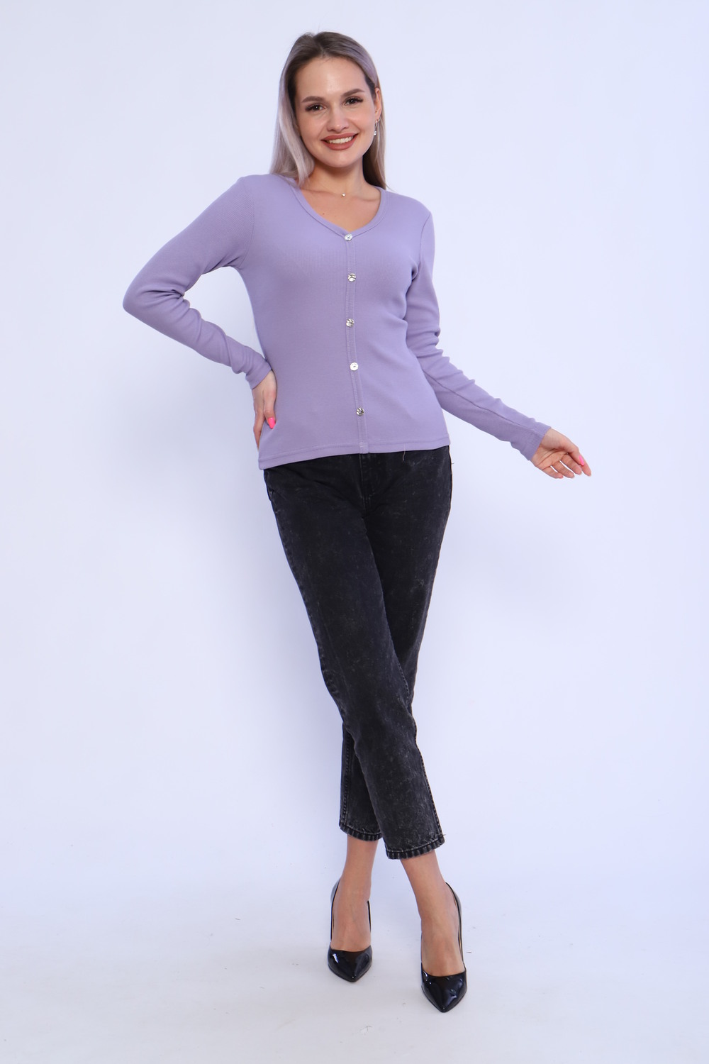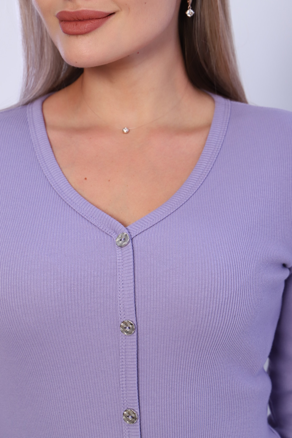 Лонгслив женский приталенный из кашкорсе с декоративными пуговицами (лонгслив не расстёгивается). Ворот V-образный, обработан окантовкой, переходящей вниз вдоль изделия, рукава и низ изделия подогнуты на плоскошовной машине. Легкий в уходе. Идеальный вариант для повседневной носки. Замеры произведены за минусом облегания. Ткань имеет эластановые нити и замеры могут немного отличаться.