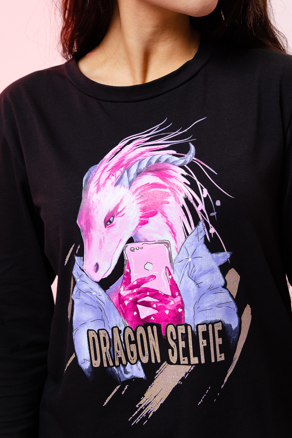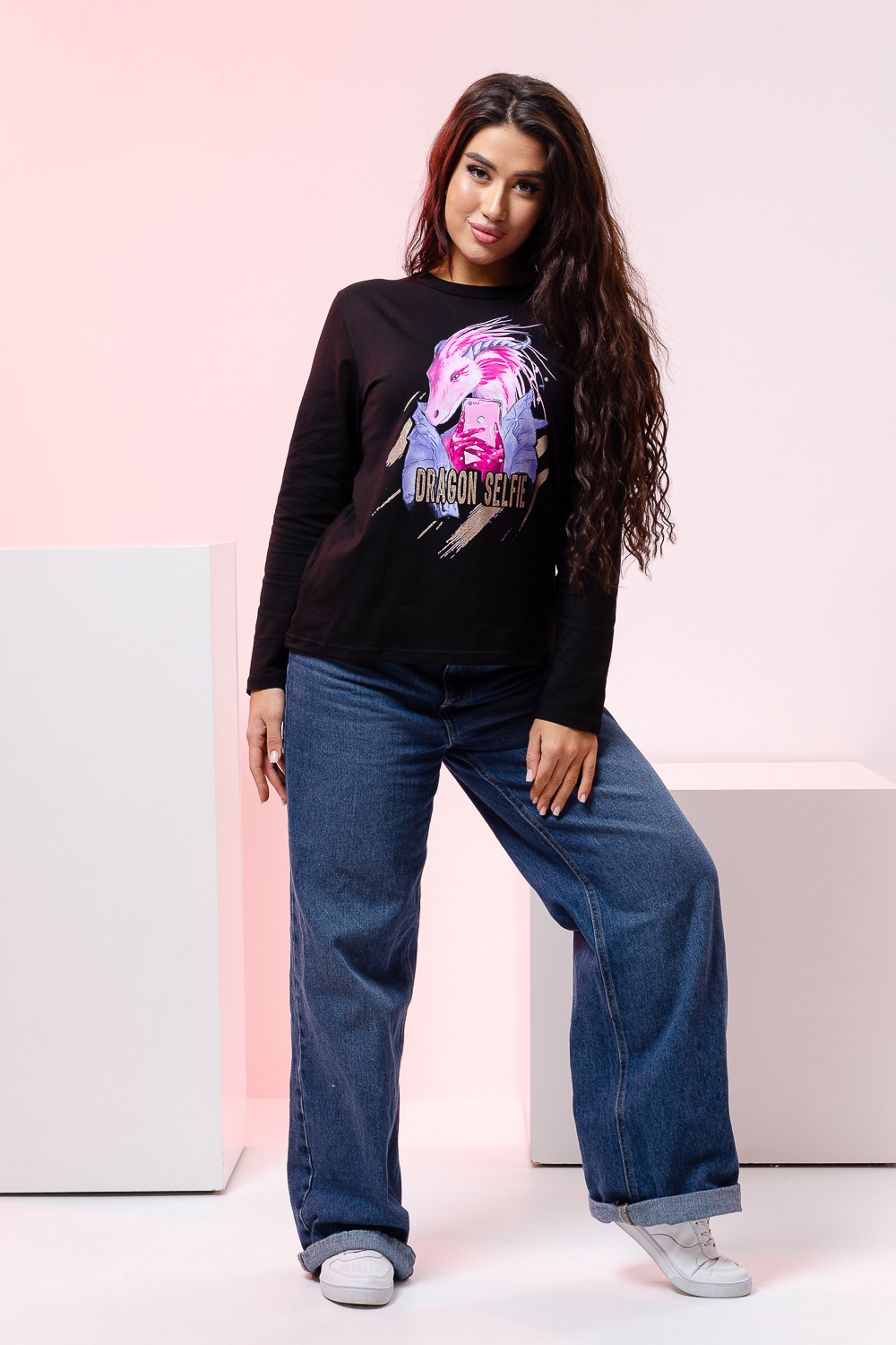 Лонгслив с длинным рукавом, спереди яркий оригинальный принт, горловина обработана бейкой. Идеально подойдет для повседневной носки.