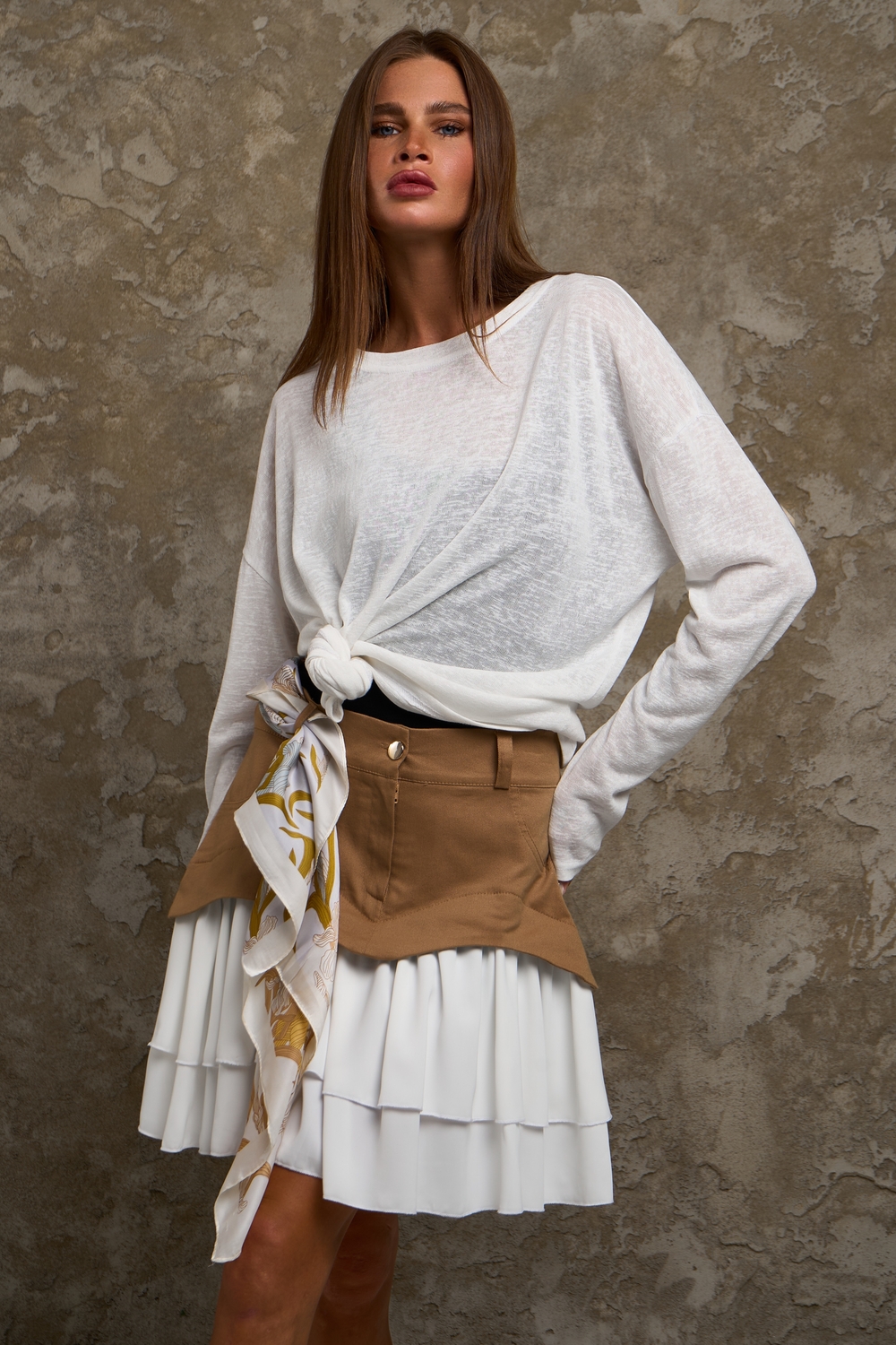 Джерси — это основовязаный трикотажный материал, изготавливаемый из шерстяных, шелковых, льняных, хлопковых или искусственных нитей. Особенности: почти не мнется, хорошо драпируется, эластичен.