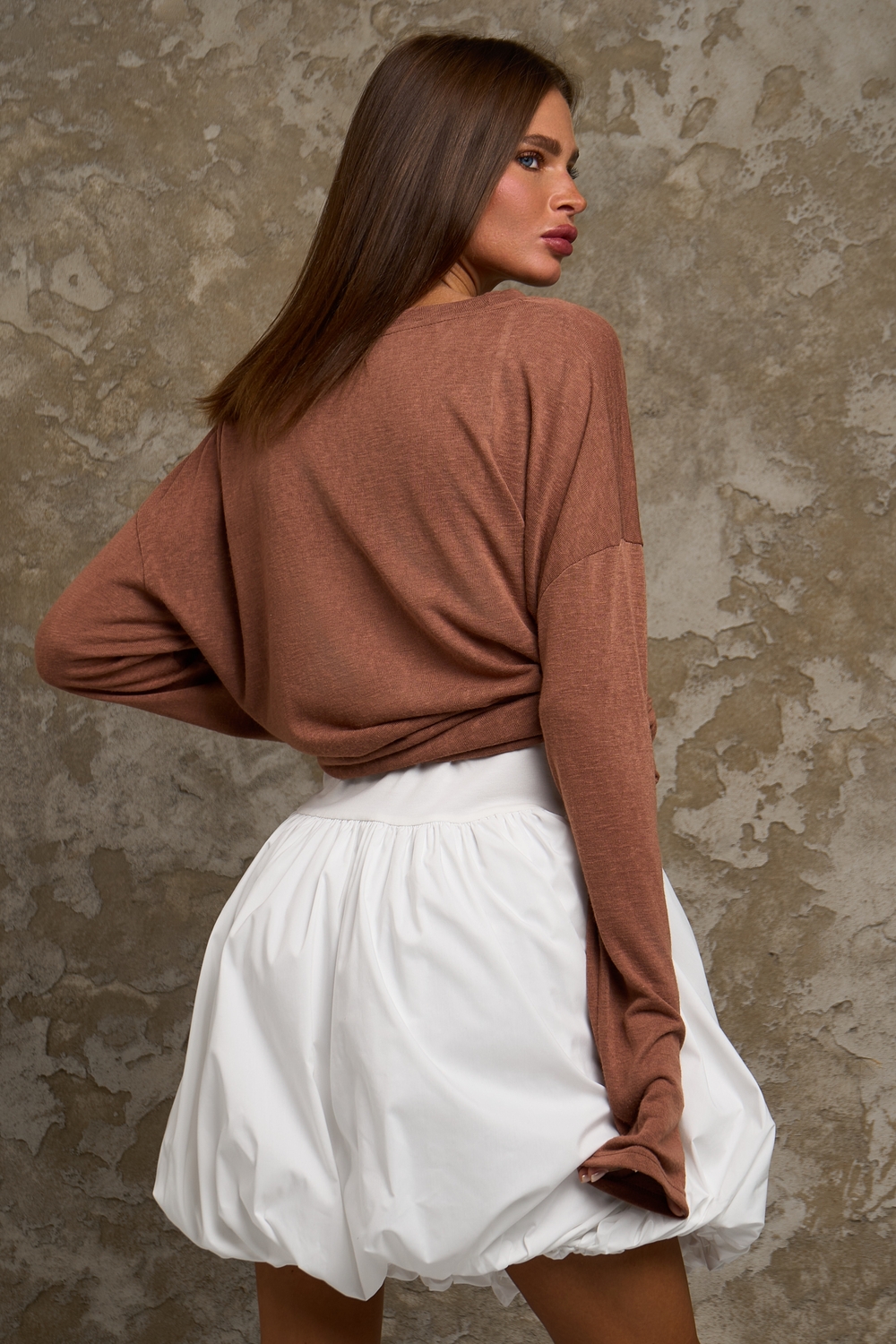 Джерси — это основовязаный трикотажный материал, изготавливаемый из шерстяных, шелковых, льняных, хлопковых или искусственных нитей. Особенности: почти не мнется, хорошо драпируется, эластичен.