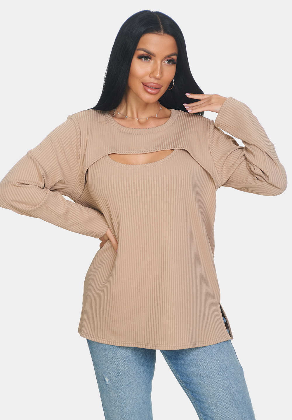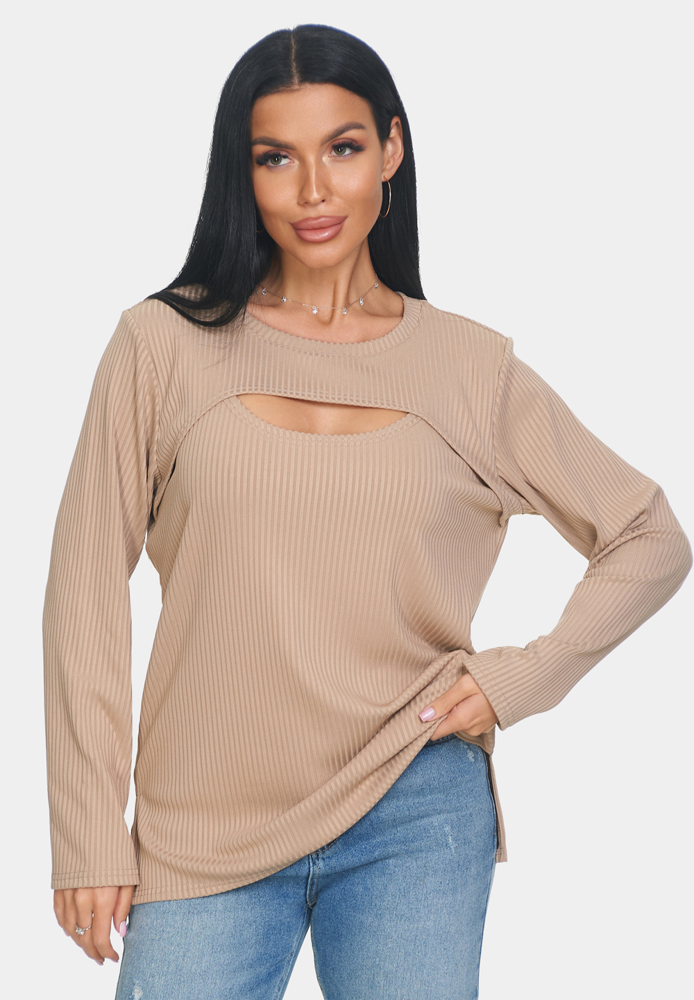 Лонгслив из мягкой лапши, созданный подчеркнуть ваш силуэт и подарить комфорт на каждый день. Эффектный вырез добавляет изюминку образу, а свободный крой обеспечивает идеальную посадку. Идеален для casual-луков и уверенного стильного настроения