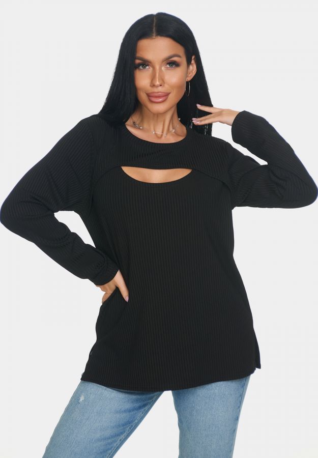 Лонгслив из мягкой лапши, созданный подчеркнуть ваш силуэт и подарить комфорт на каждый день. Эффектный вырез добавляет изюминку образу, а свободный крой обеспечивает идеальную посадку. Идеален для casual-луков и уверенного стильного настроения