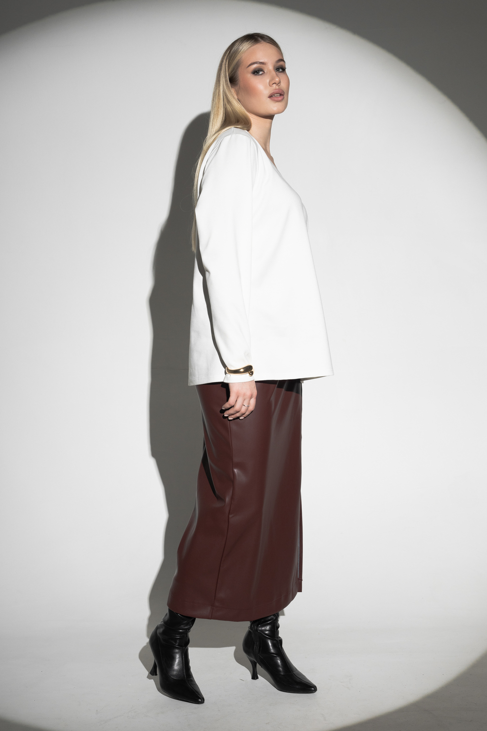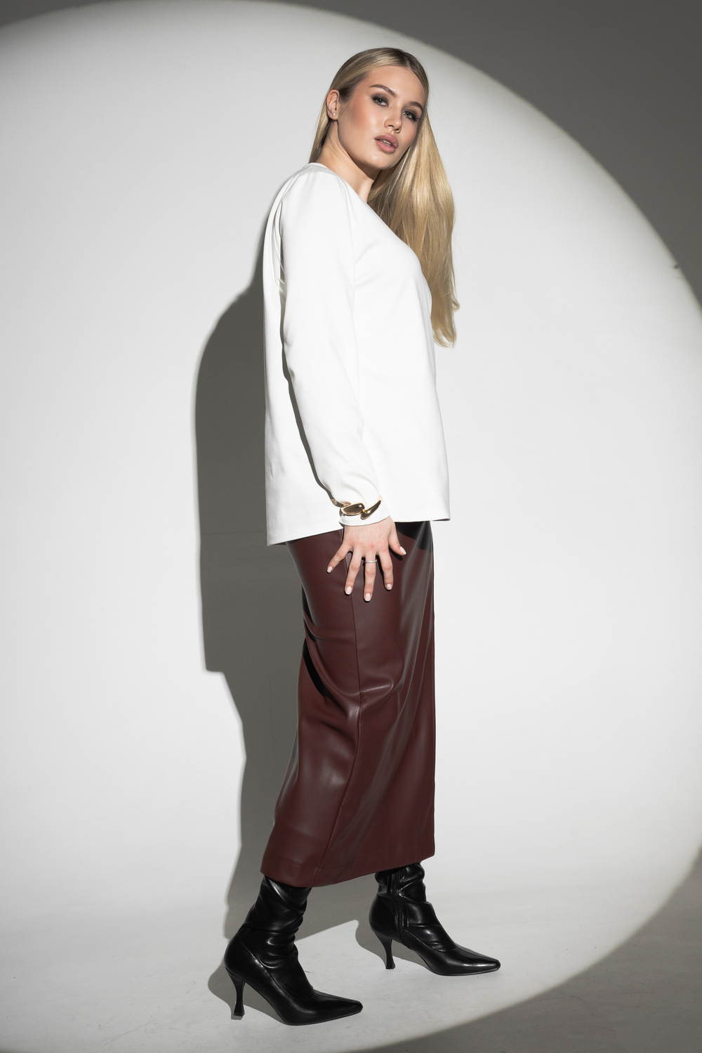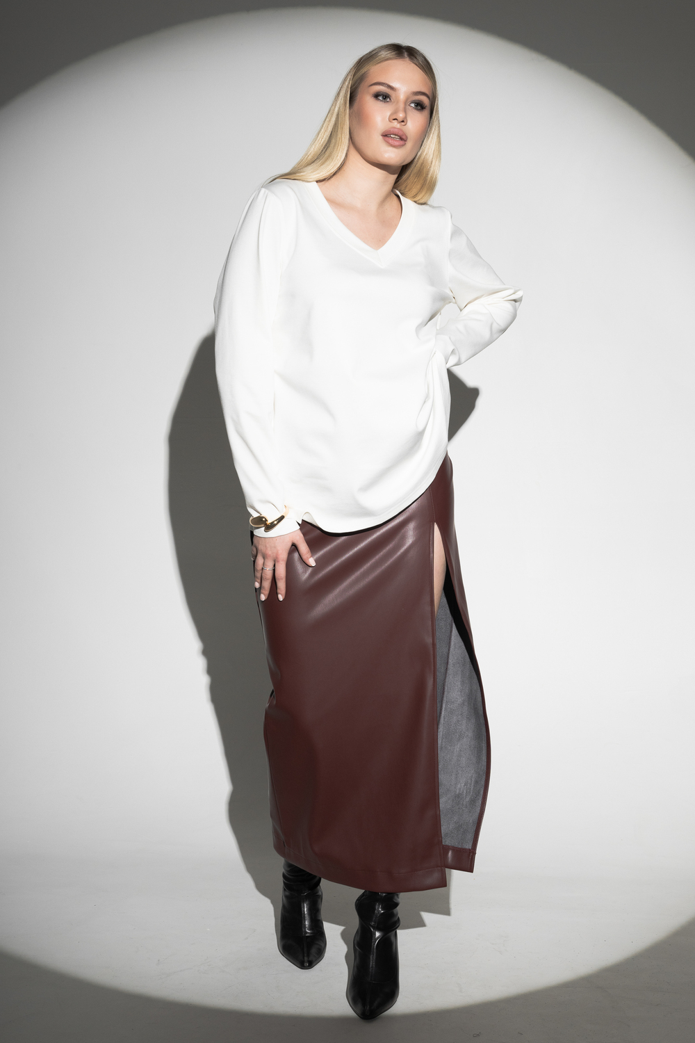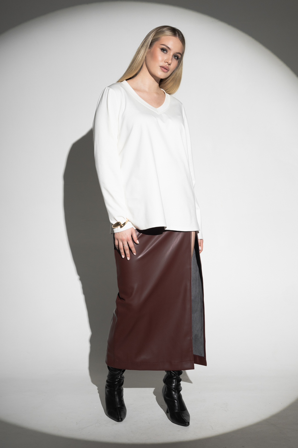 Масло — это плотное трикотажное полотно с нежной «масляной» структурой. Под общим названием «масло» выпускается трикотаж различных видов, в которых различается состав, виды исходного сырья и особенности обработки. В англоязычной среде принято название “slinky”, что значит облегающая. В состав ткани входят полиэстер, вискоза и лайкра в различных пропорциях. Особенности: прочность, износостойкость, сохранение иходной формы, хорошая эластичность.