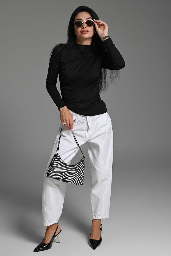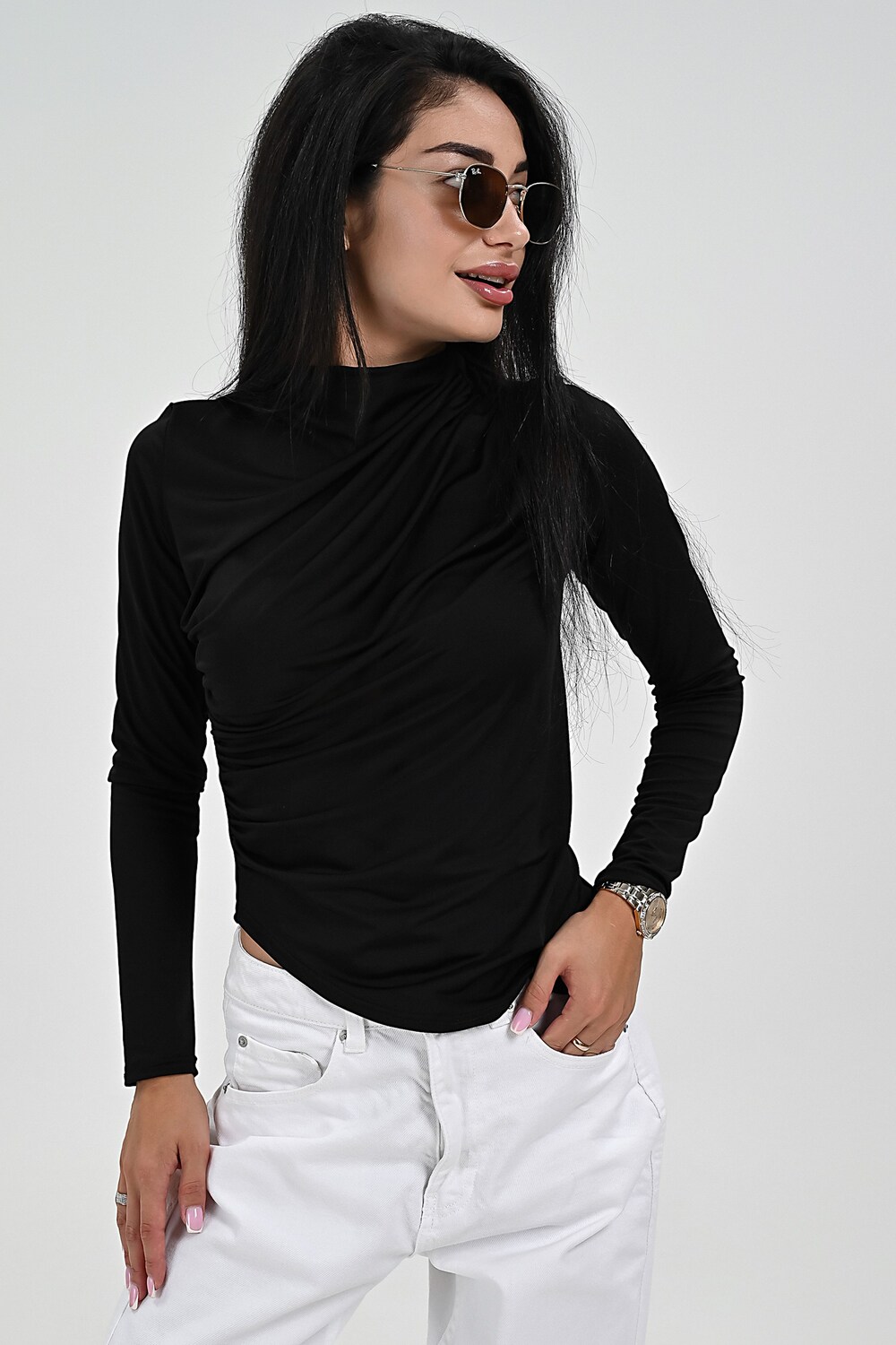 Лонгслив с драпировкой полуприталенный , стрейтч (ткань тянется).